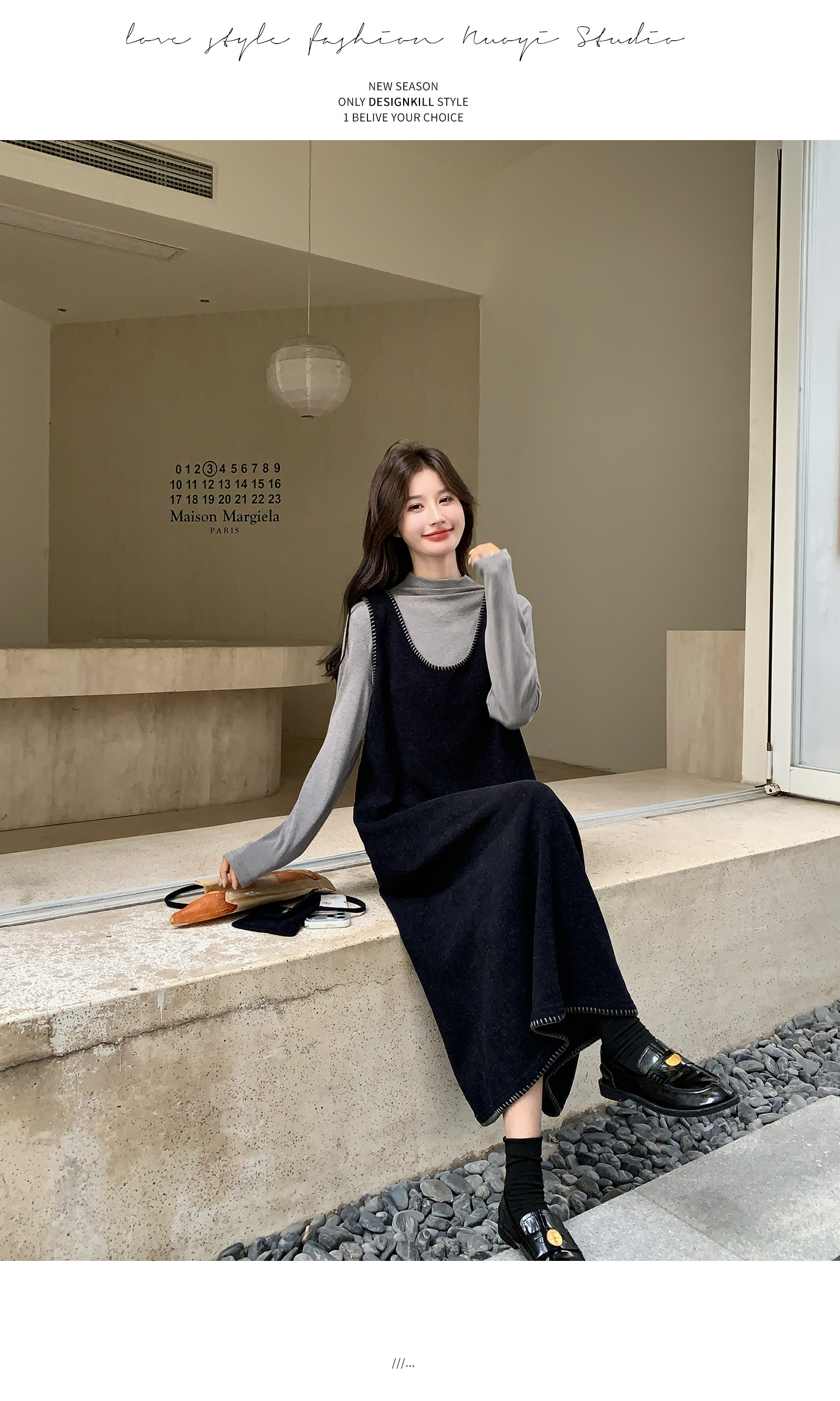 【商品名】【セットアップ】フレンチスタイル ノースリーブワンピース レイヤード2点セット 秋冬 OOTD 映える きれいめ コーデセット【JZシリーズ】