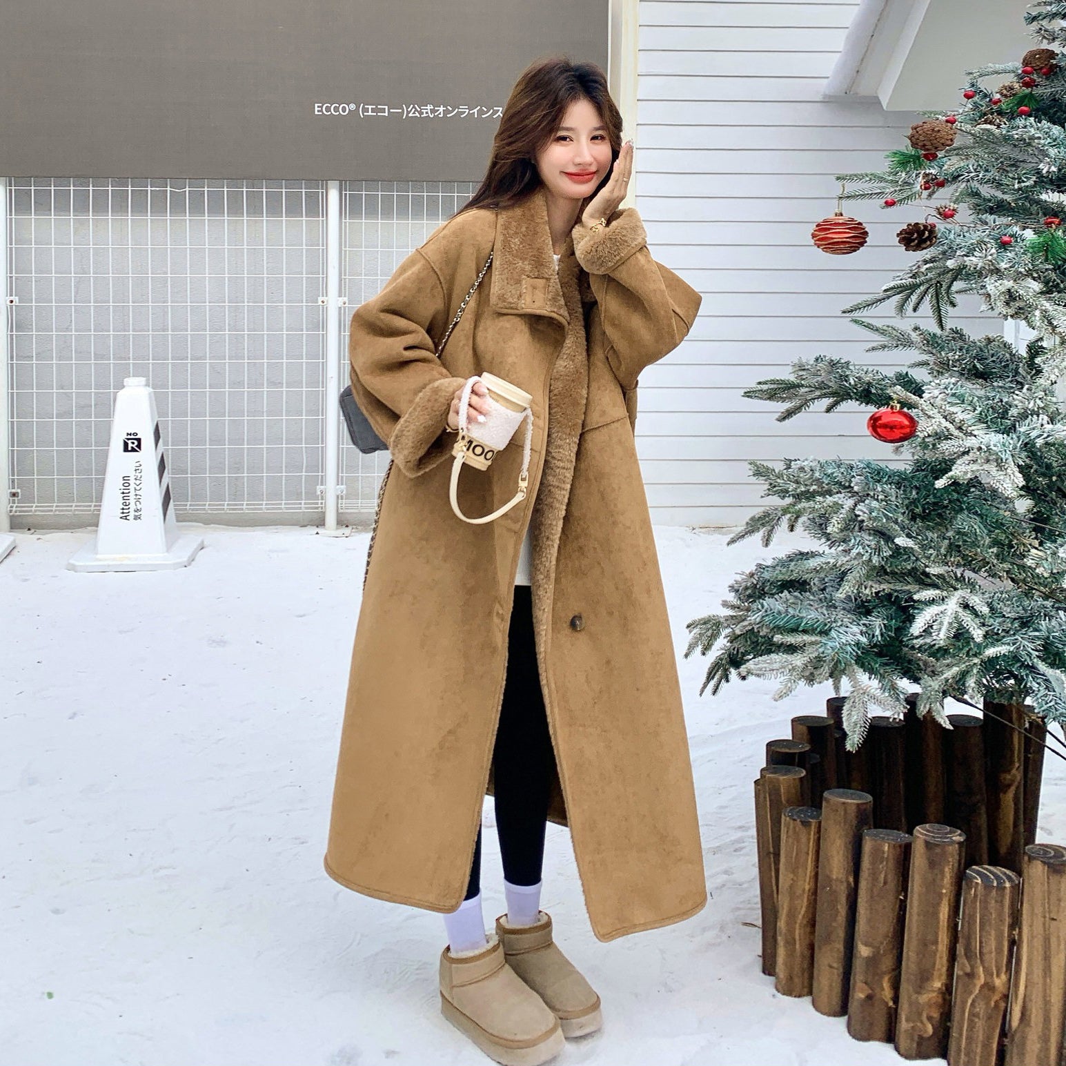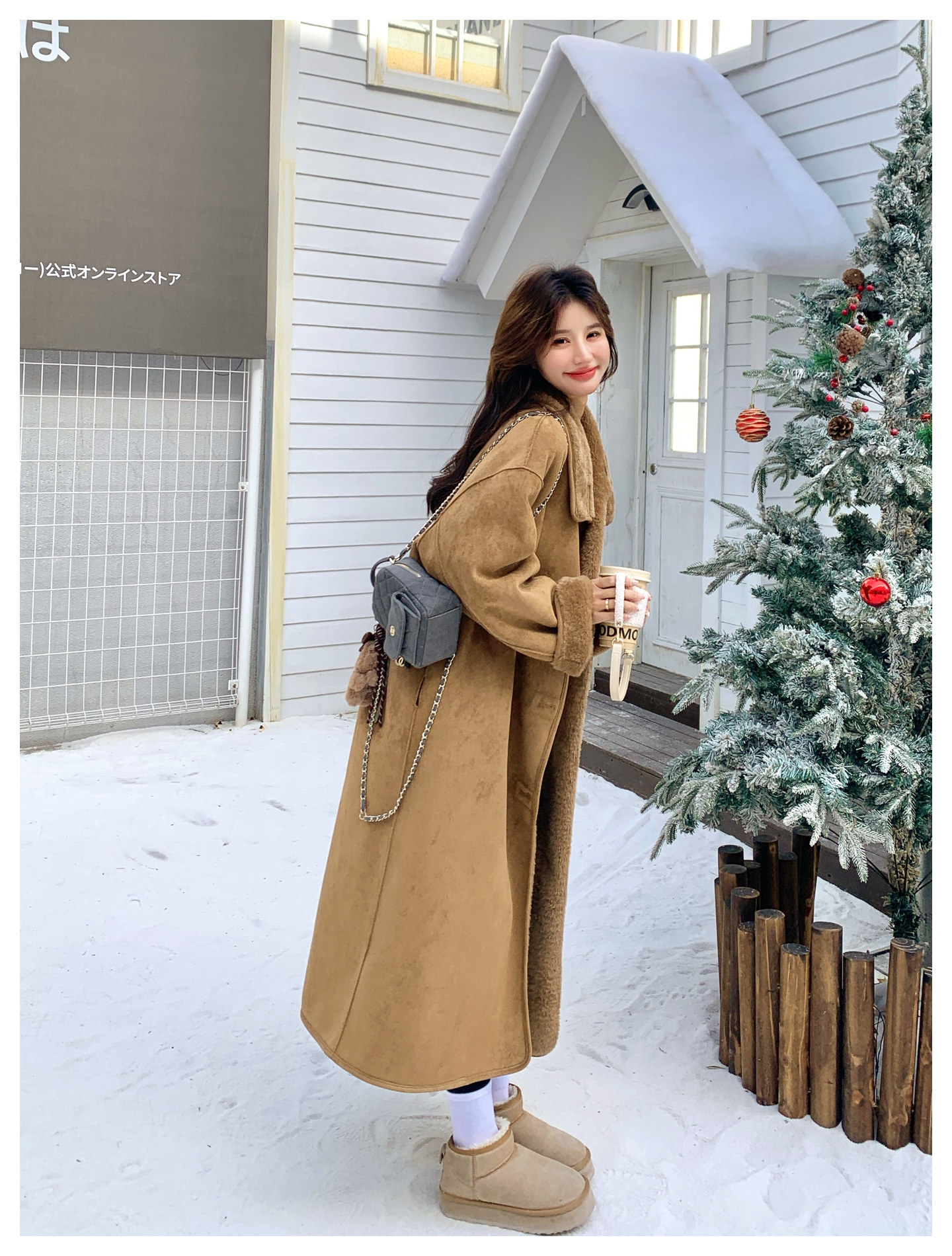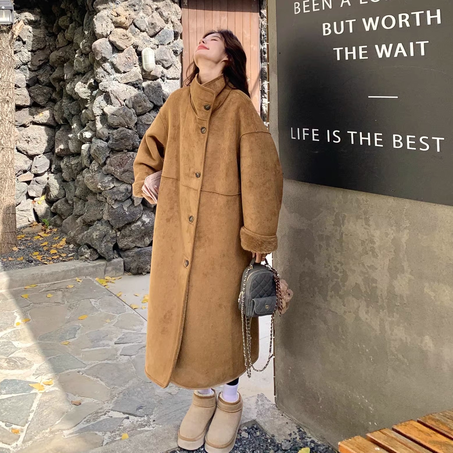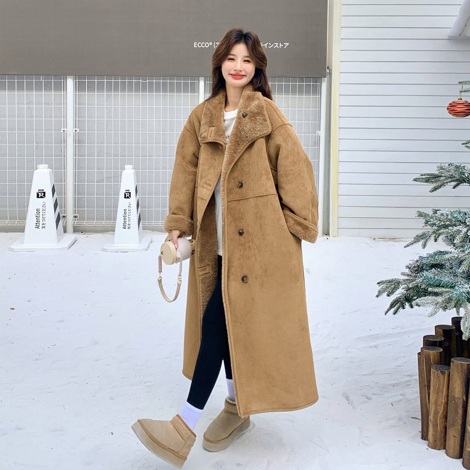 【アウター】韓国風 リバーシブル スエード調 × シープボア ロング丈 レディース 冬 新作 綿入れコート【JZシリーズ】