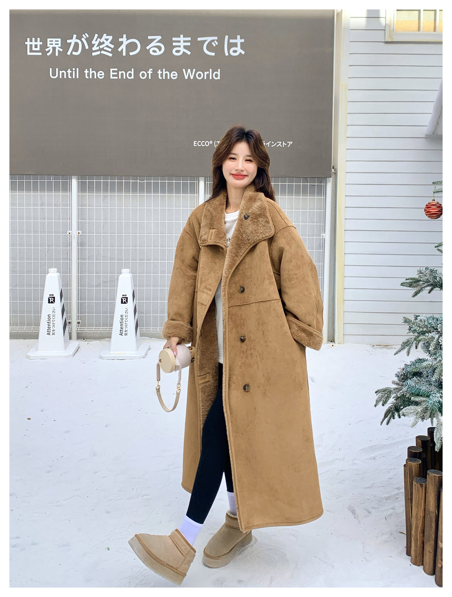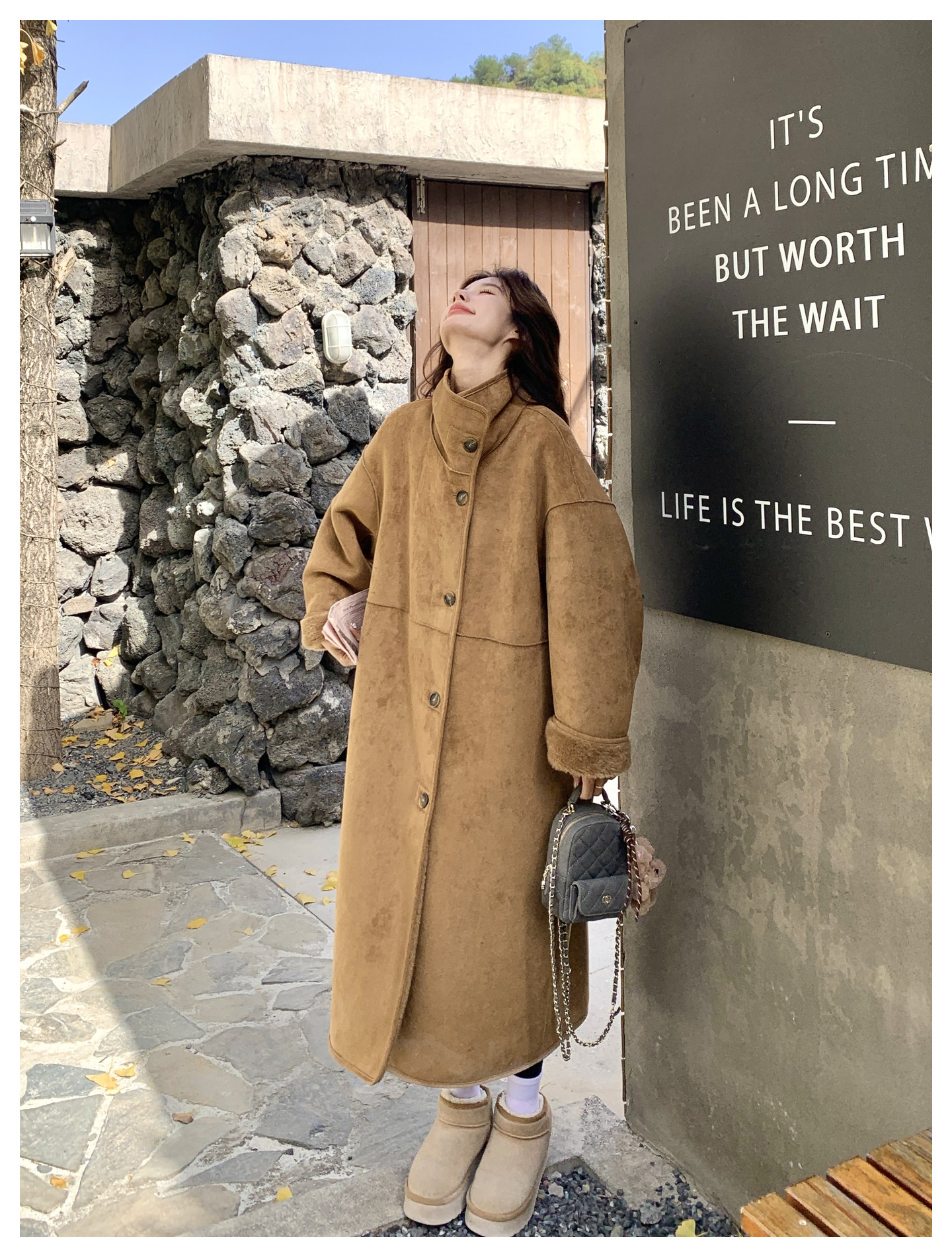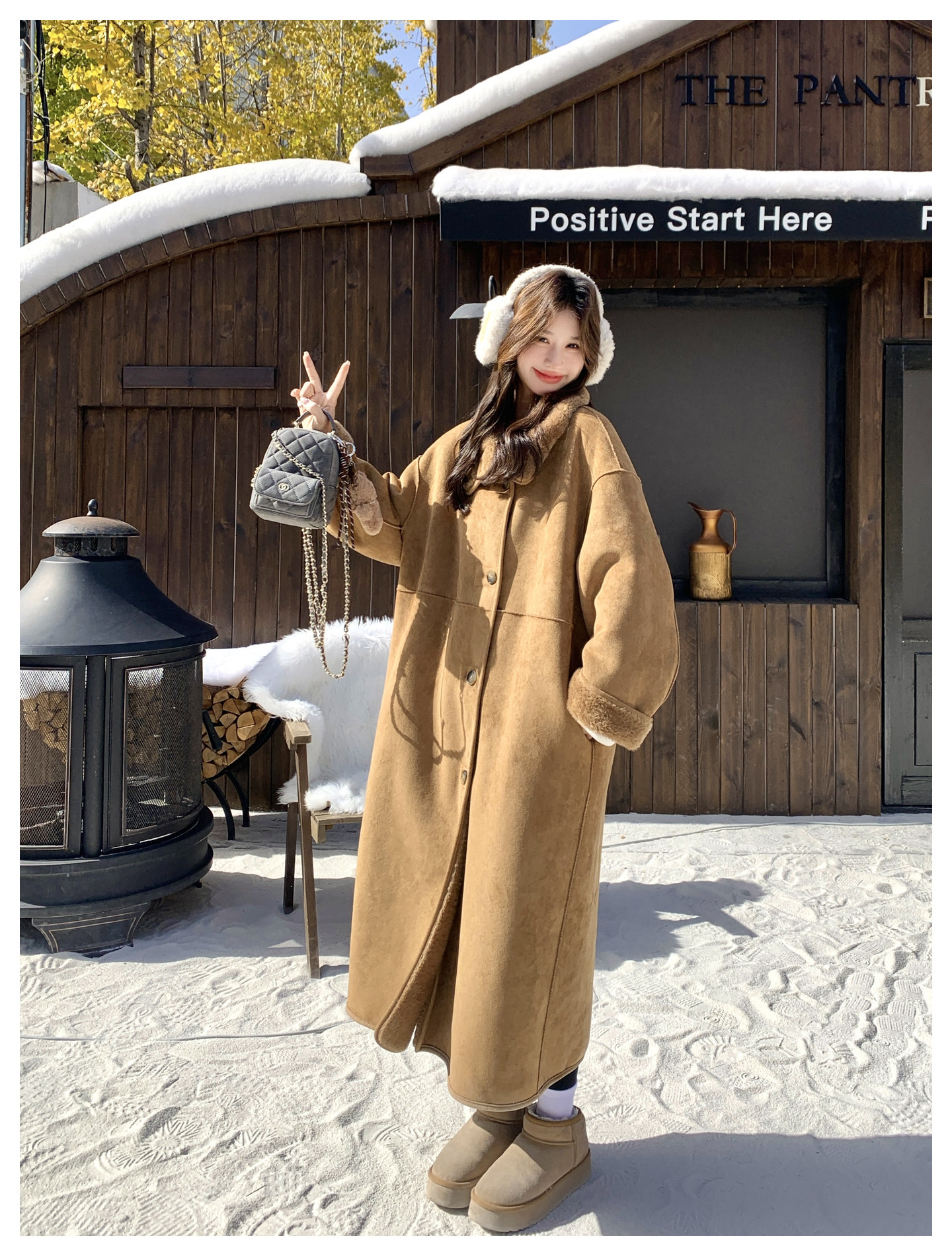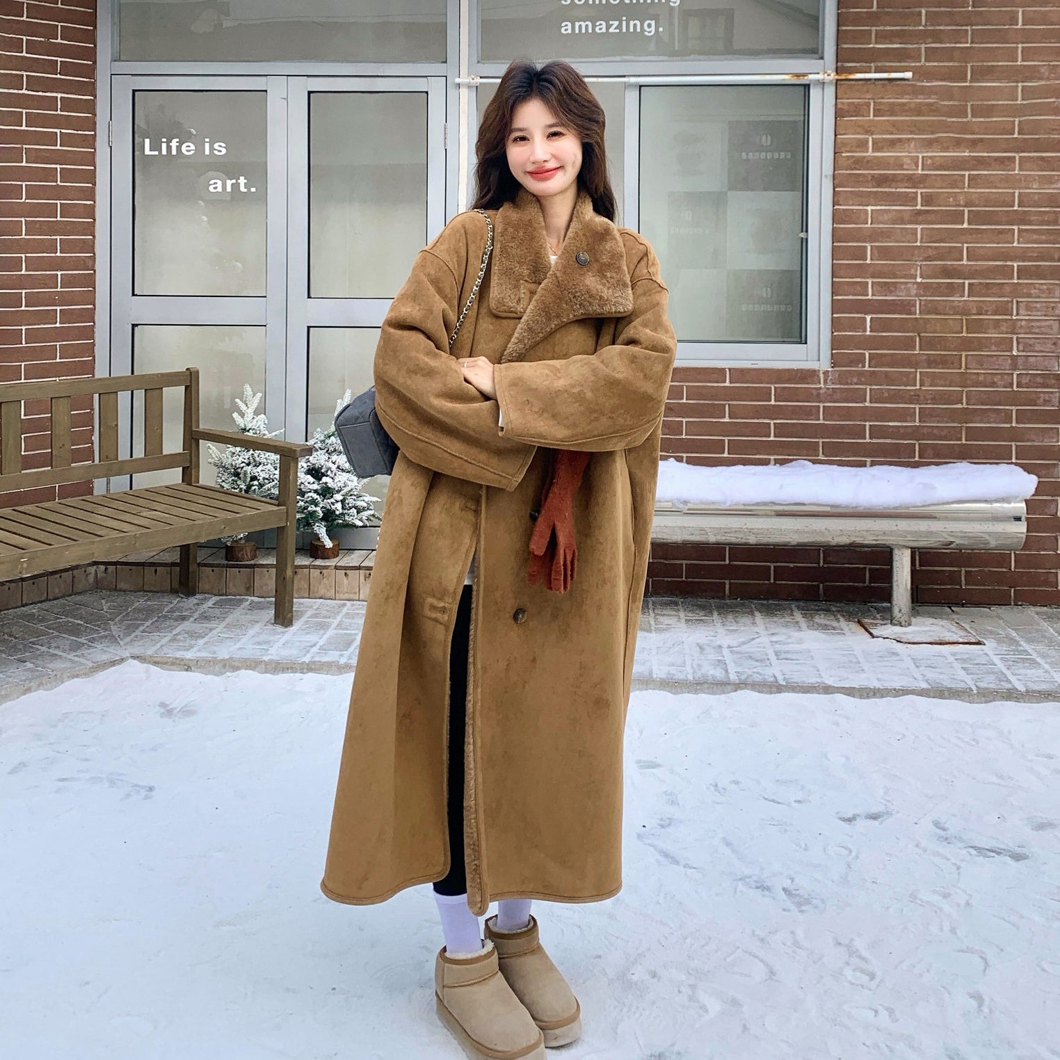【アウター】韓国風 リバーシブル スエード調 × シープボア ロング丈 レディース 冬 新作 綿入れコート【JZシリーズ】