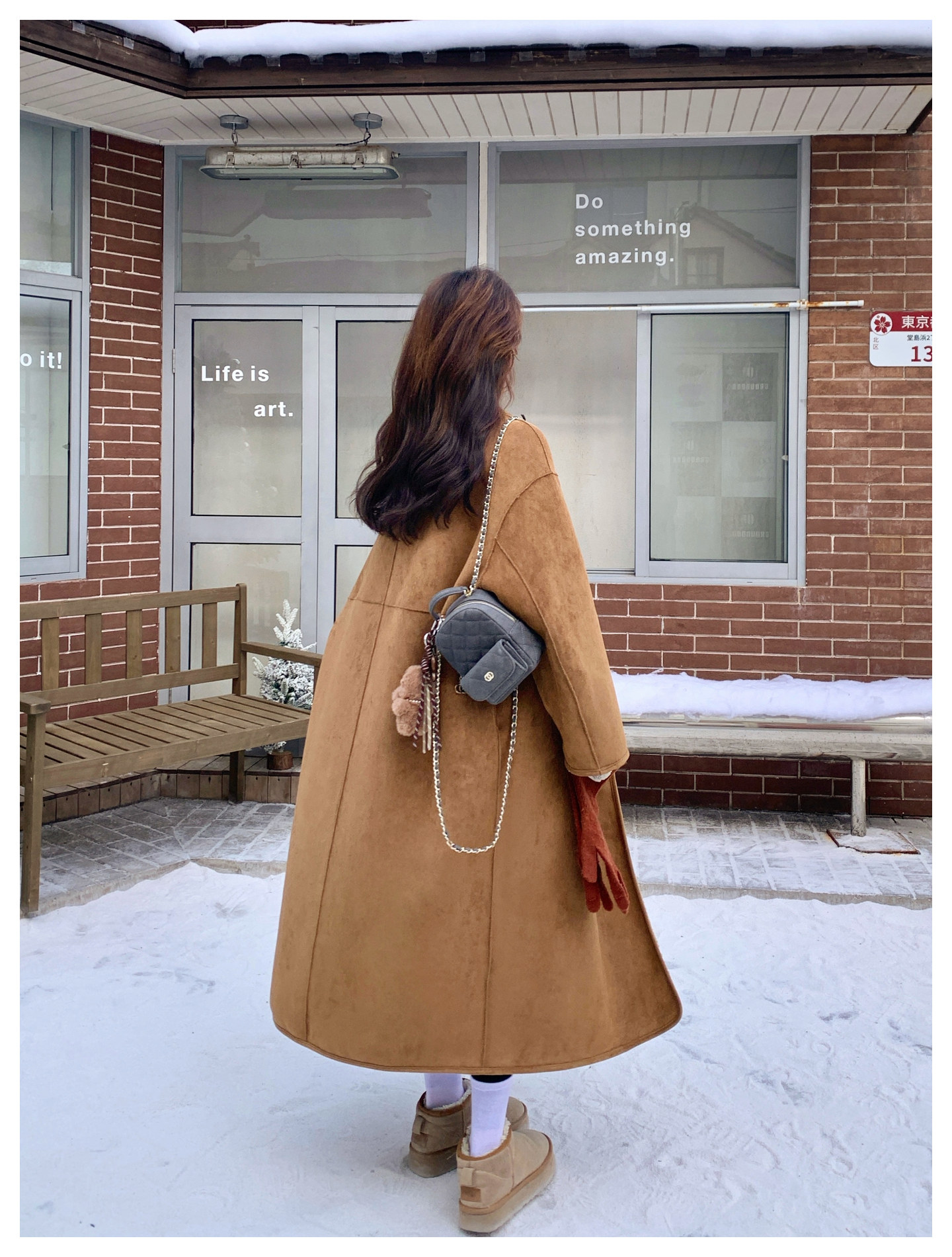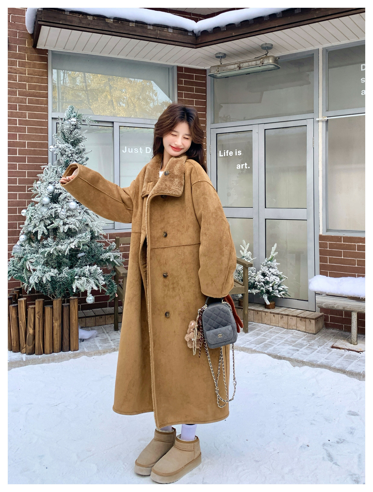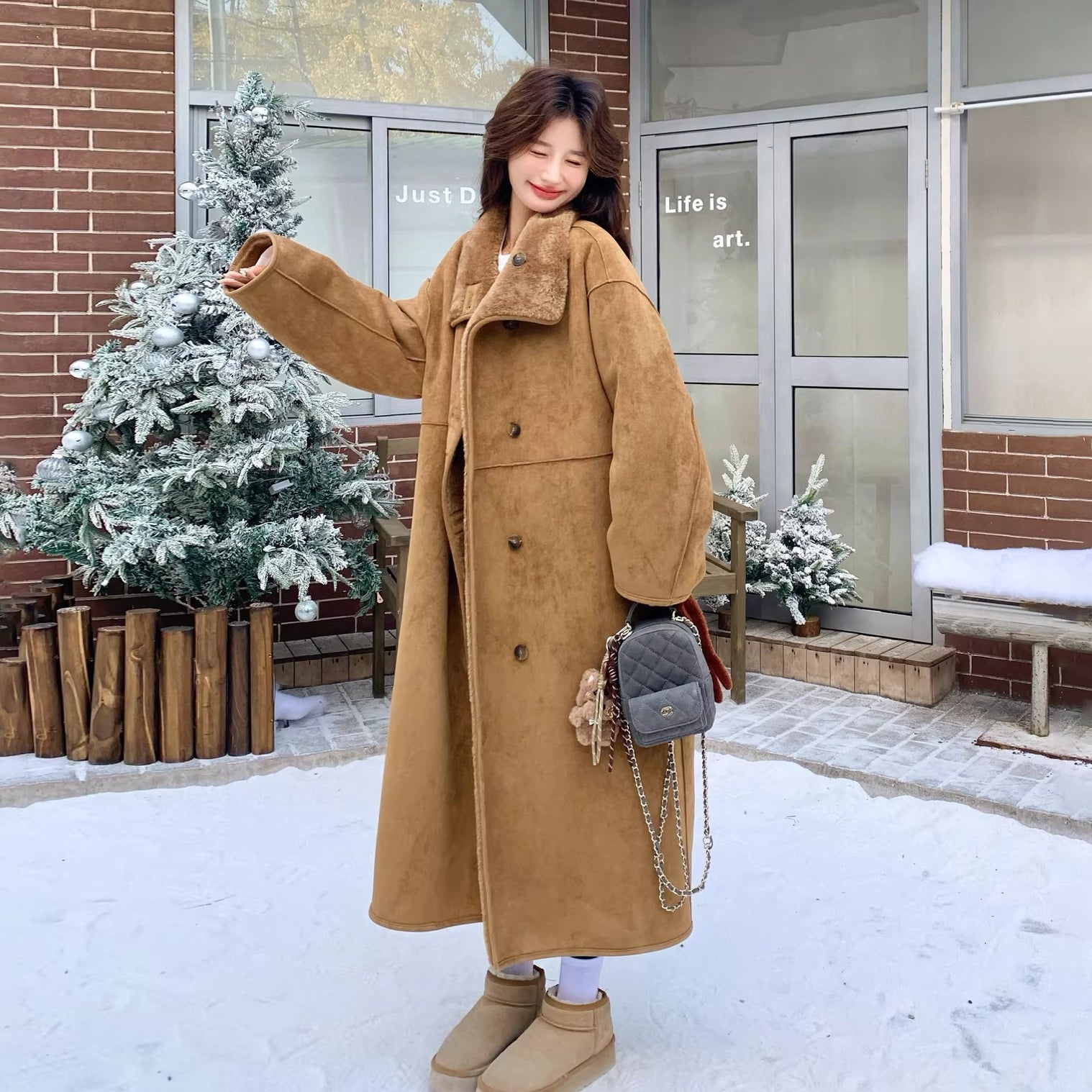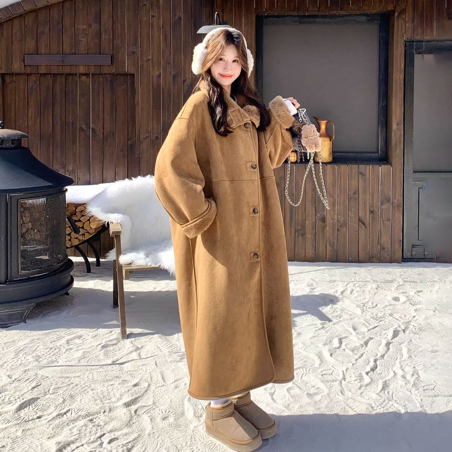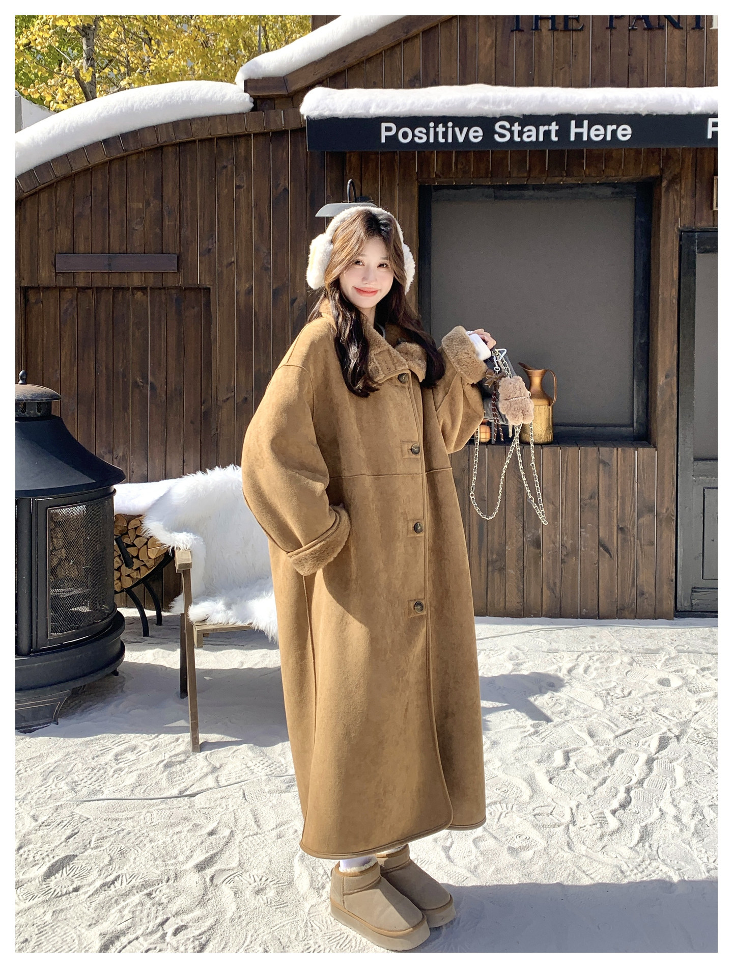 【アウター】韓国風 リバーシブル スエード調 × シープボア ロング丈 レディース 冬 新作 綿入れコート【JZシリーズ】