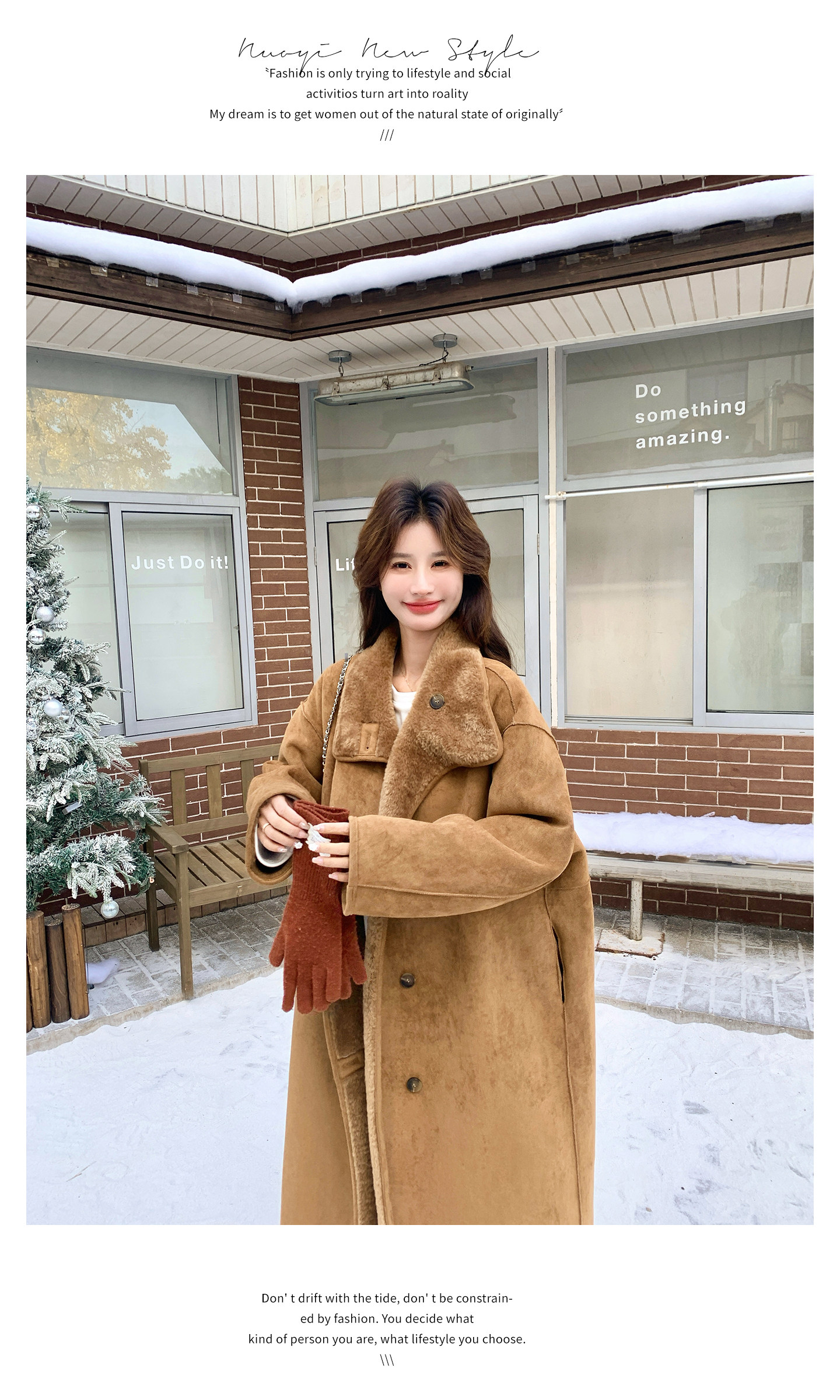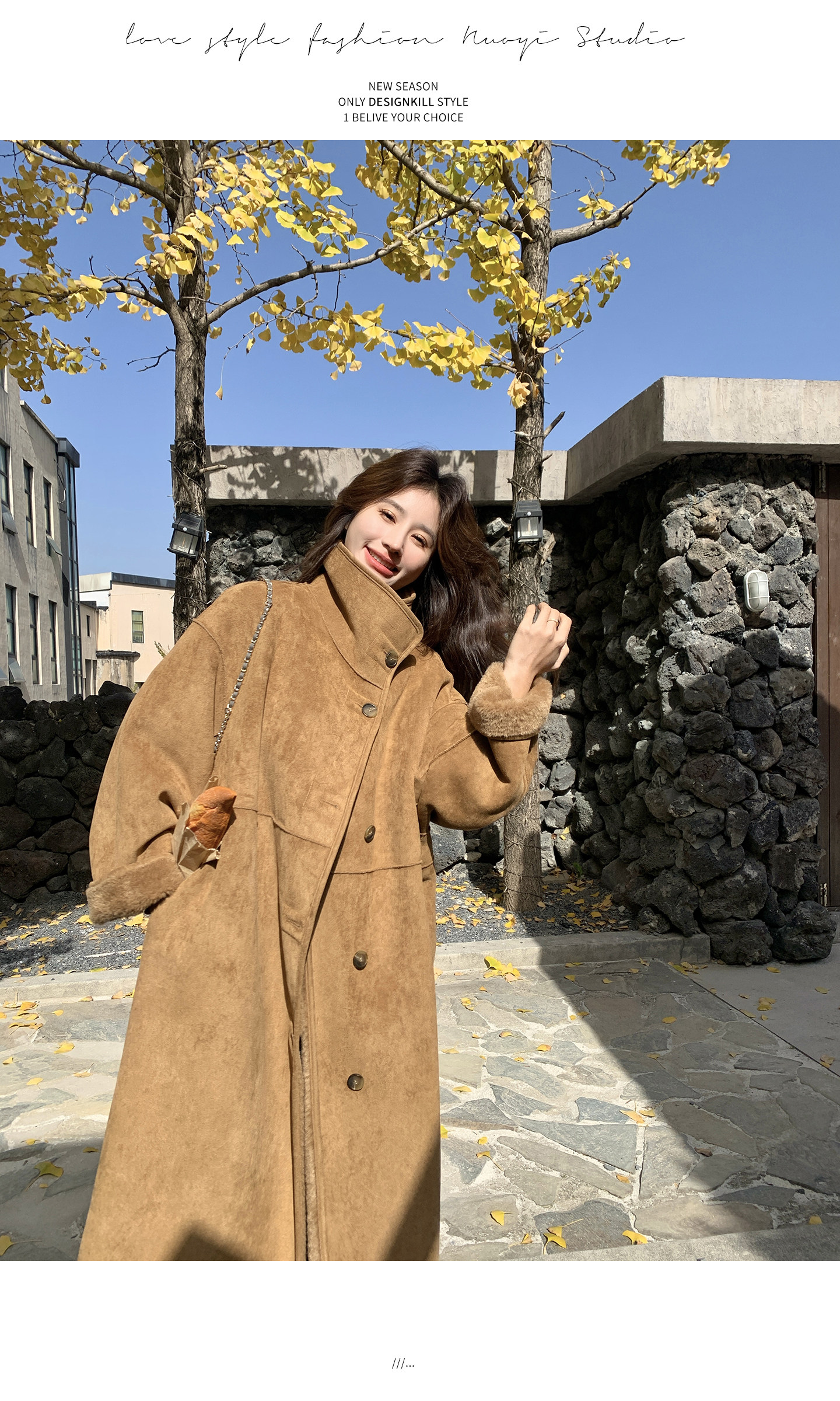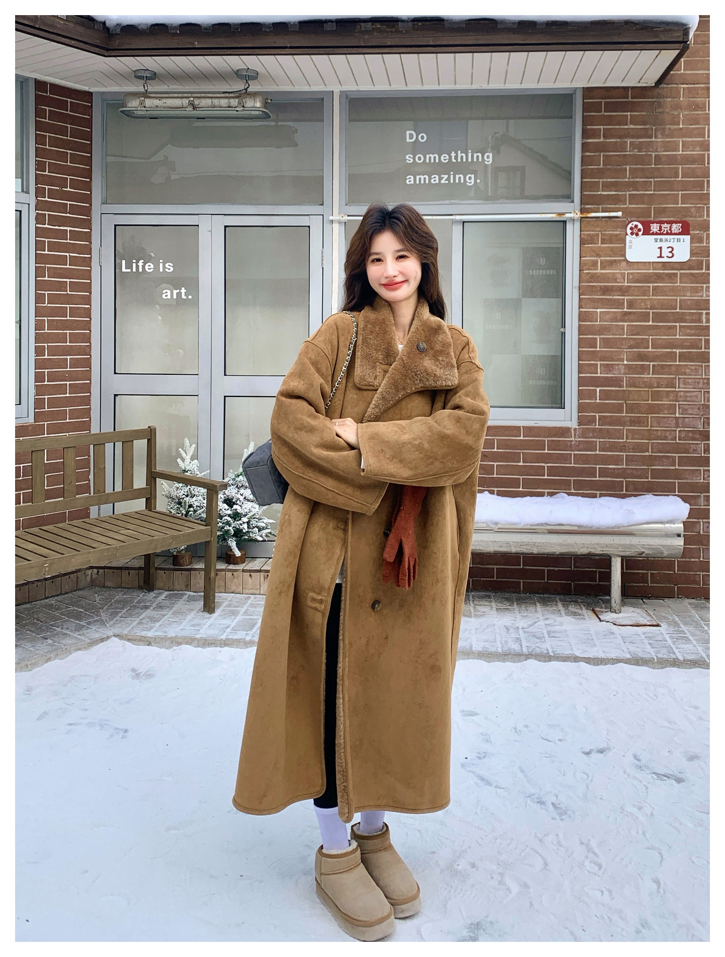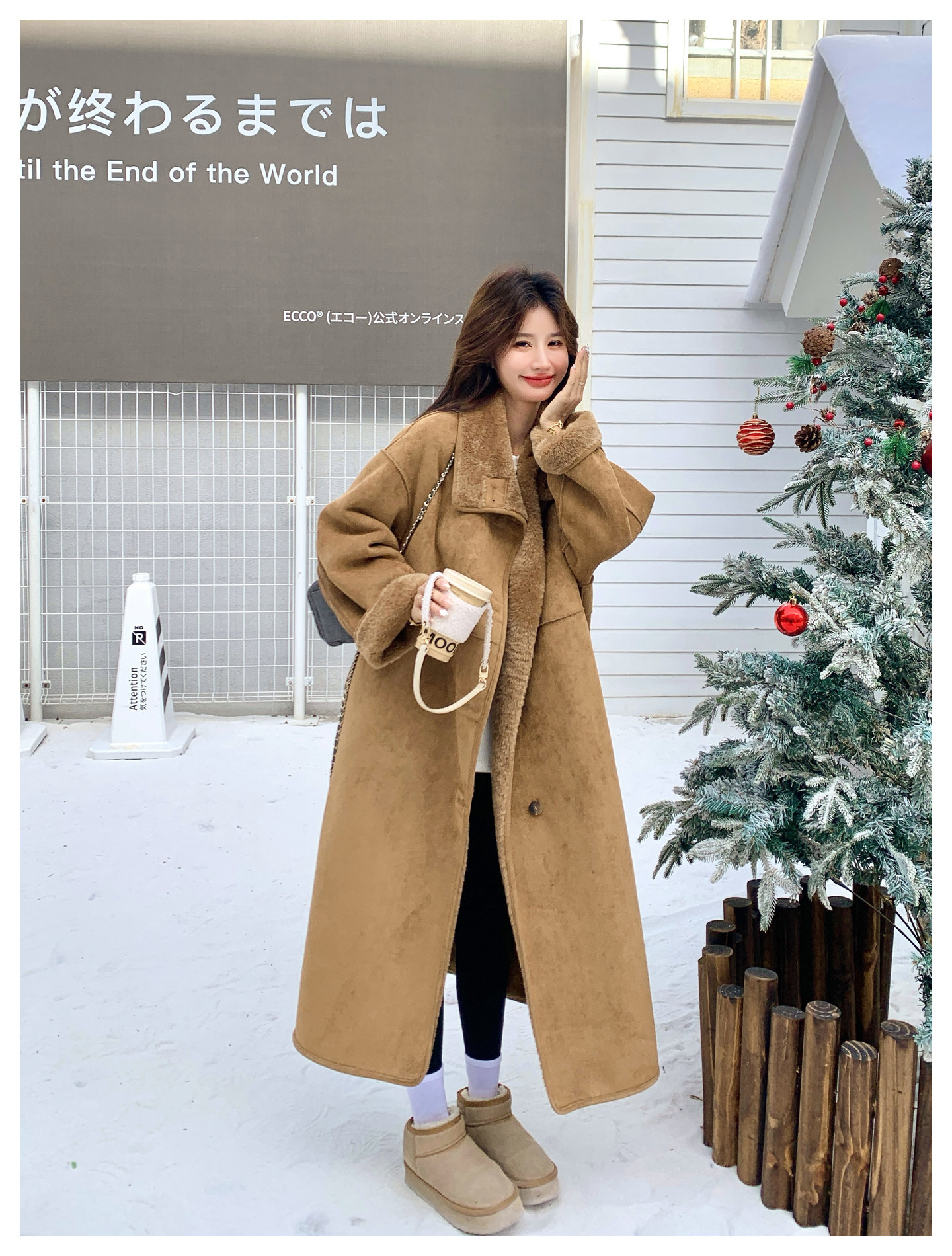【アウター】韓国風 リバーシブル スエード調 × シープボア ロング丈 レディース 冬 新作 綿入れコート【JZシリーズ】