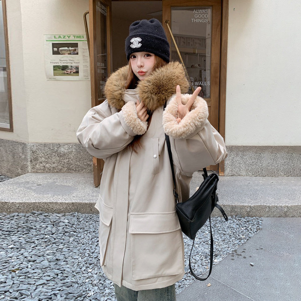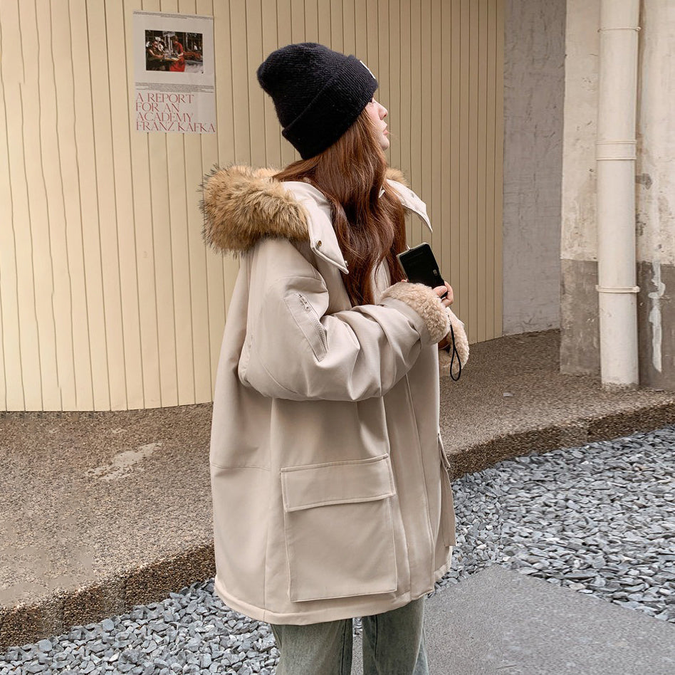 【商品名】【アウター】韓国風 フード付き ボアパーカー レディース 冬 シープボア 綿入れコート【JZシリーズ】