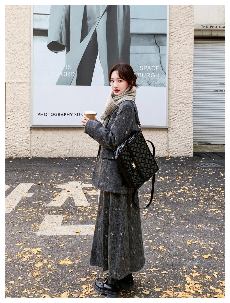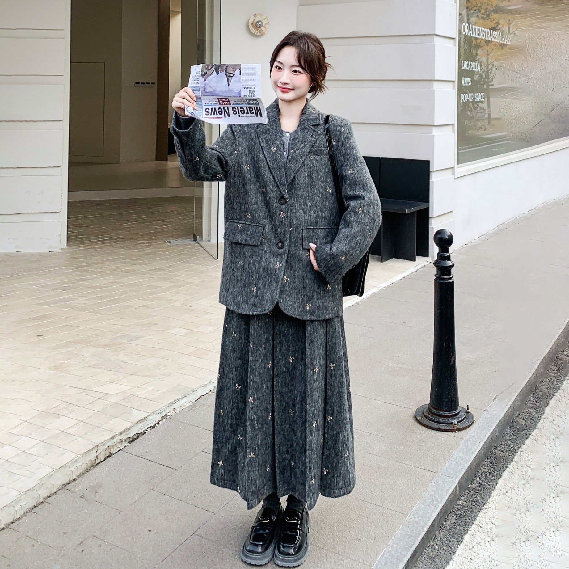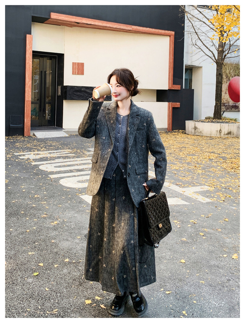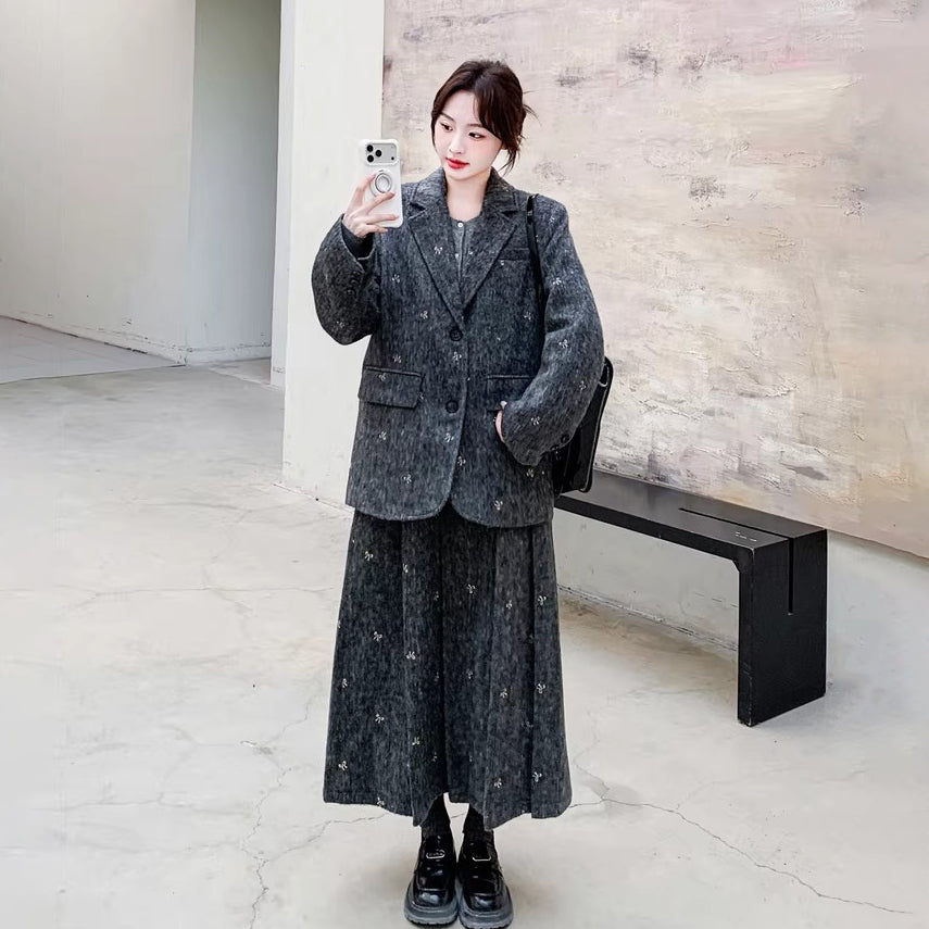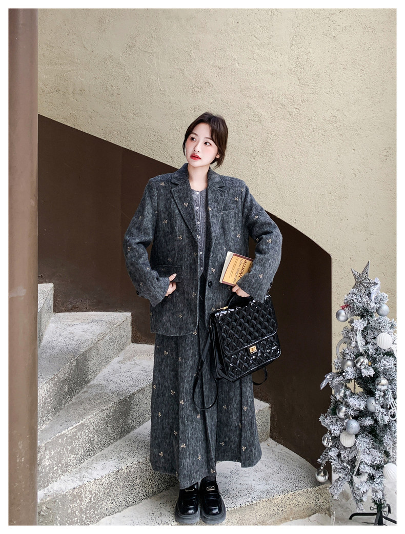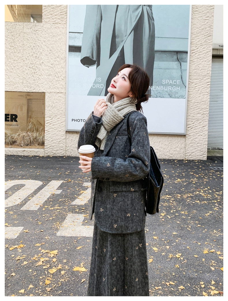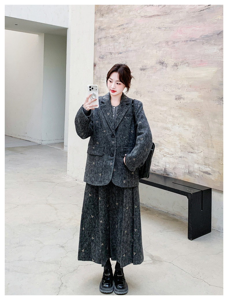 【セットアップ】刺繍入り ウール風 ブレンド ダウンジャケット&スカート 上下セット 秋冬 ダウンコート【SHシリーズ】【10~15日内発送】