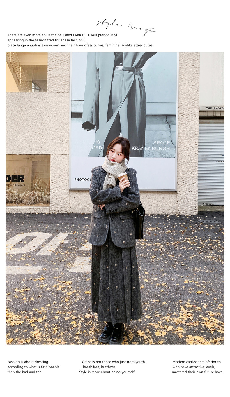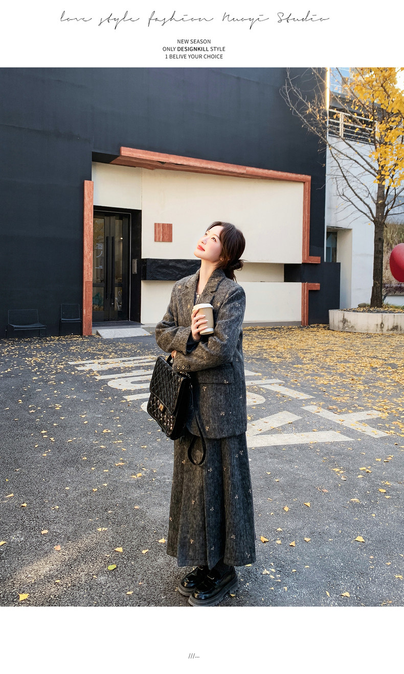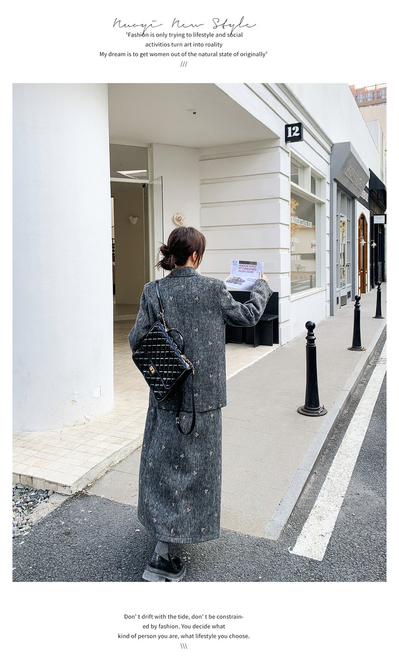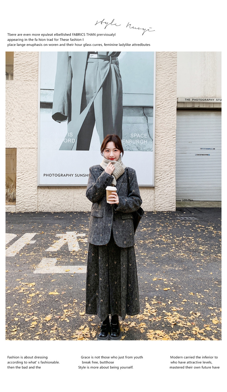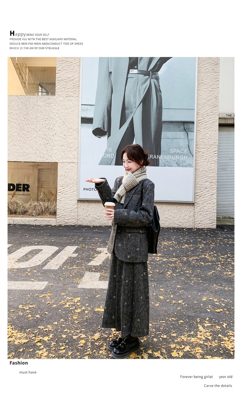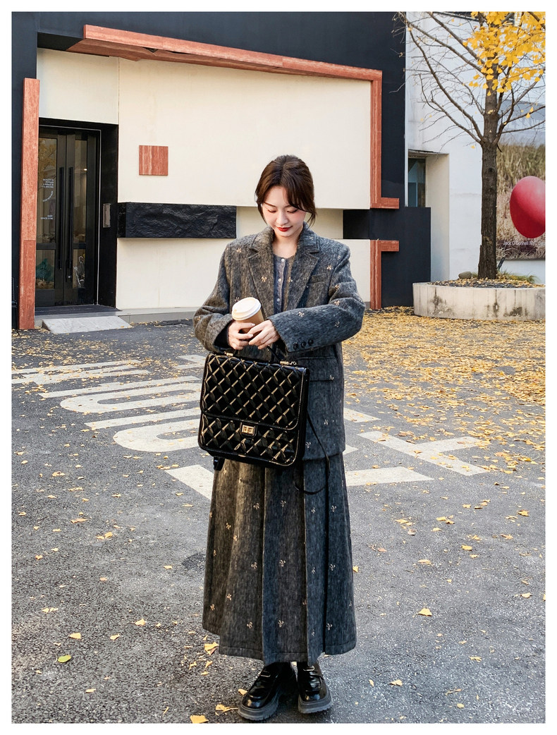 【セットアップ】刺繍入り ウール風 ブレンド ダウンジャケット&スカート 上下セット 秋冬 ダウンコート【SHシリーズ】【10~15日内発送】