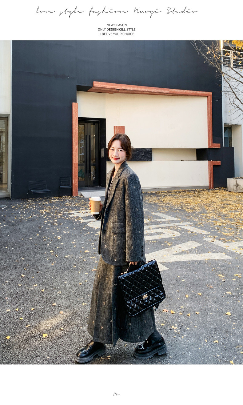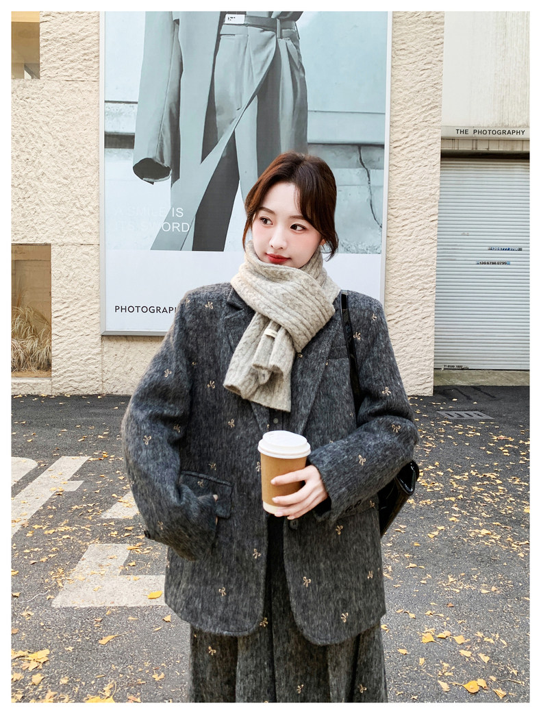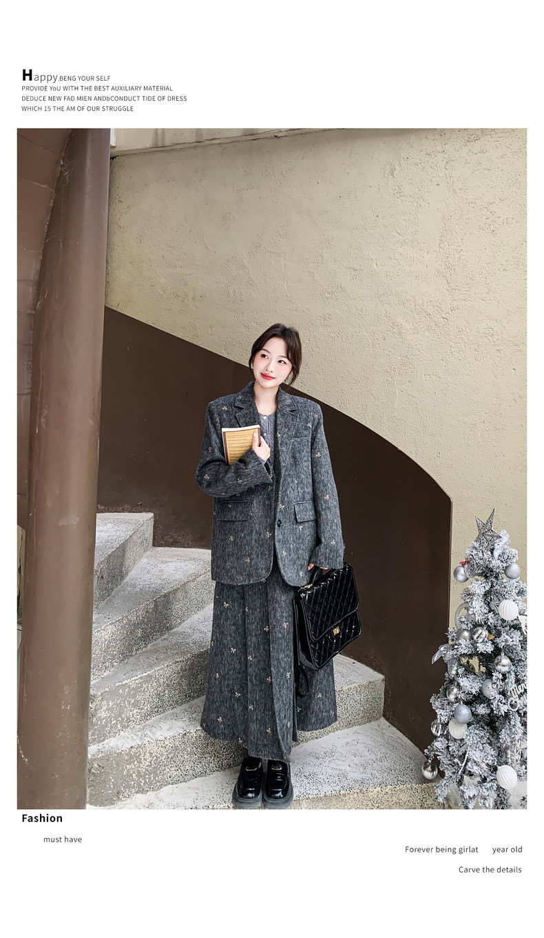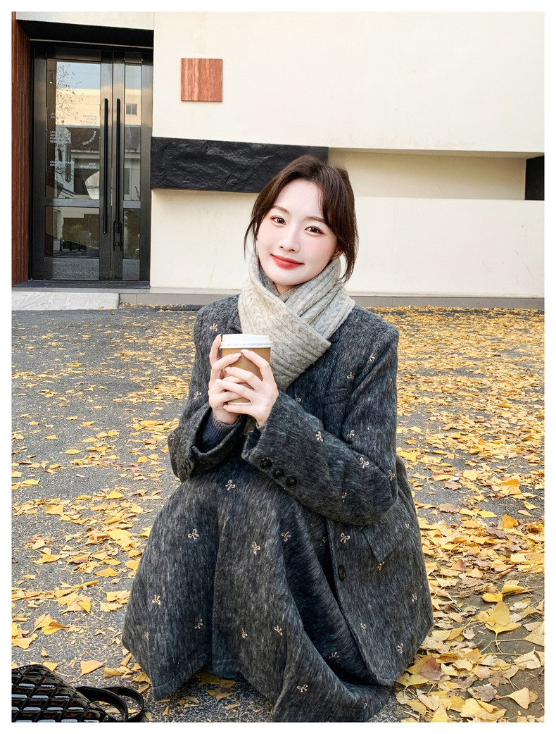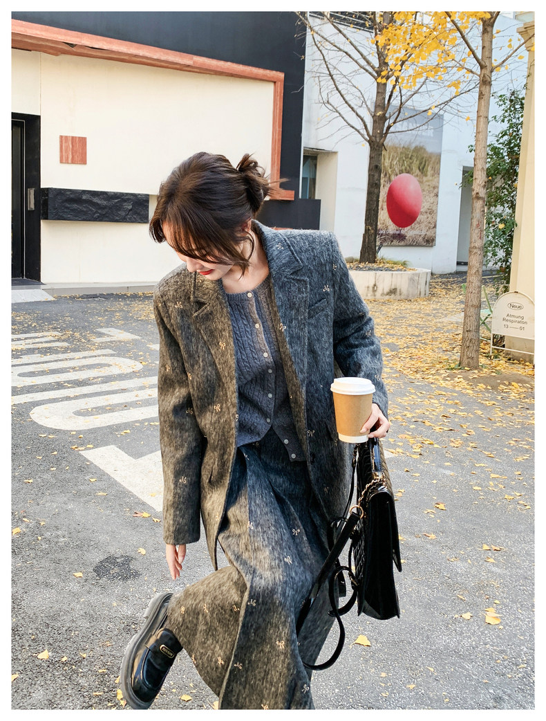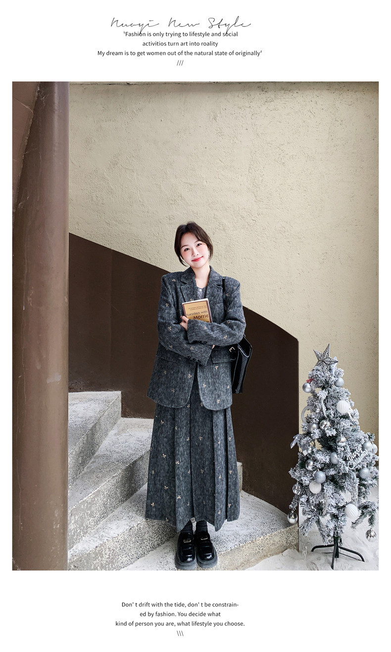 【セットアップ】刺繍入り ウール風 ブレンド ダウンジャケット&スカート 上下セット 秋冬 ダウンコート【SHシリーズ】【10~15日内発送】