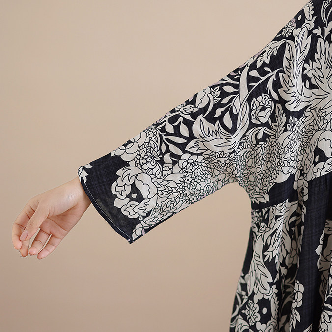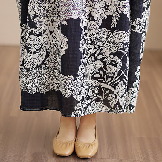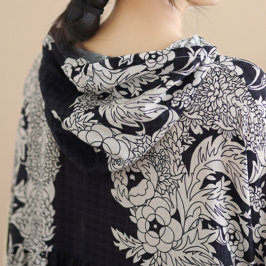 【商品名】【ワンピース】上品 ナチュラル コットンリネン フード付き プリント 長袖ワンピース 大きいサイズ レディース ロングドレス【SHシリーズ】