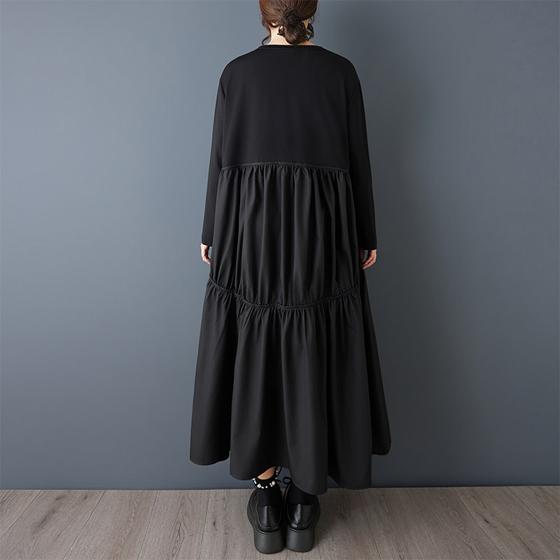 【60%OFF⭐️早い者勝ち】【ワンピース】春秋ラウンドネック 長袖 ニット パッチワーク ロング 長袖ワンピース