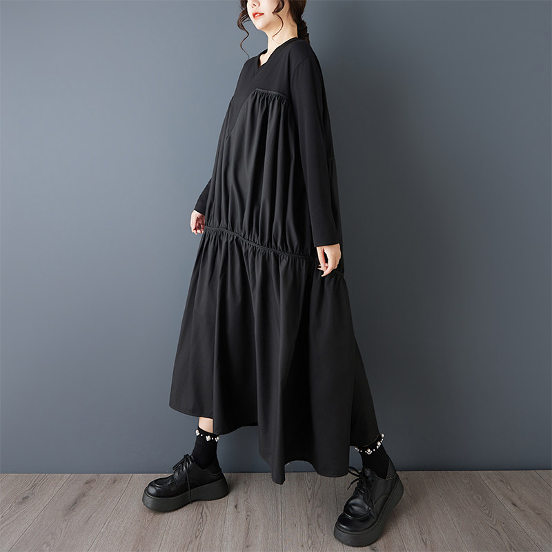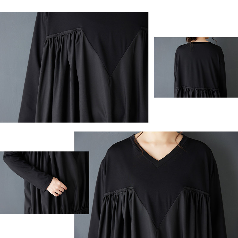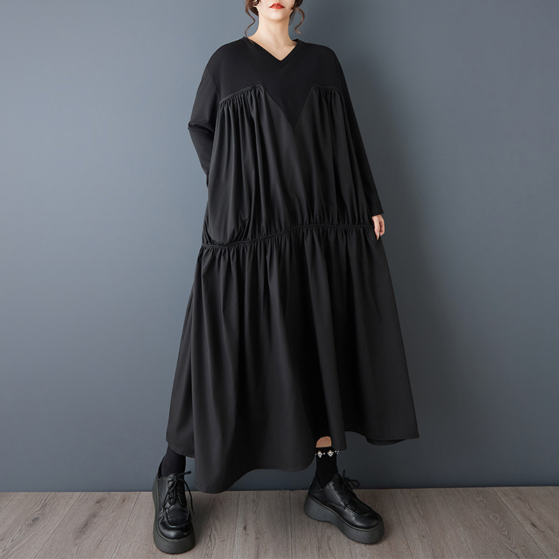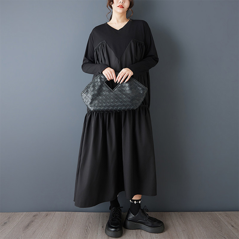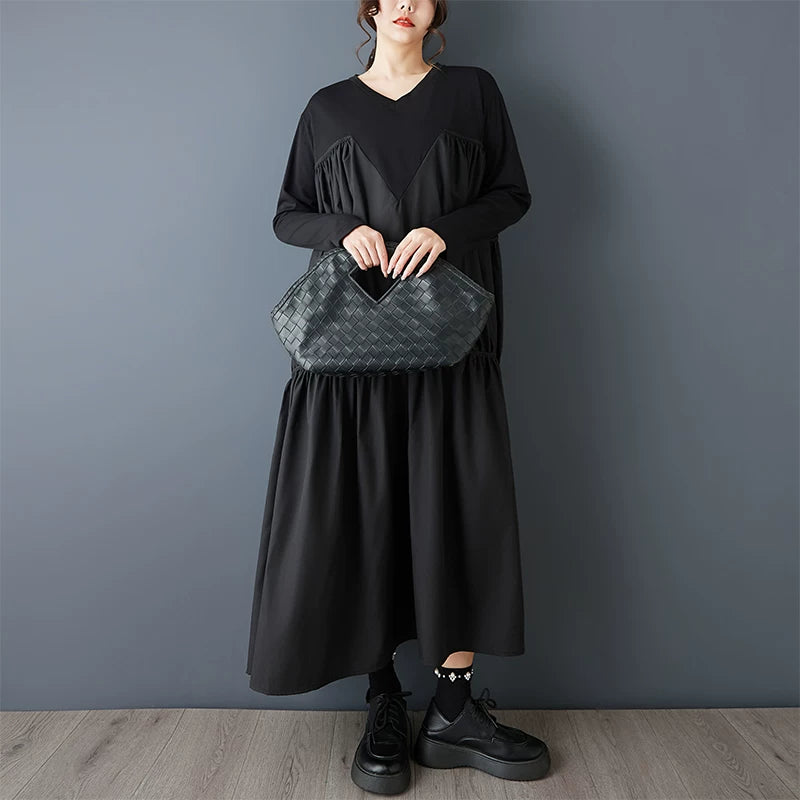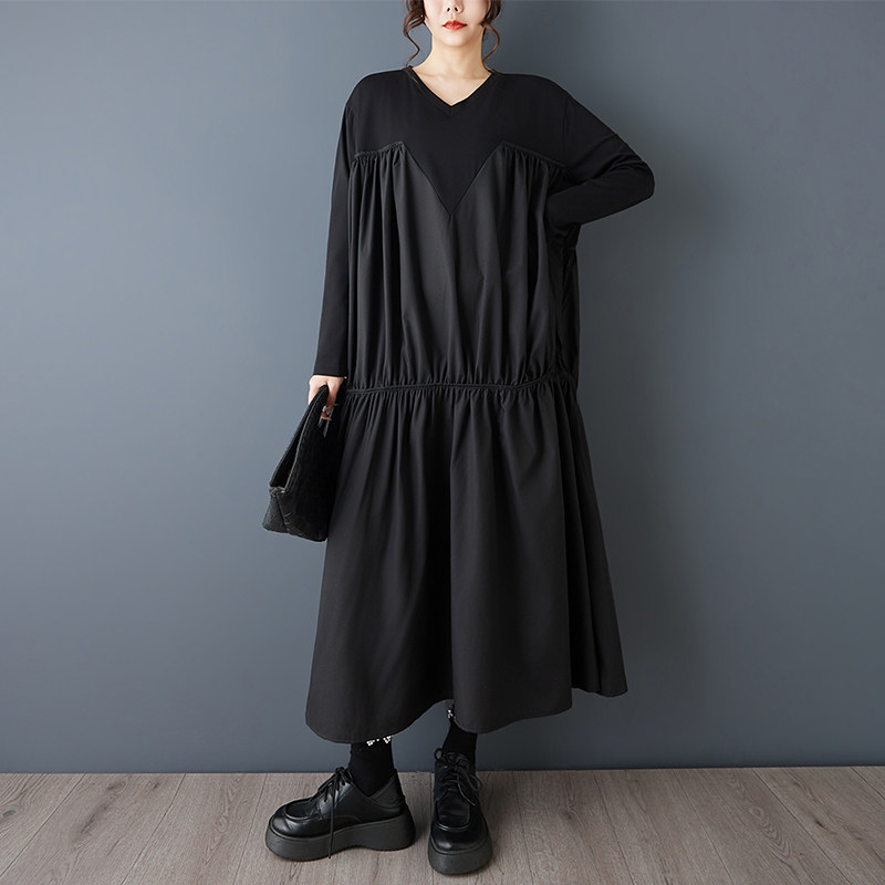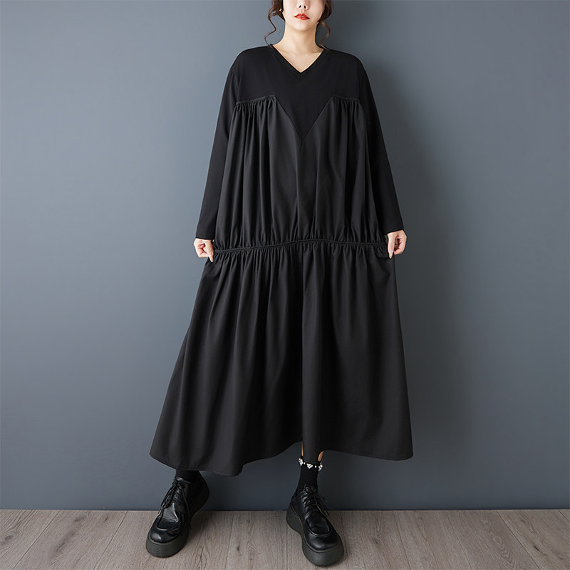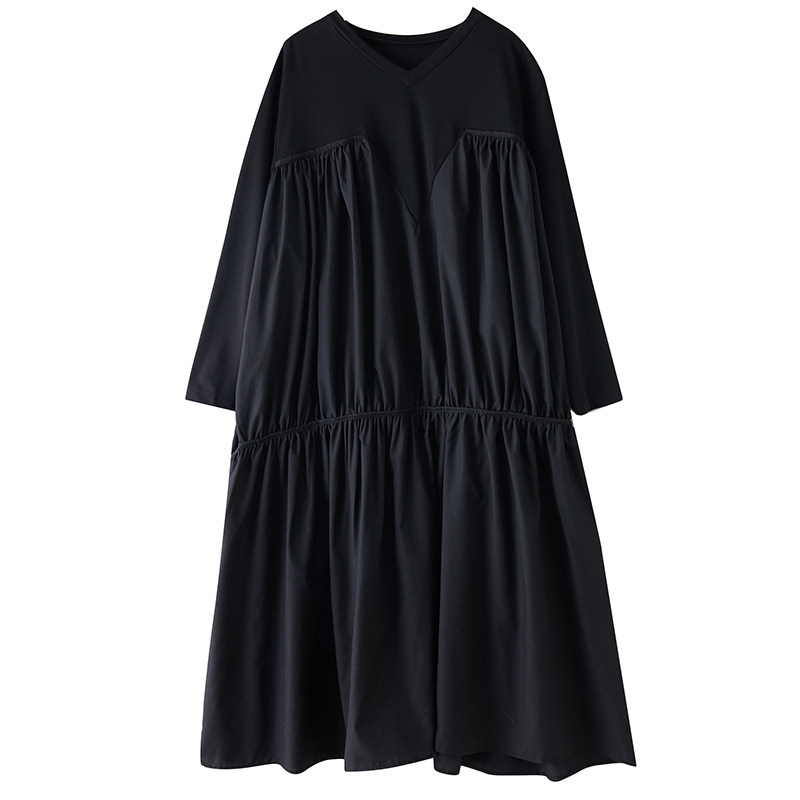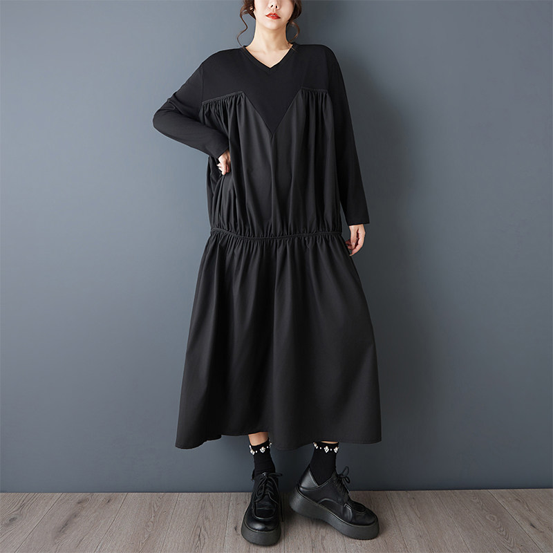 【60%OFF⭐️早い者勝ち】【ワンピース】ヴィンテージ ワンピース 長袖 切替 ビッグVネック ゆったり リラックス感 デザイン レディース【AHシリーズ】