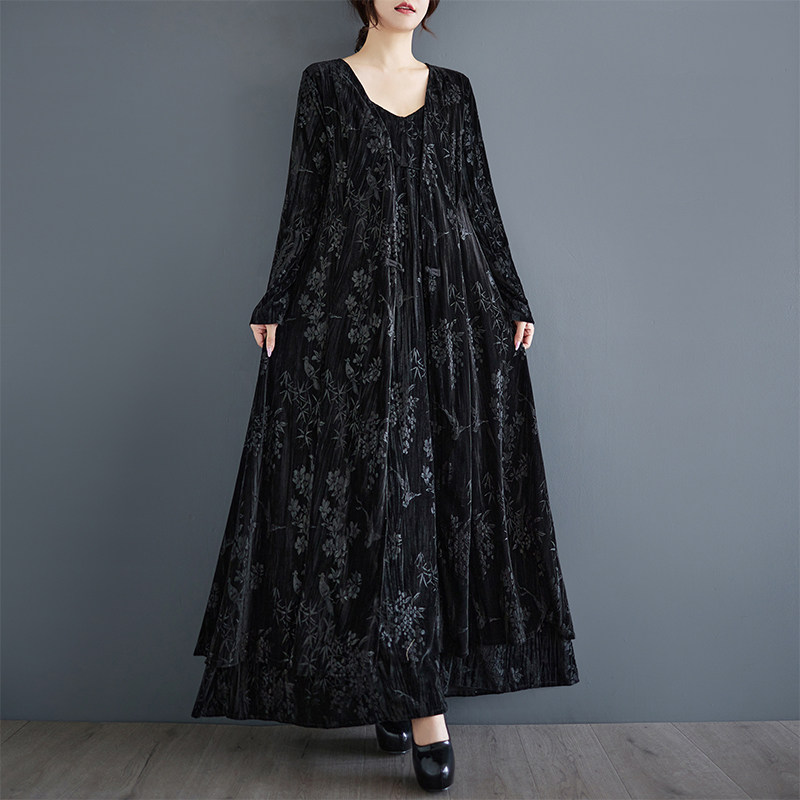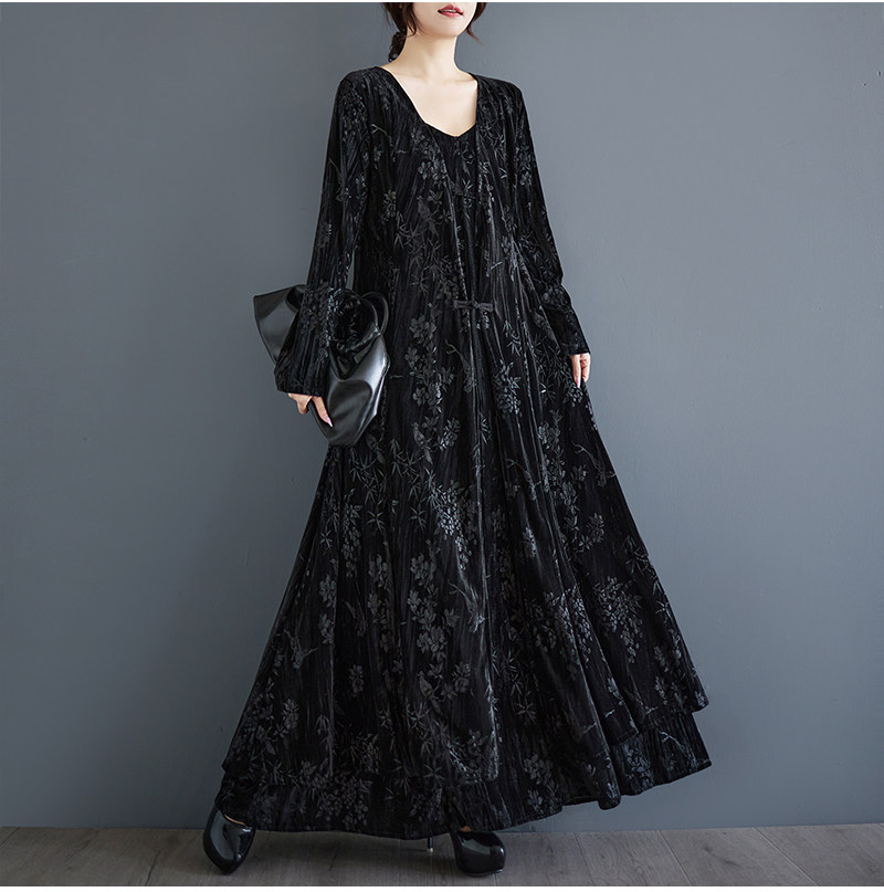 【60%OFF⭐️先行スタート!】🔥大人気商品🔥【ワンピース】春秋冬 花柄 大きいサイズ ゆるリラックス 長袖 ワンピース【SHシリーズ】