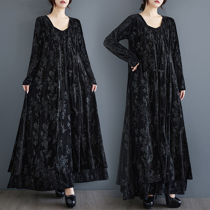 【60%OFF⭐️早い者勝ち】【ワンピース】レトロ ダークチャイナ風 ノースリーブワンピース チャイナボタン ブラック ミディ丈 レディース ロングドレス【SHシリーズ】