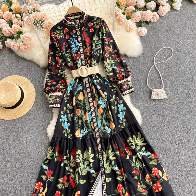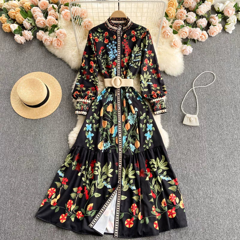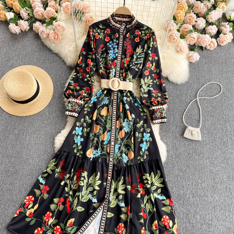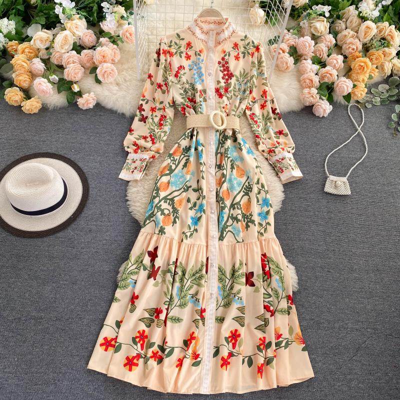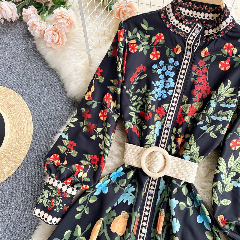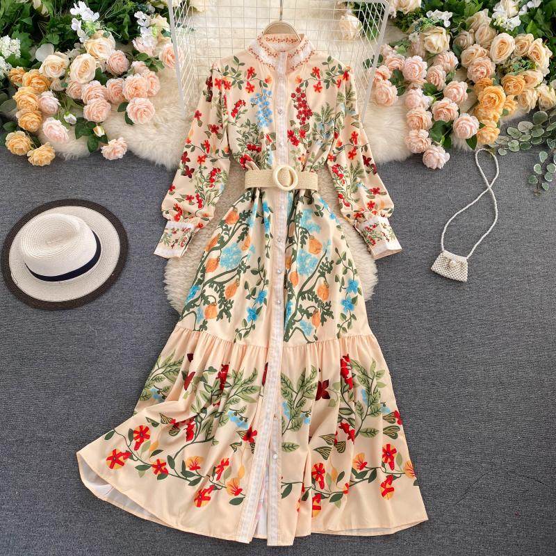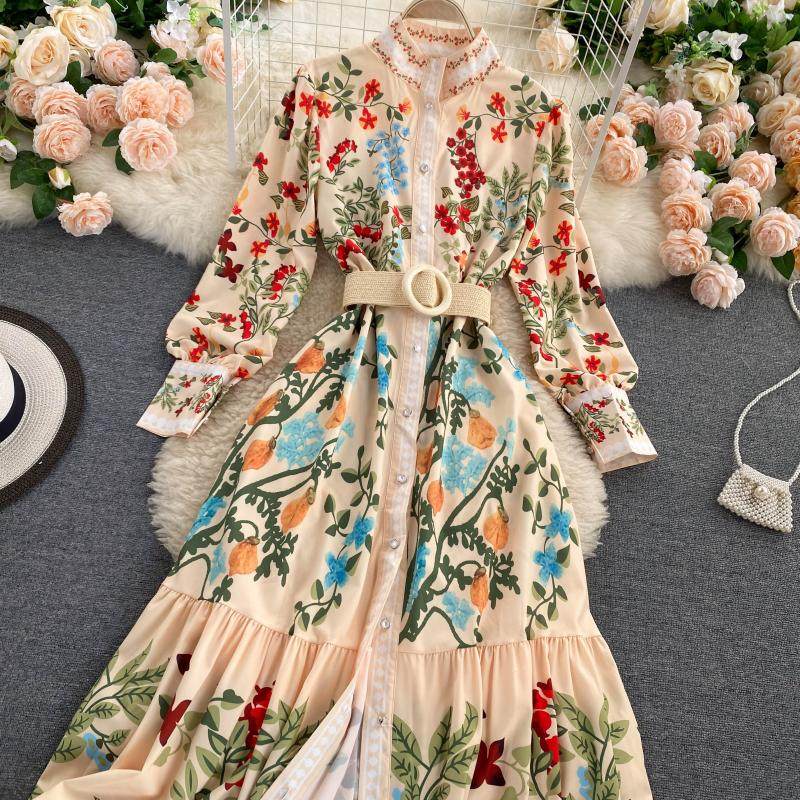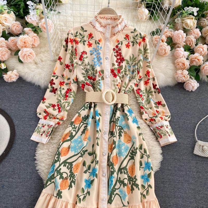 【60%OFF⭐️先行スタート!】💓大好評💓【ワンピース】春秋 韓国風 chic エレガント 花柄 フレア 長袖ワンピース【SHシリーズ】