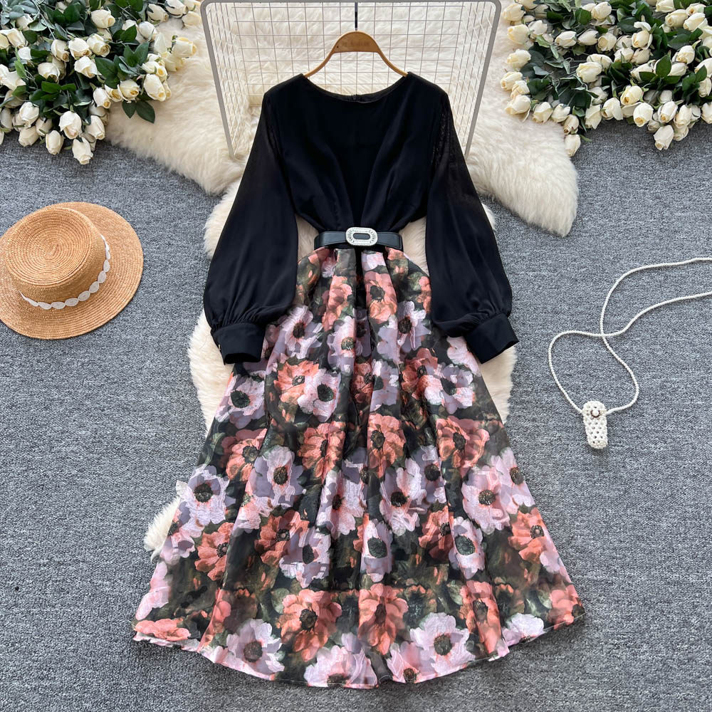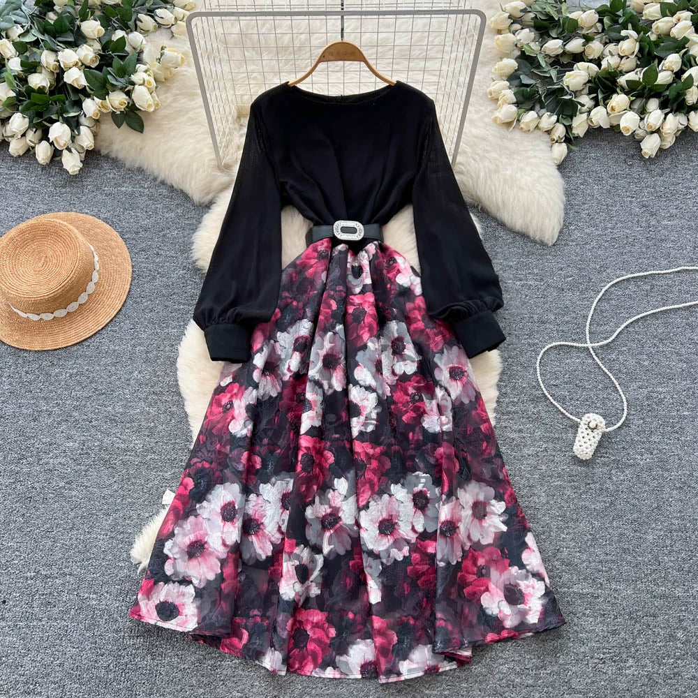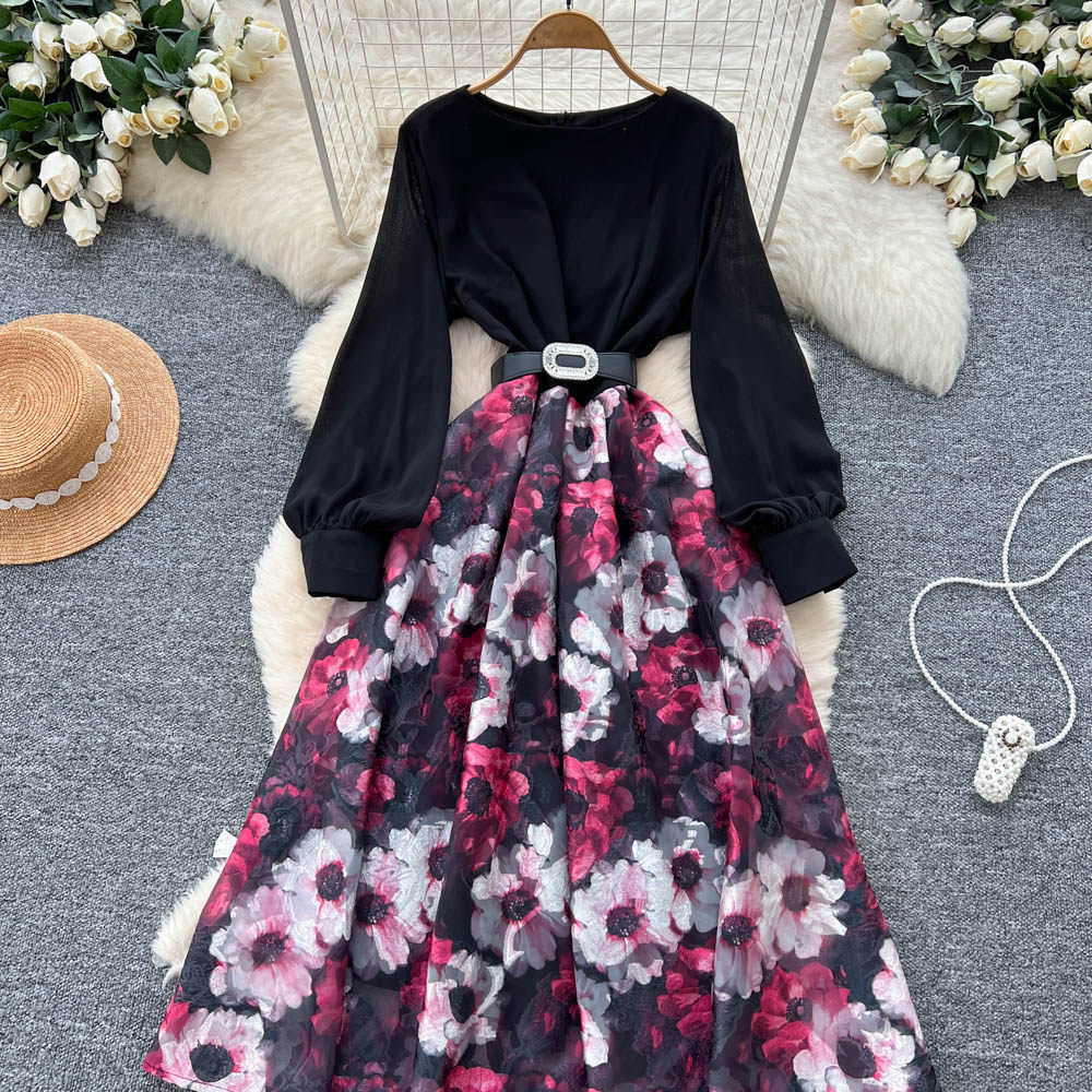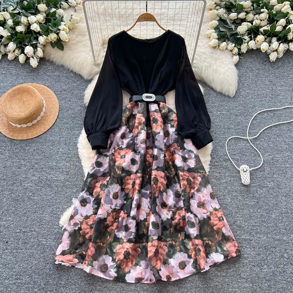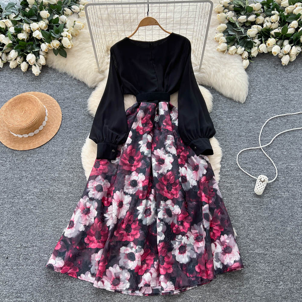 【60%OFF⭐️先行スタート!】💓大好評💓【ワンピース】春秋 韓国風 chic エレガント 花柄 フレア 長袖ワンピース【SHシリーズ】