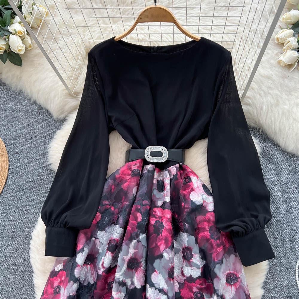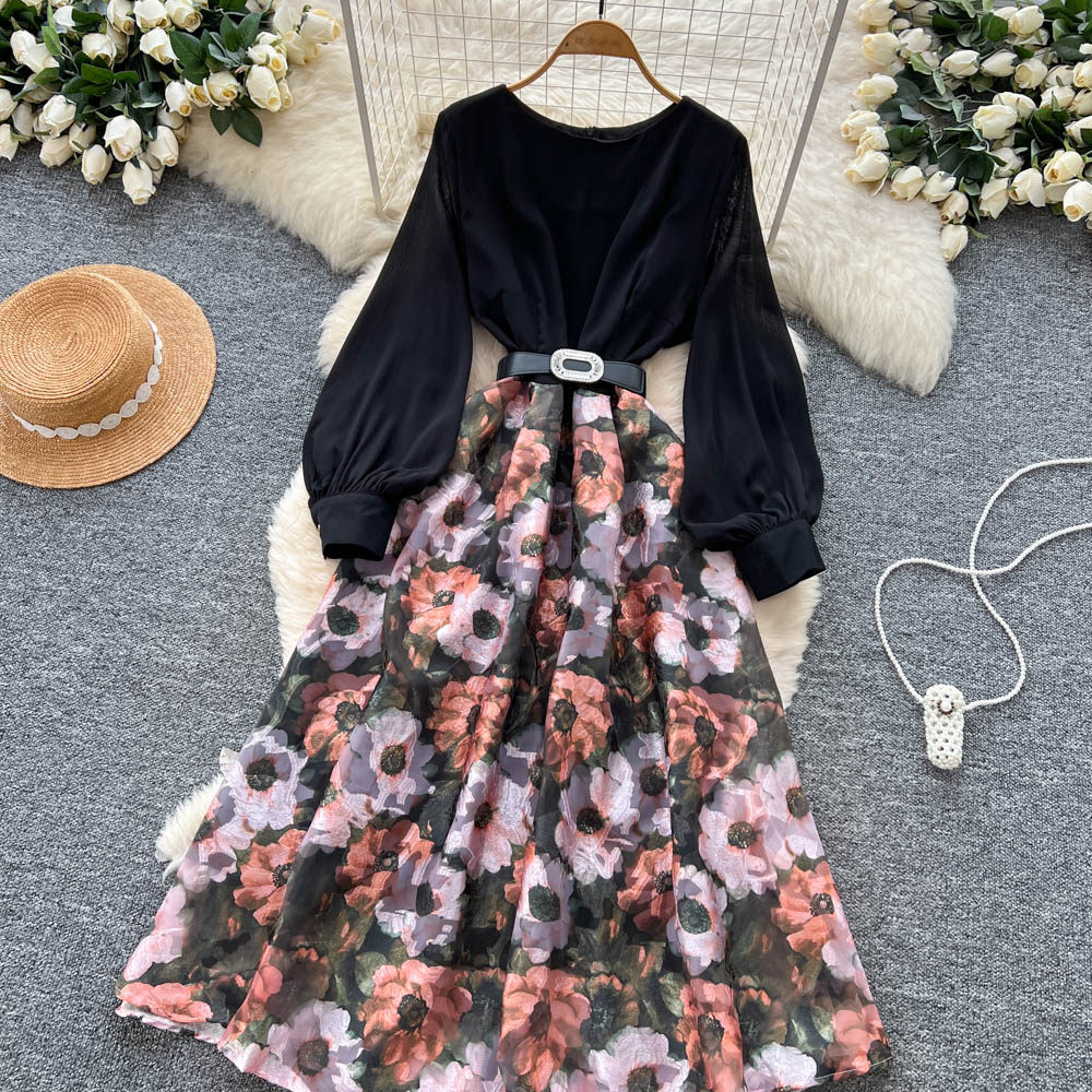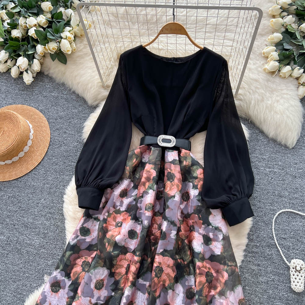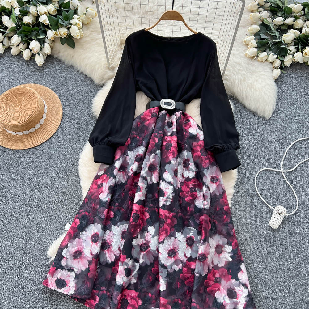 【60%OFF⭐️先行スタート!】💓大好評💓【ワンピース】春秋 韓国風 chic エレガント 花柄 フレア 長袖ワンピース【SHシリーズ】