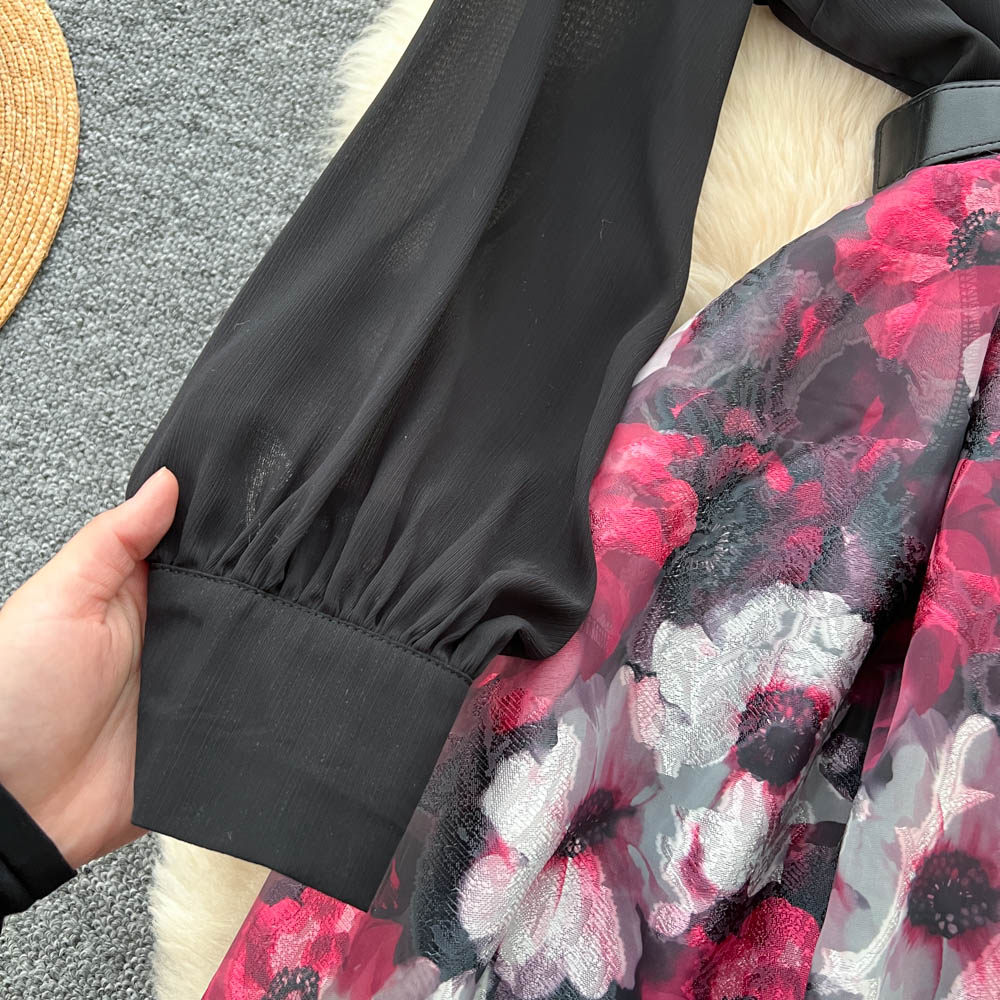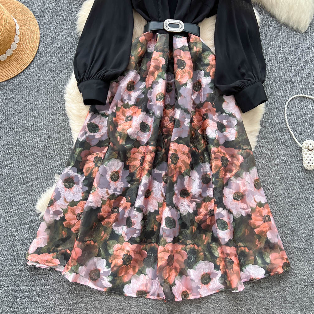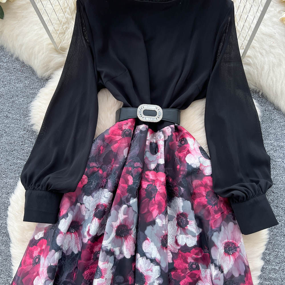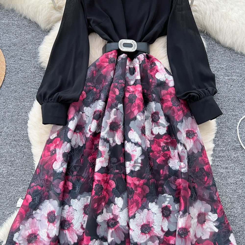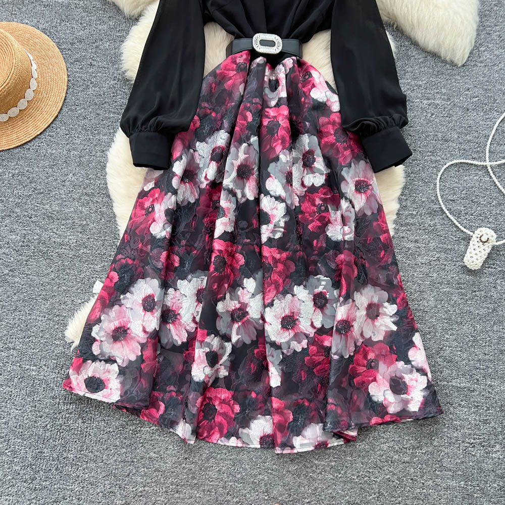 【60%OFF⭐️先行スタート!】💓大好評💓【ワンピース】春秋 韓国風 chic エレガント 花柄 フレア 長袖ワンピース【SHシリーズ】
