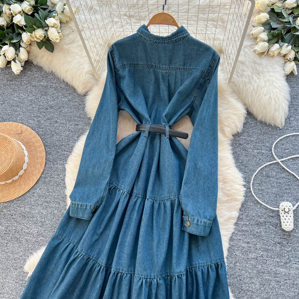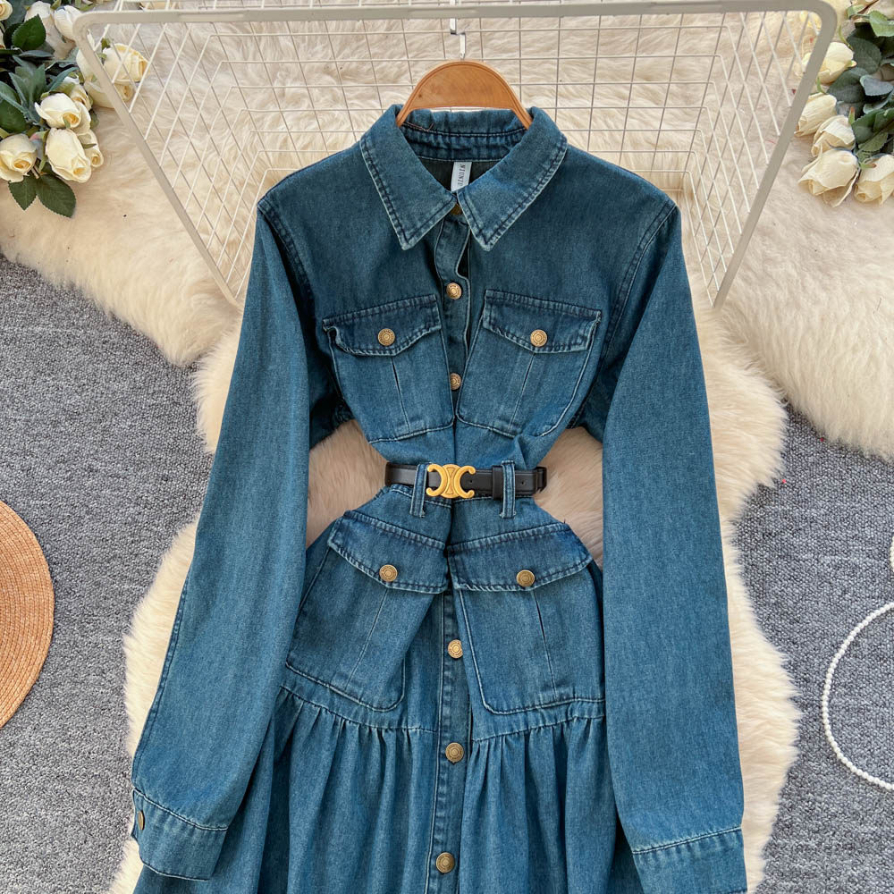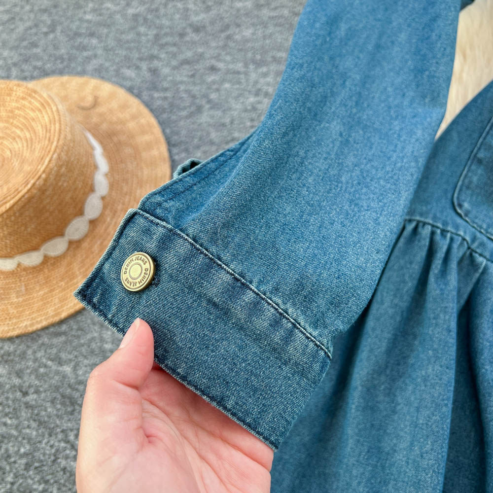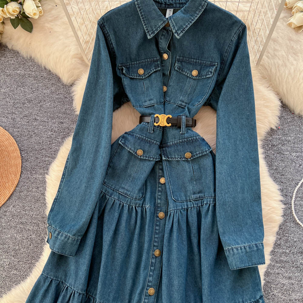 【ワンピース】フレンチ ヴィンテージ エレガント 大人カジュアル デニム 長袖ワンピース 秋【JZシリーズ】