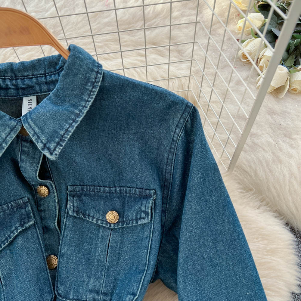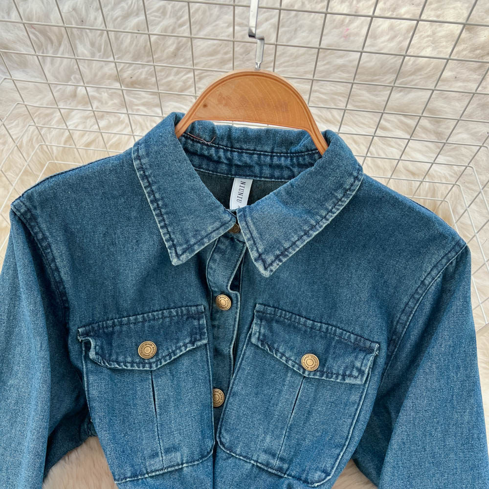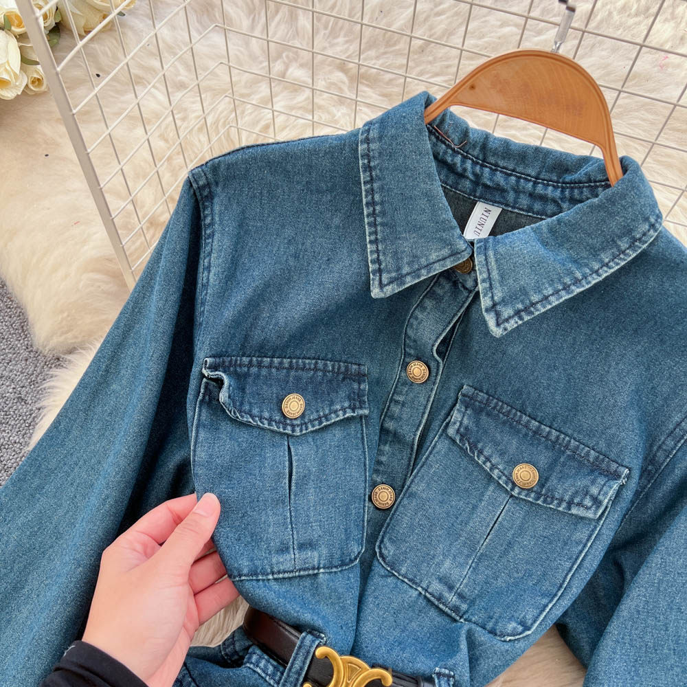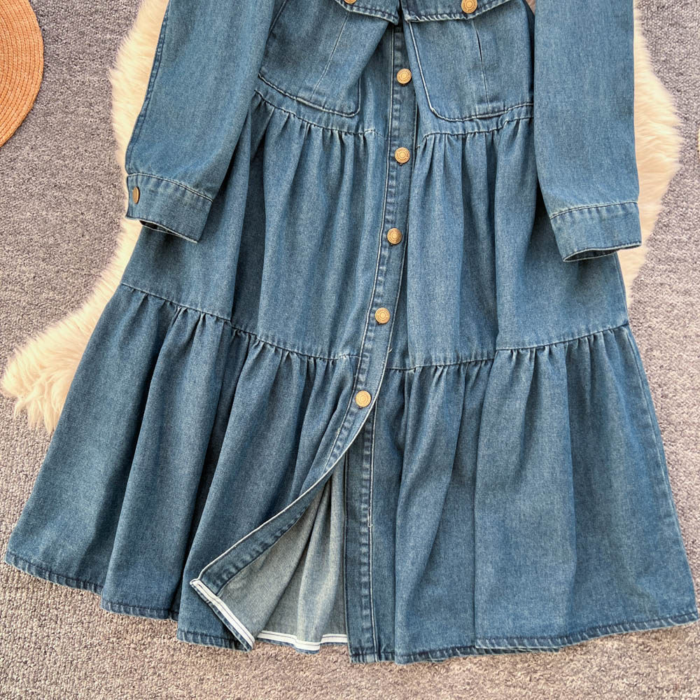【ワンピース】フレンチ ヴィンテージ エレガント 大人カジュアル デニム 長袖ワンピース 秋【JZシリーズ】