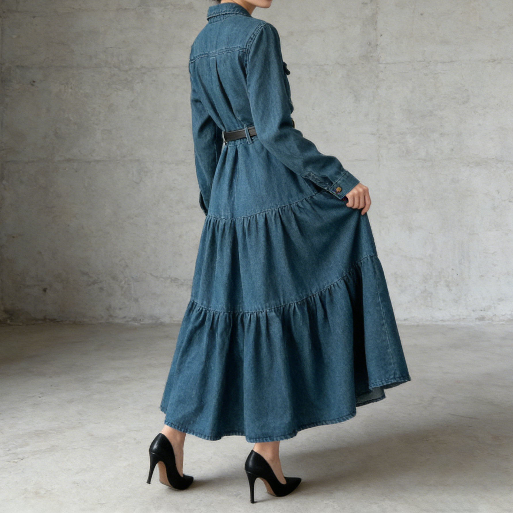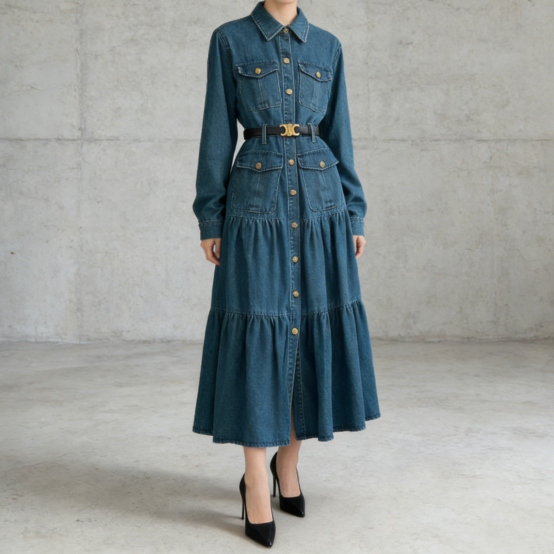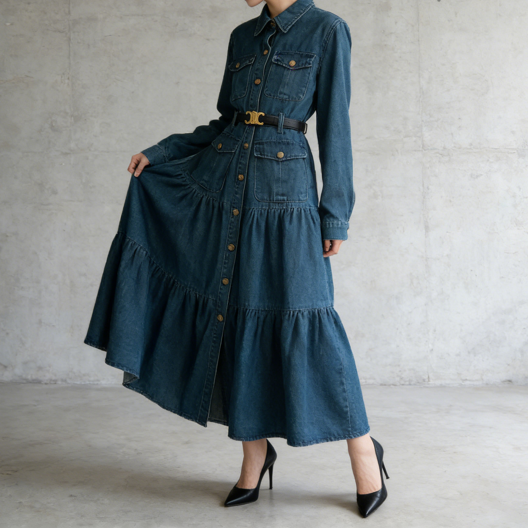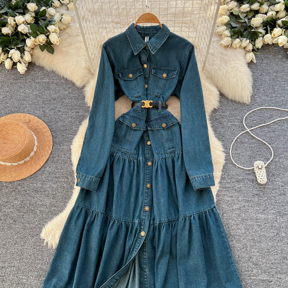 【商品名】【ワンピース】フレンチ ヴィンテージ エレガント 大人カジュアル デニム 長袖ワンピース 秋【JZシリーズ】