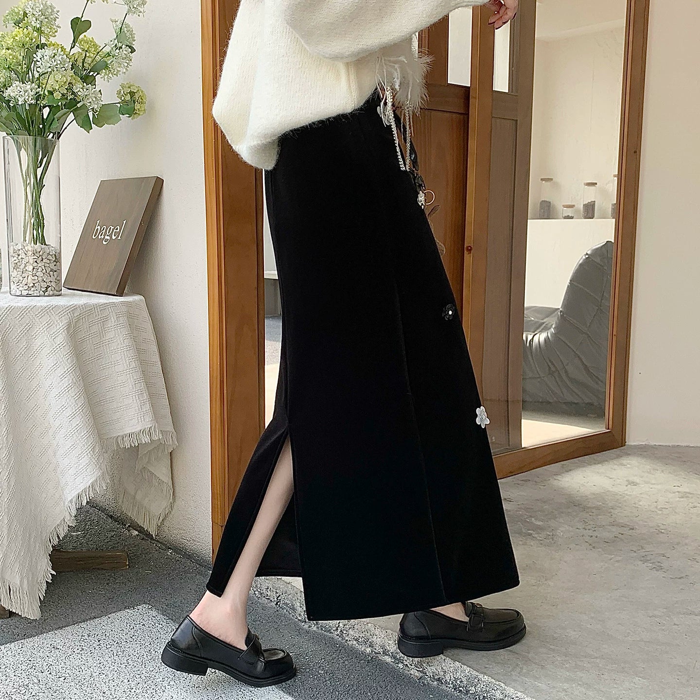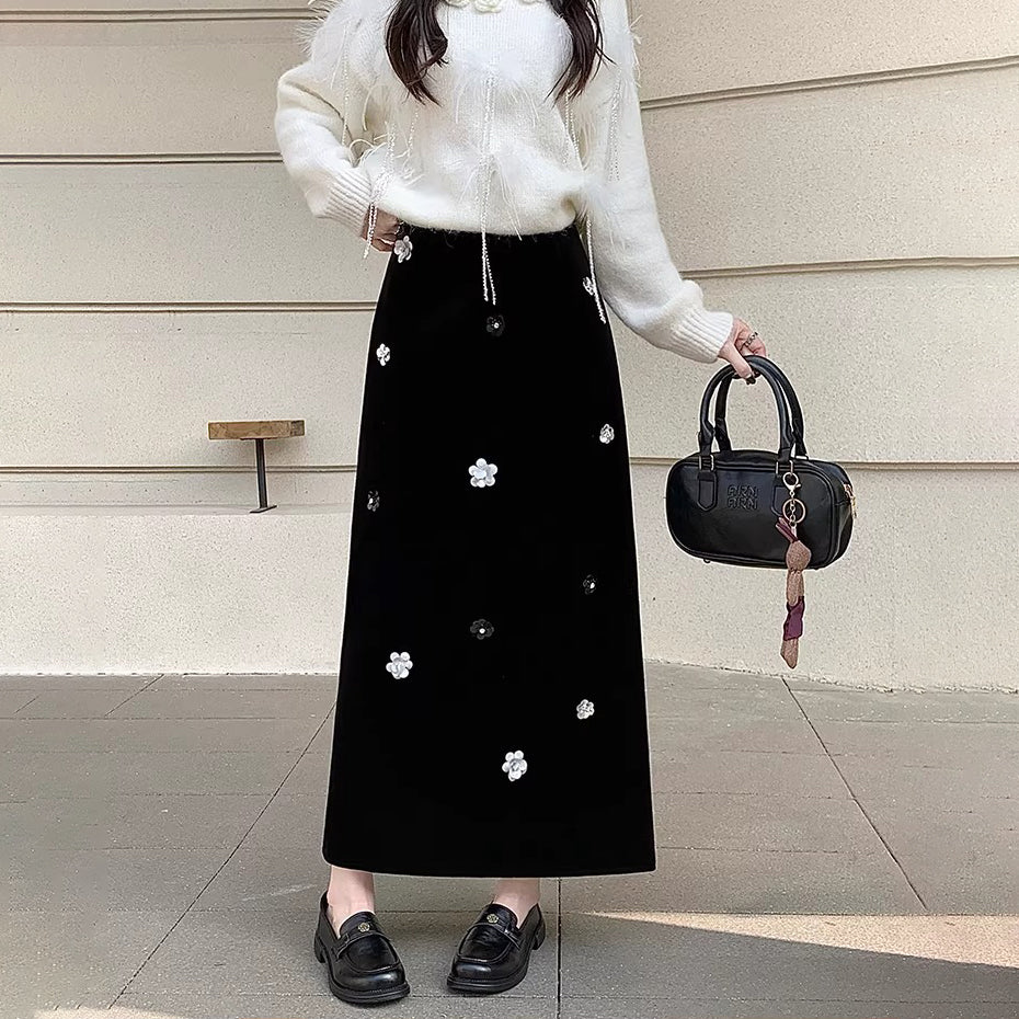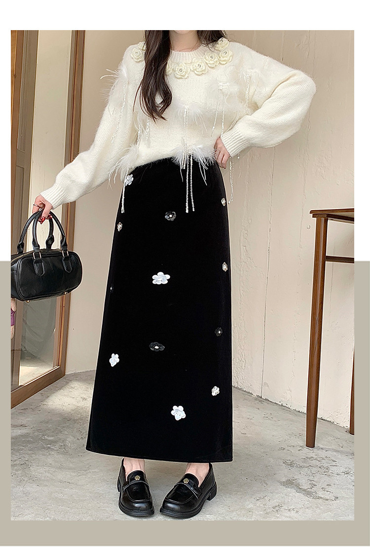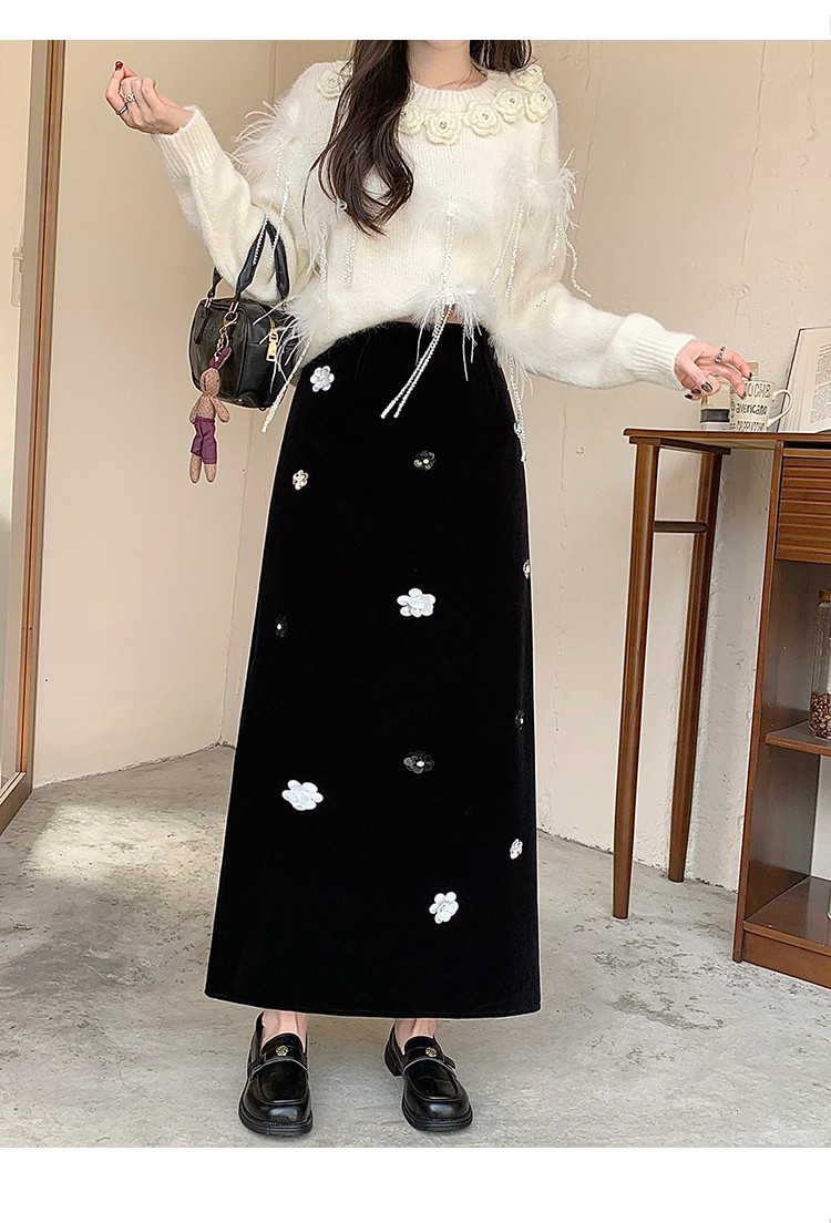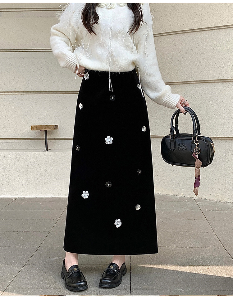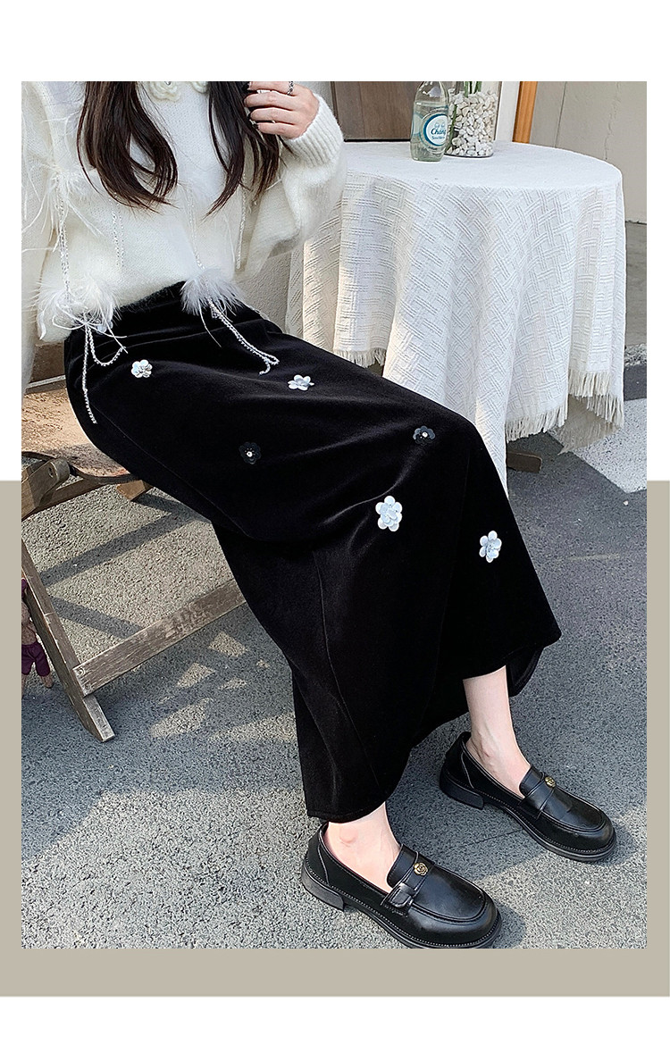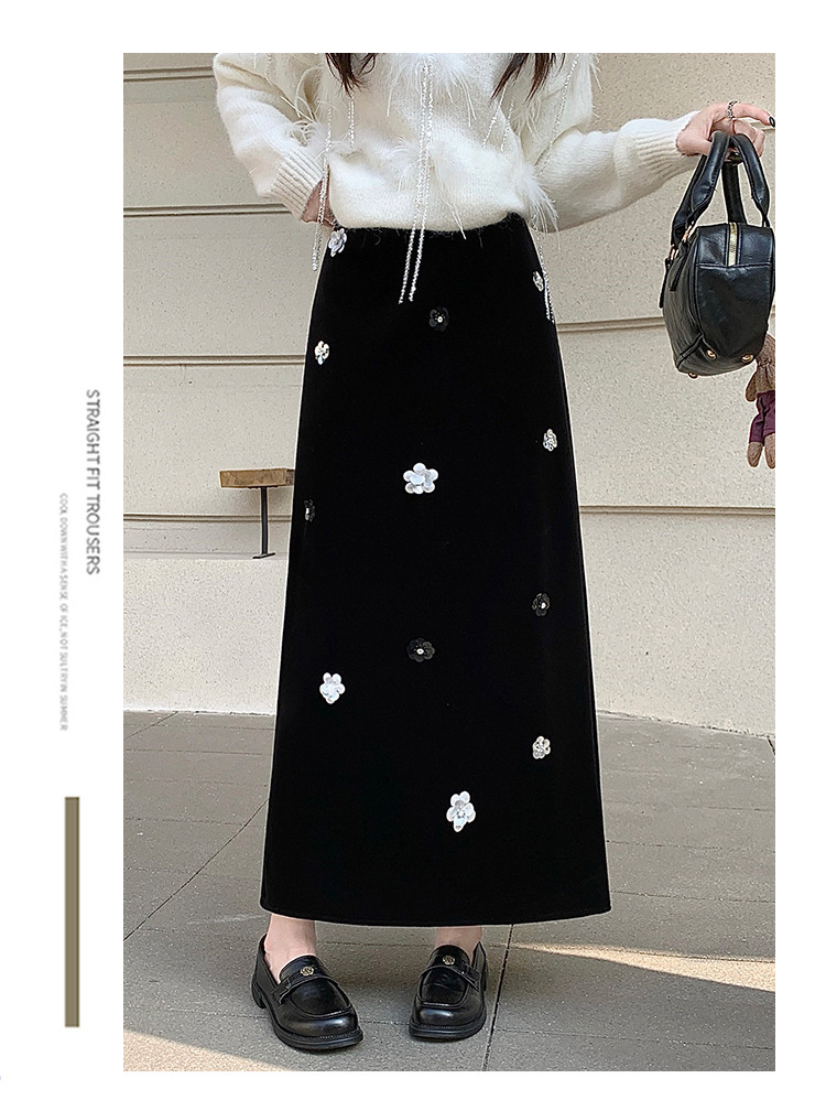 【商品名】【ボトムス】裏起毛 ロングスカート Aライン スリット入り ヒップカバー 落ち感 ベロア調 厚手 秋冬 レディース【JZシリーズ】