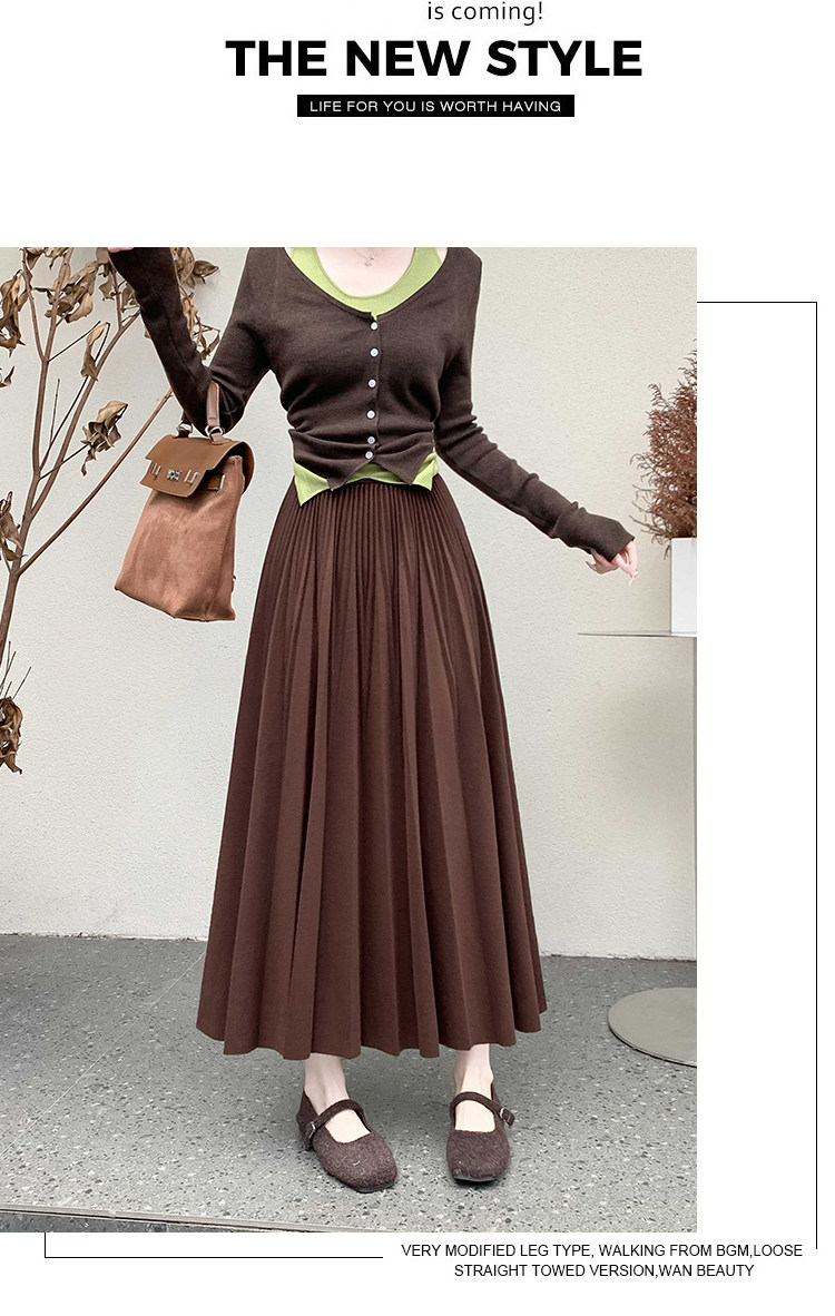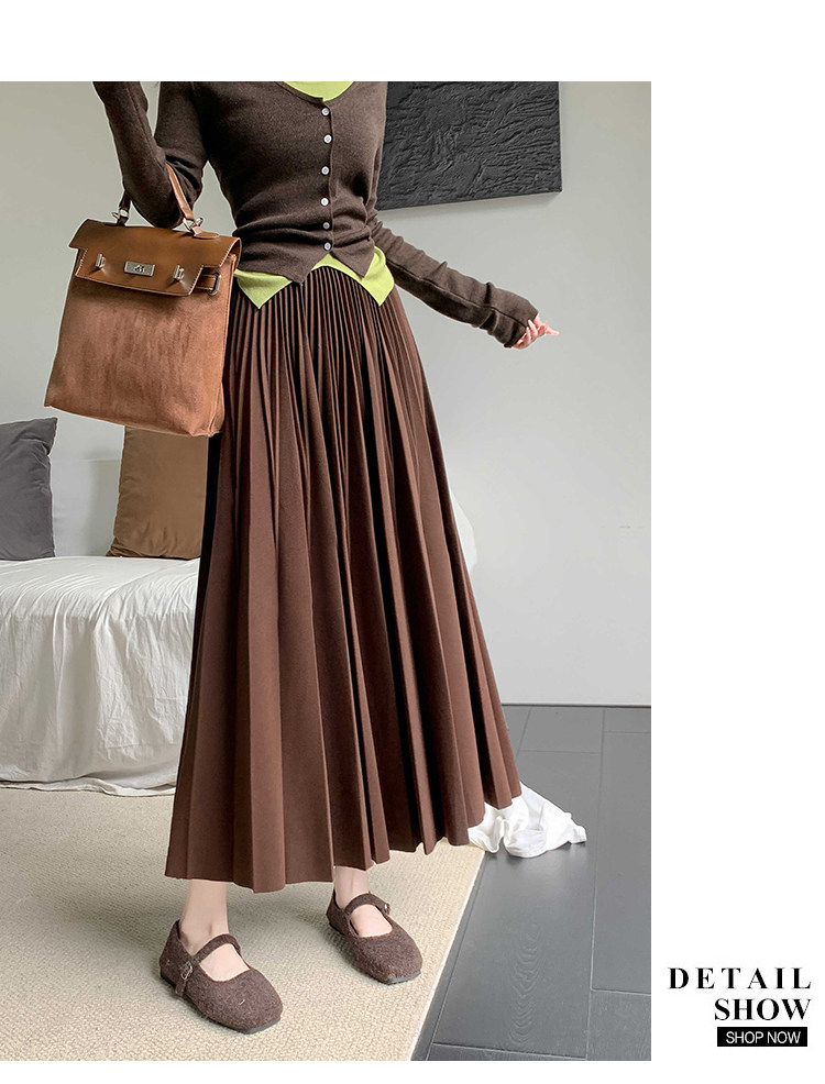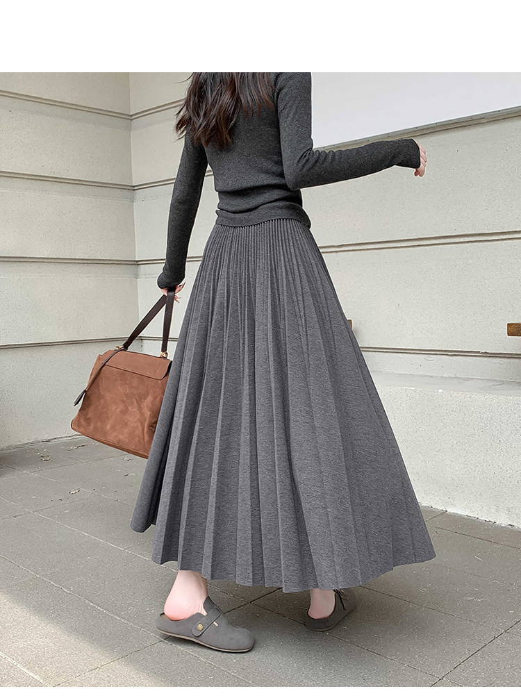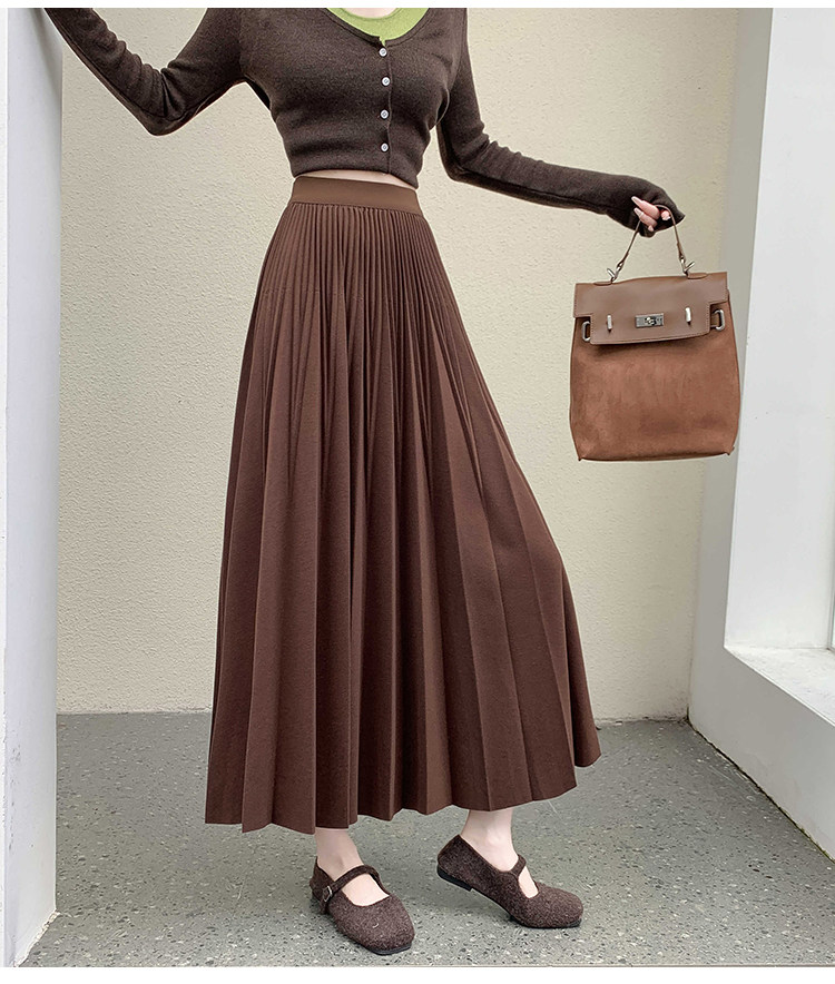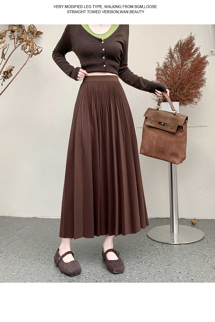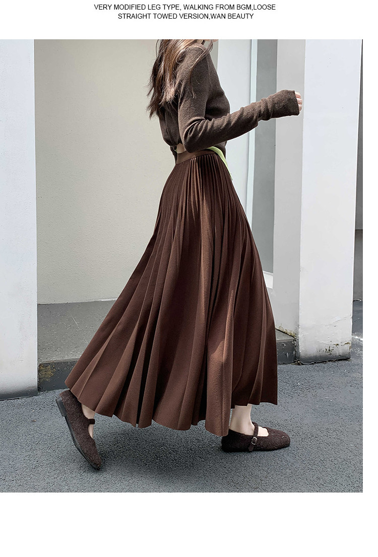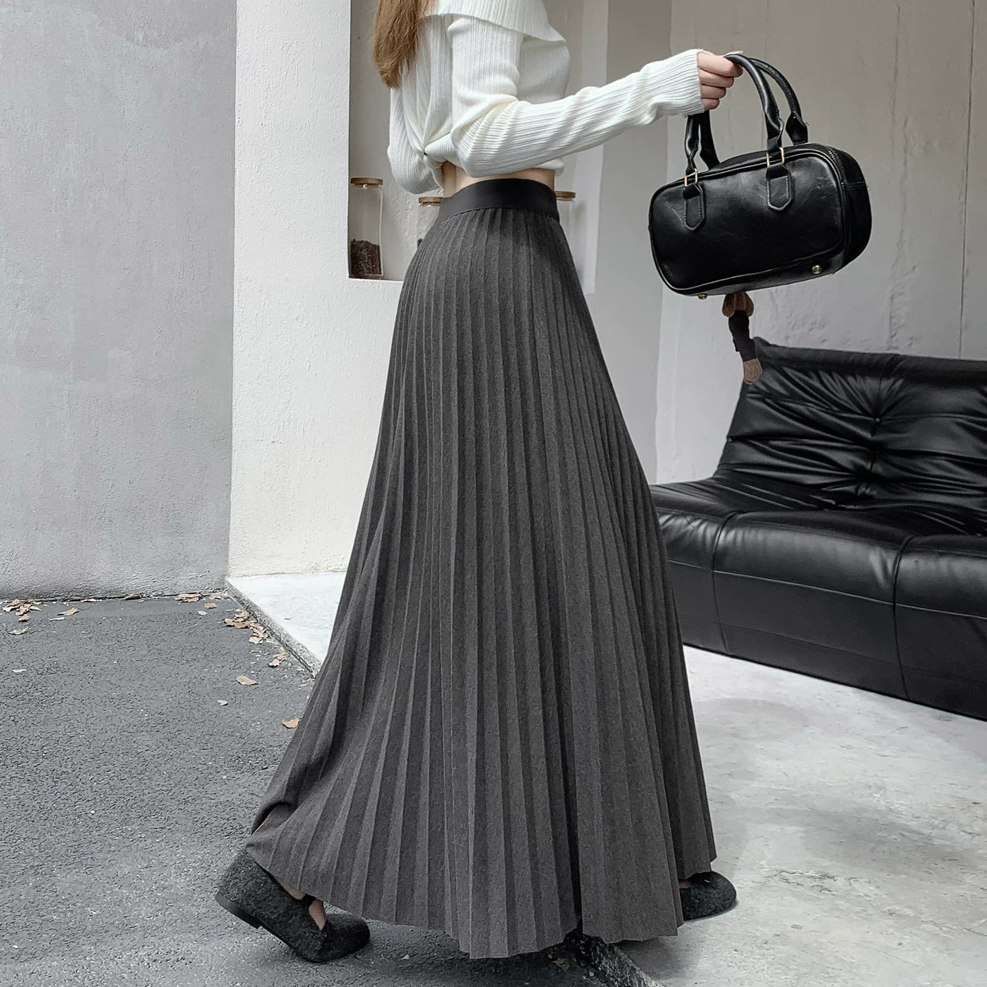 【ボトムス】エレガント ウール調 プリーツスカート 秋冬 Aライン ミディ丈 ヒップカバー 体型カバー【JZシリーズ】