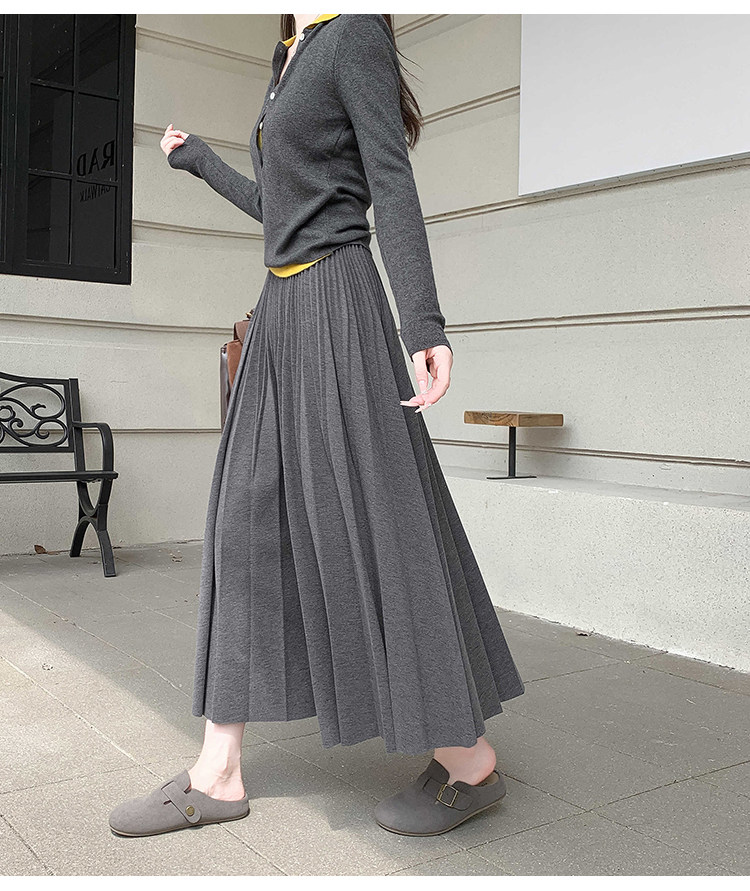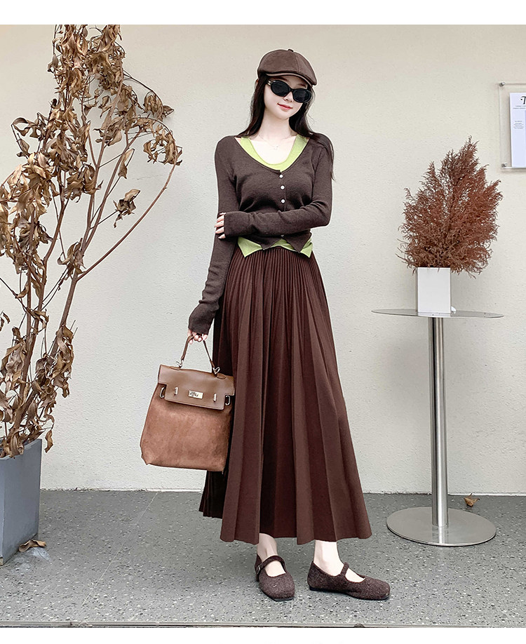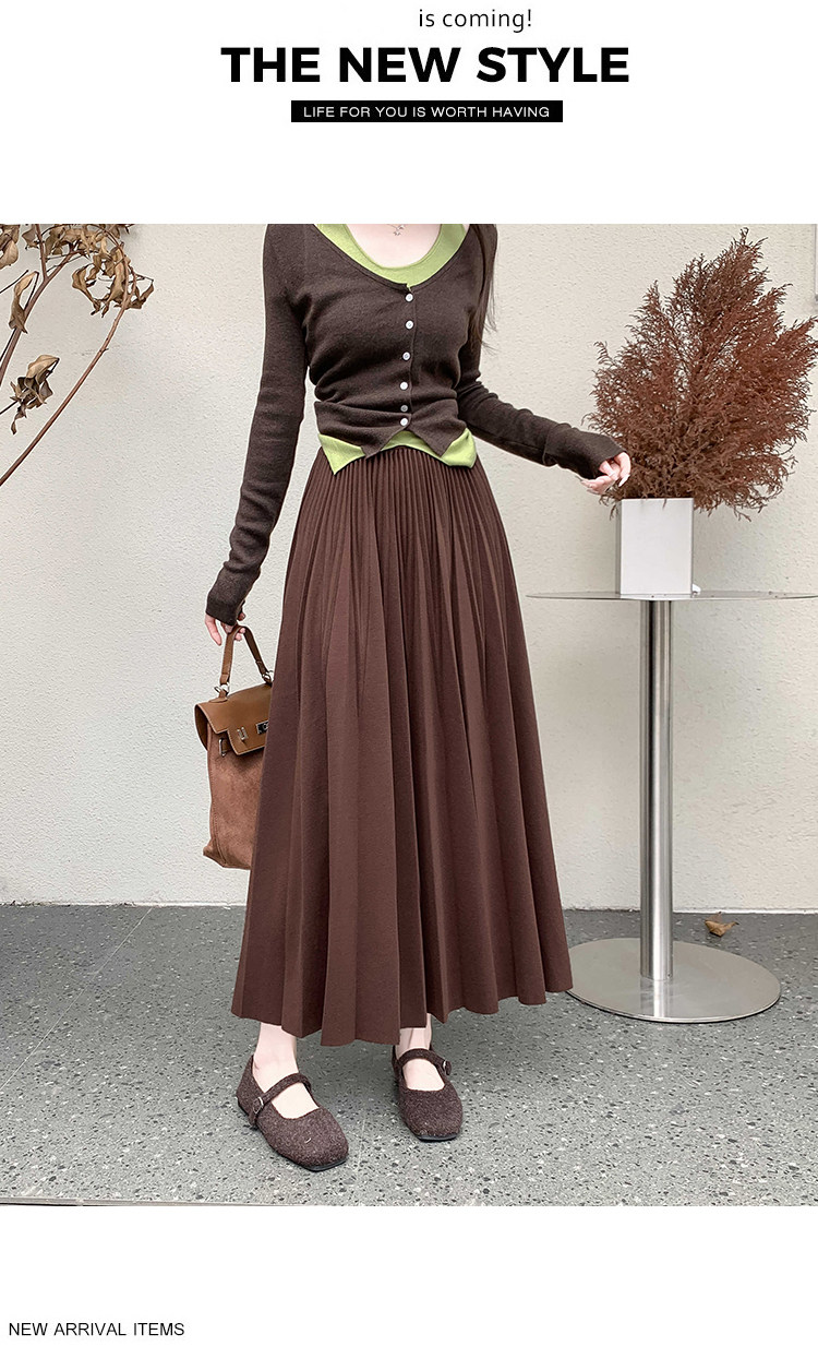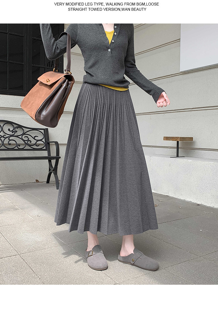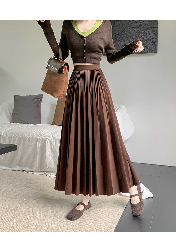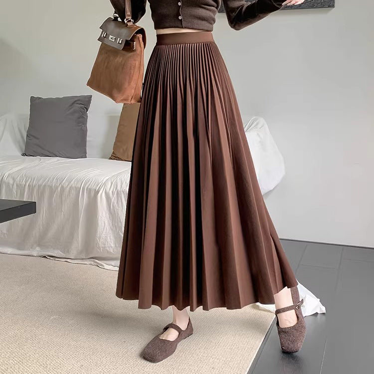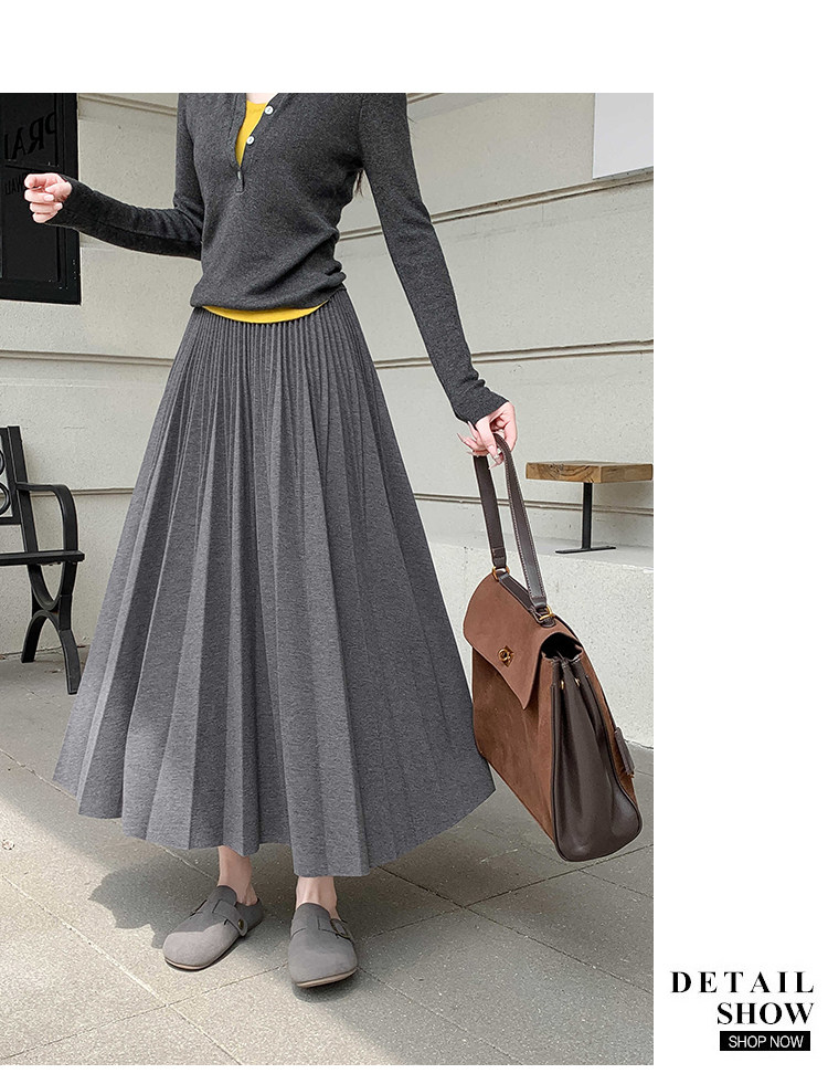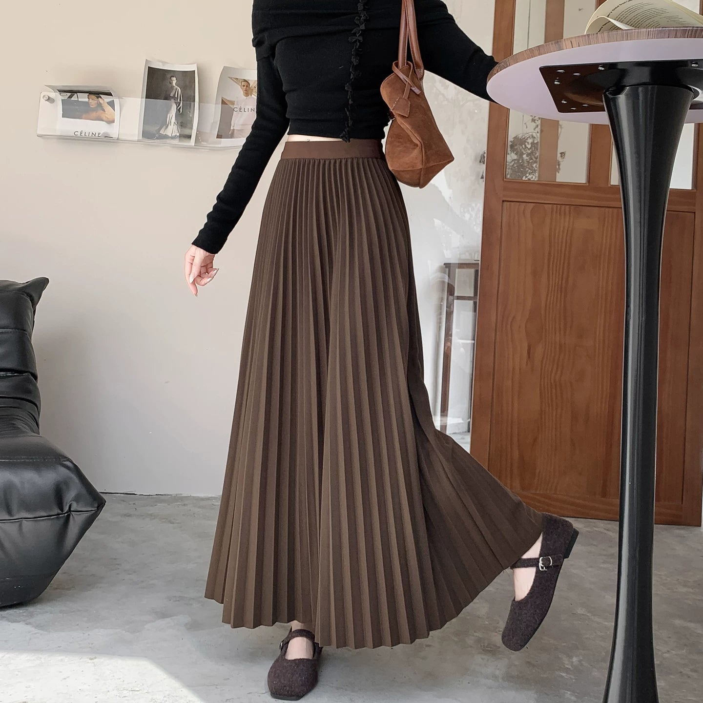 【ボトムス】エレガント ウール調 プリーツスカート 秋冬 Aライン ミディ丈 ヒップカバー 体型カバー【JZシリーズ】