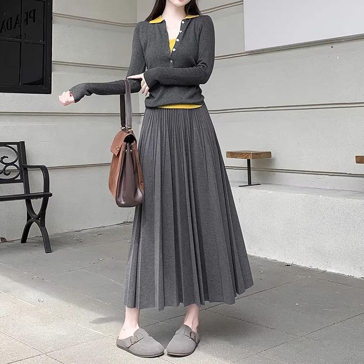 【セットアップ】無地 ホワイト セーター + プリーツ ショート スカート 2点上下セット 【JZシリーズ】