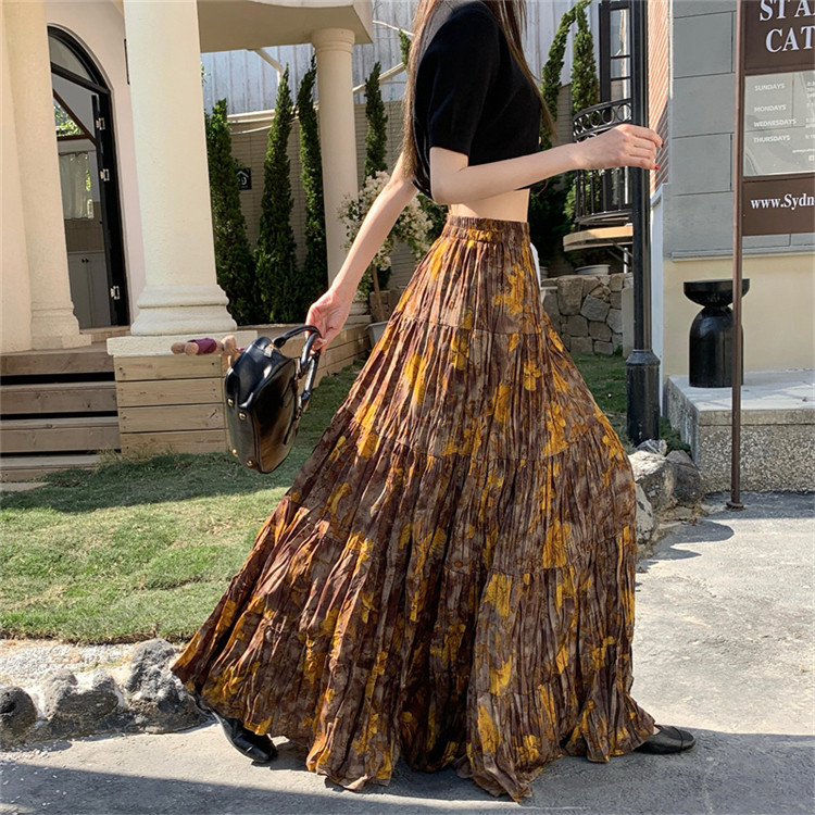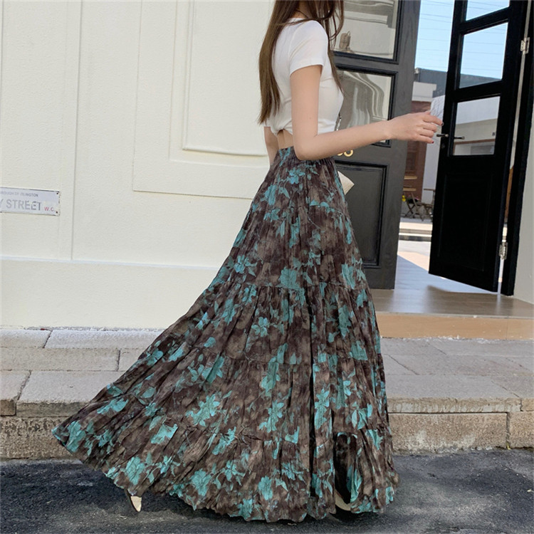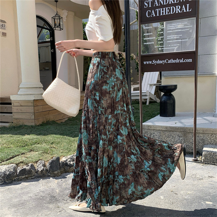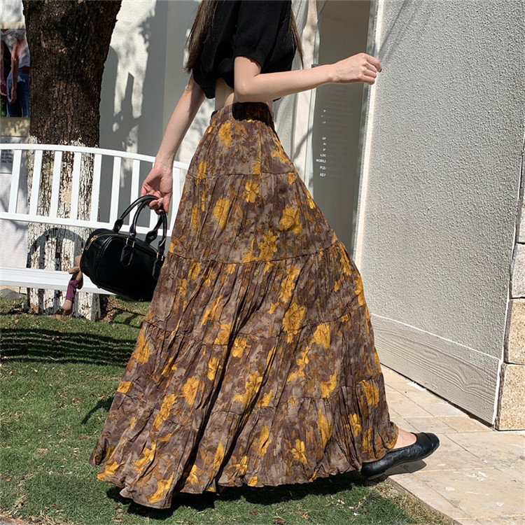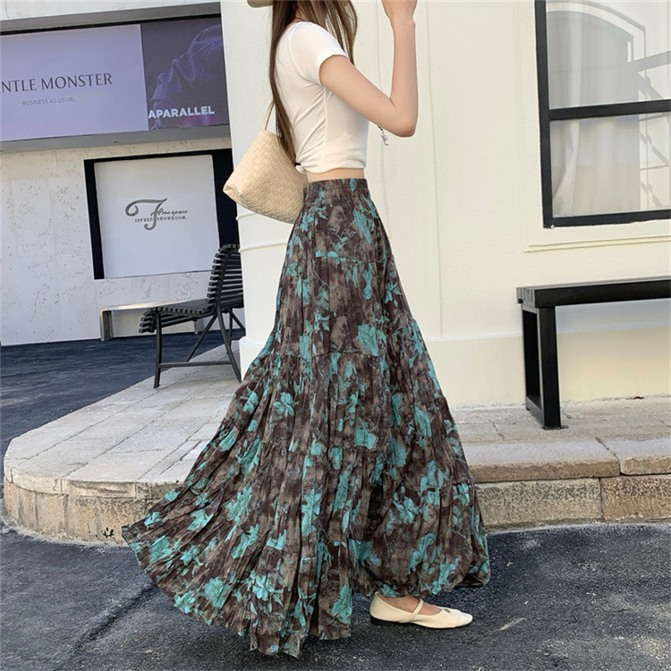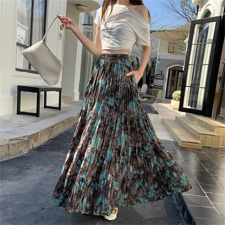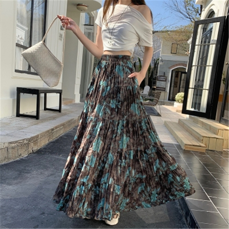 【ボトムス】プリーツ&花柄 スカート レディース ポケット付き Aライン フレア ミディ丈 ケーキスカート【SHシリーズ】