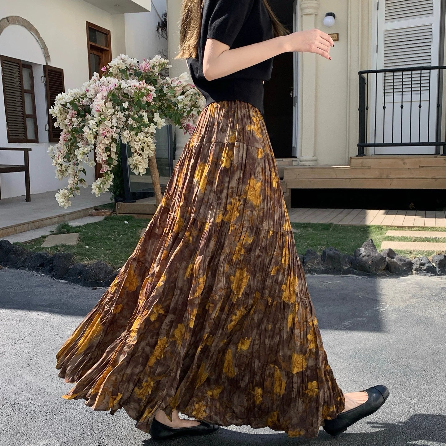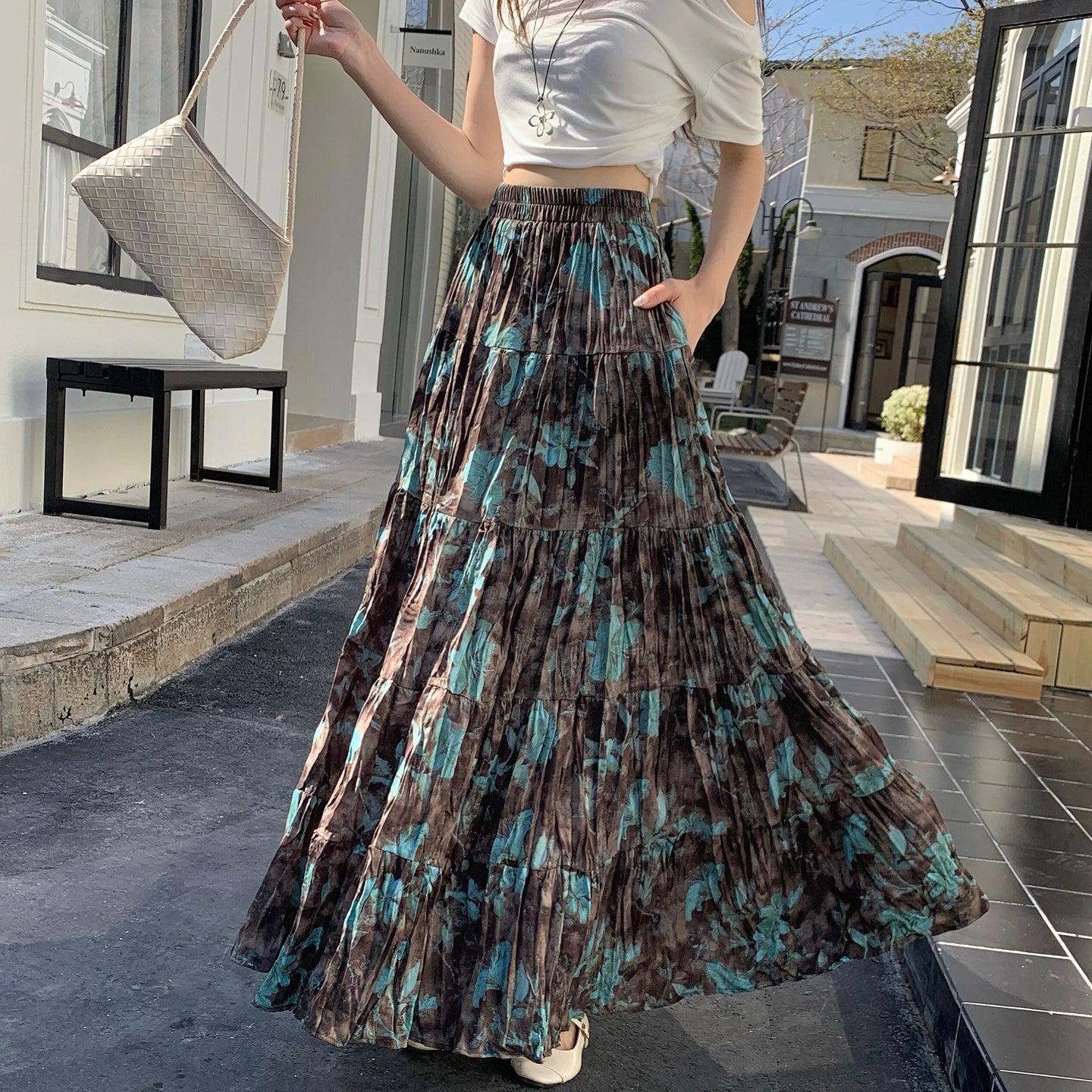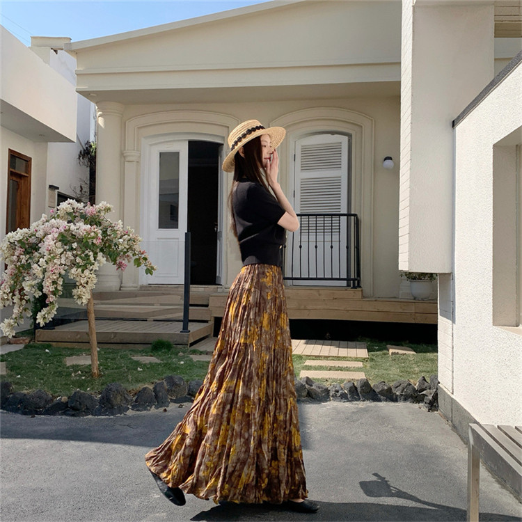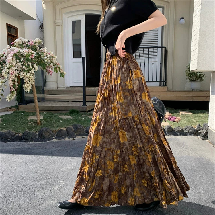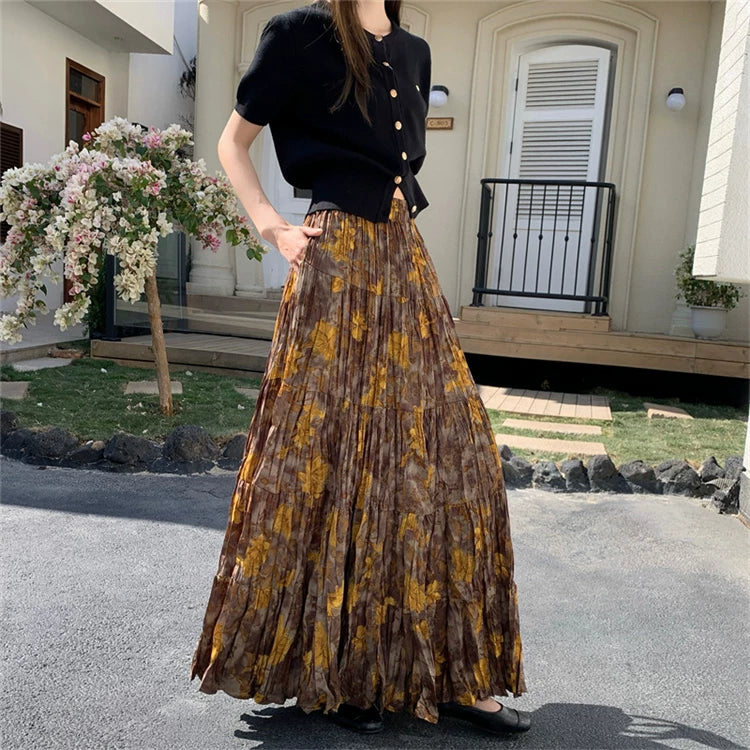 【ボトムス】プリーツ&花柄 スカート レディース ポケット付き Aライン フレア ミディ丈 ケーキスカート【SHシリーズ】