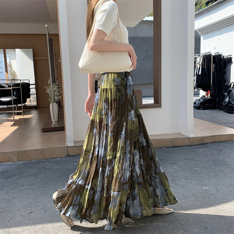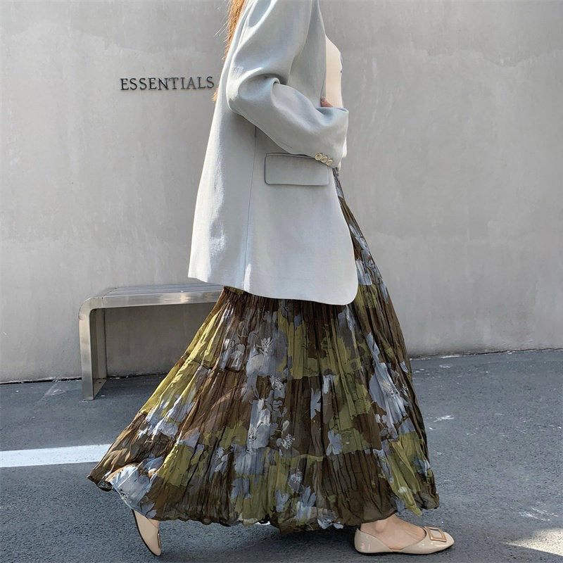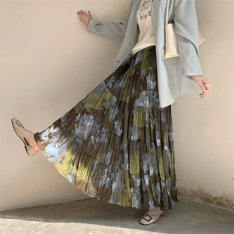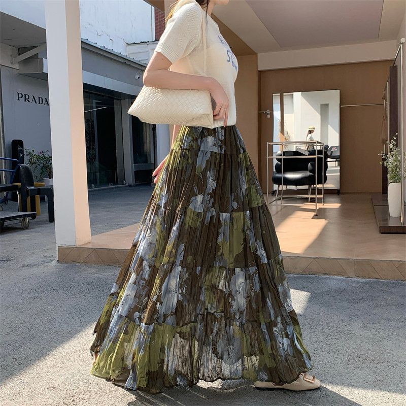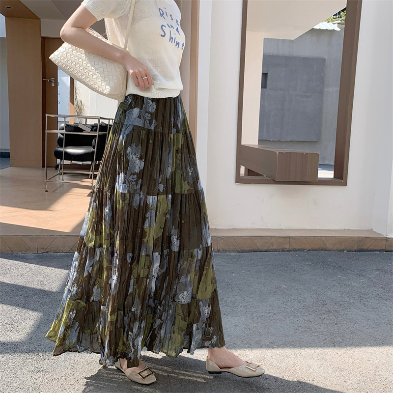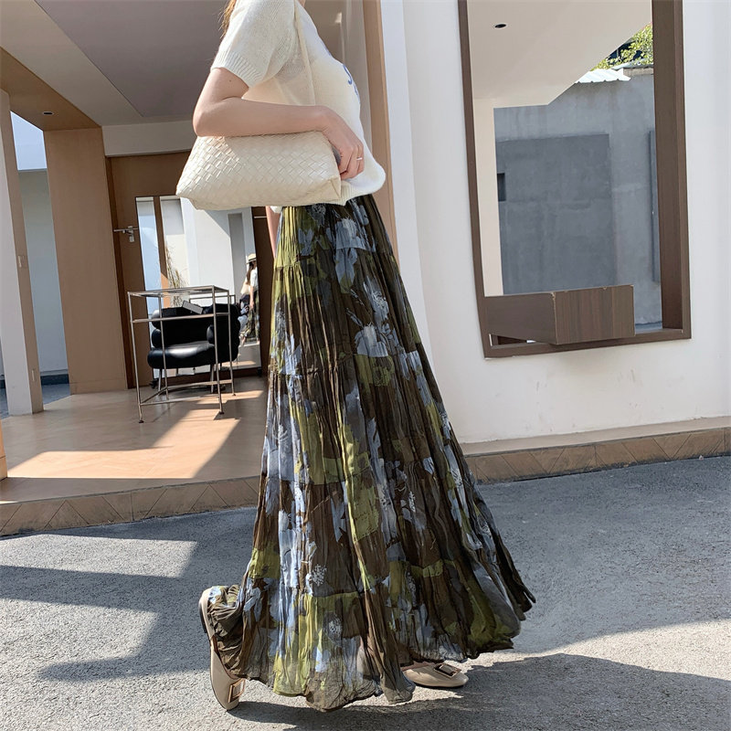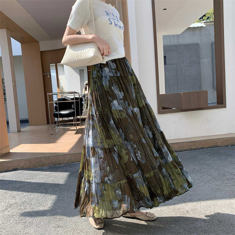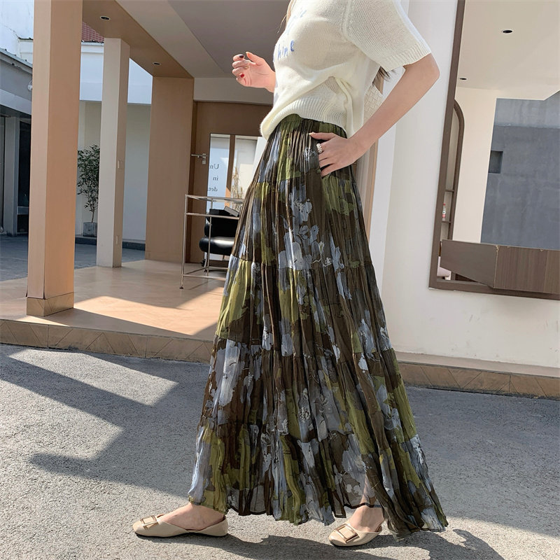【ボトムス】シフォン 春夏 花柄 フレアスカート レディース Aライン ヒップカバー すっきり見え ロング丈【SHシリーズ】