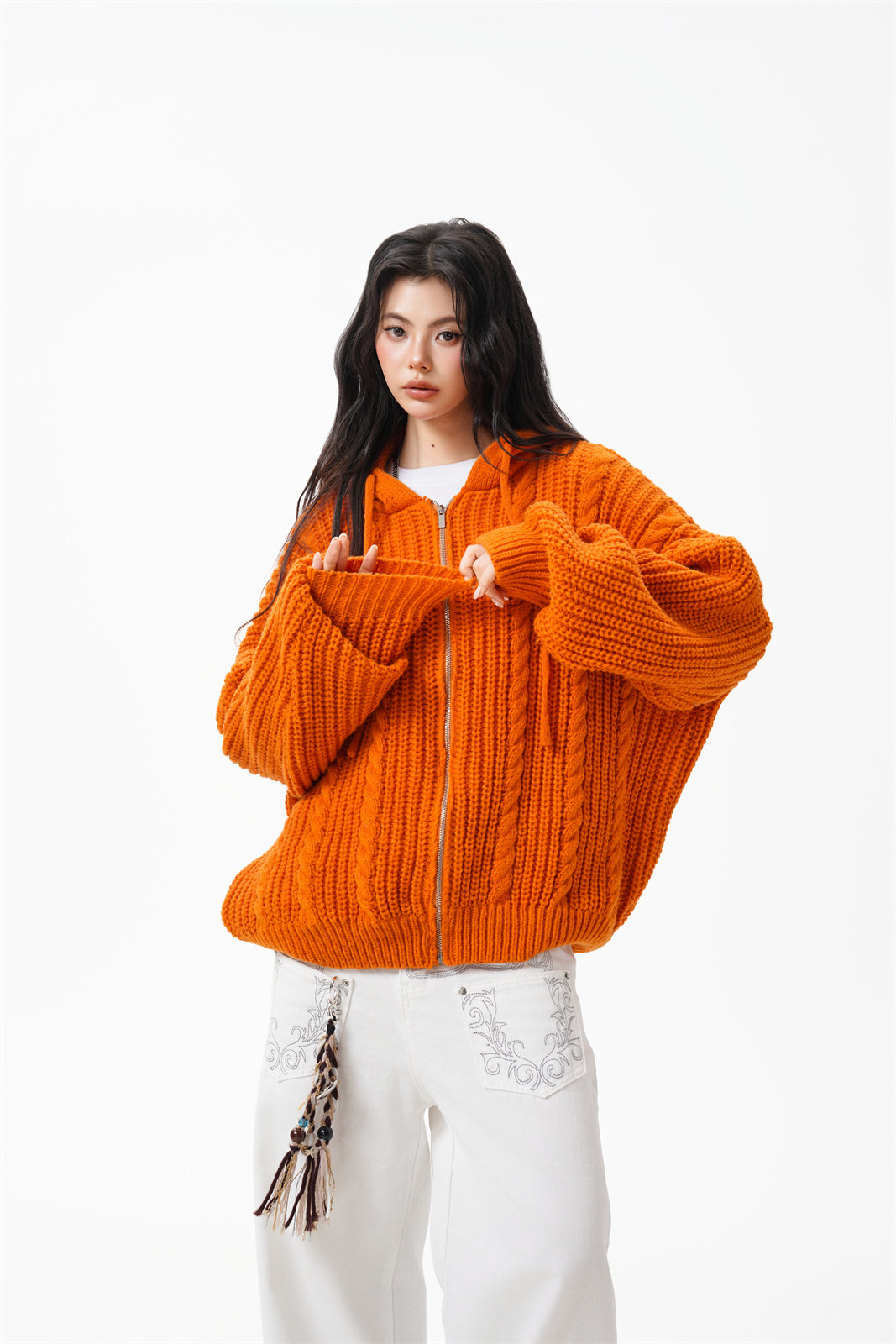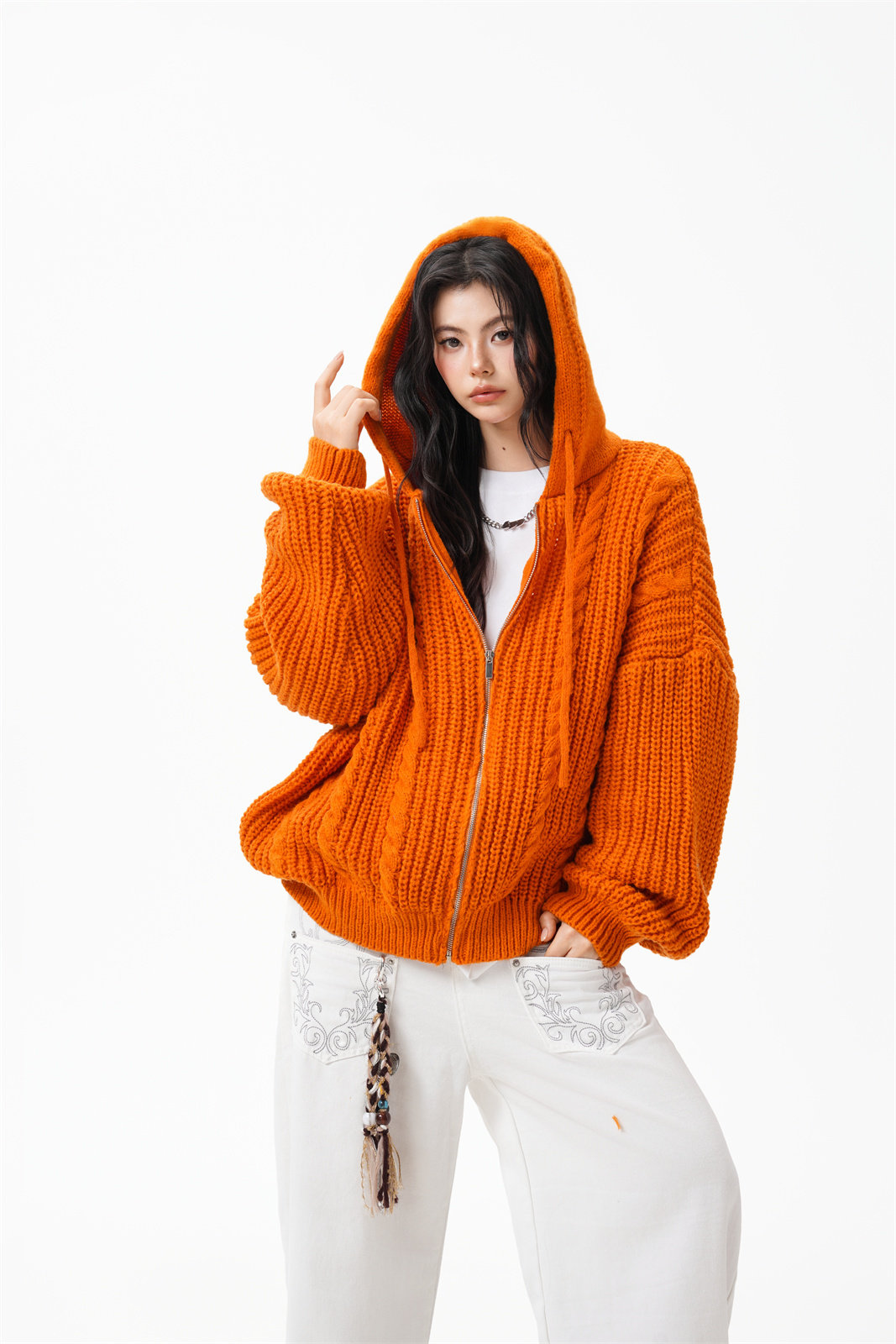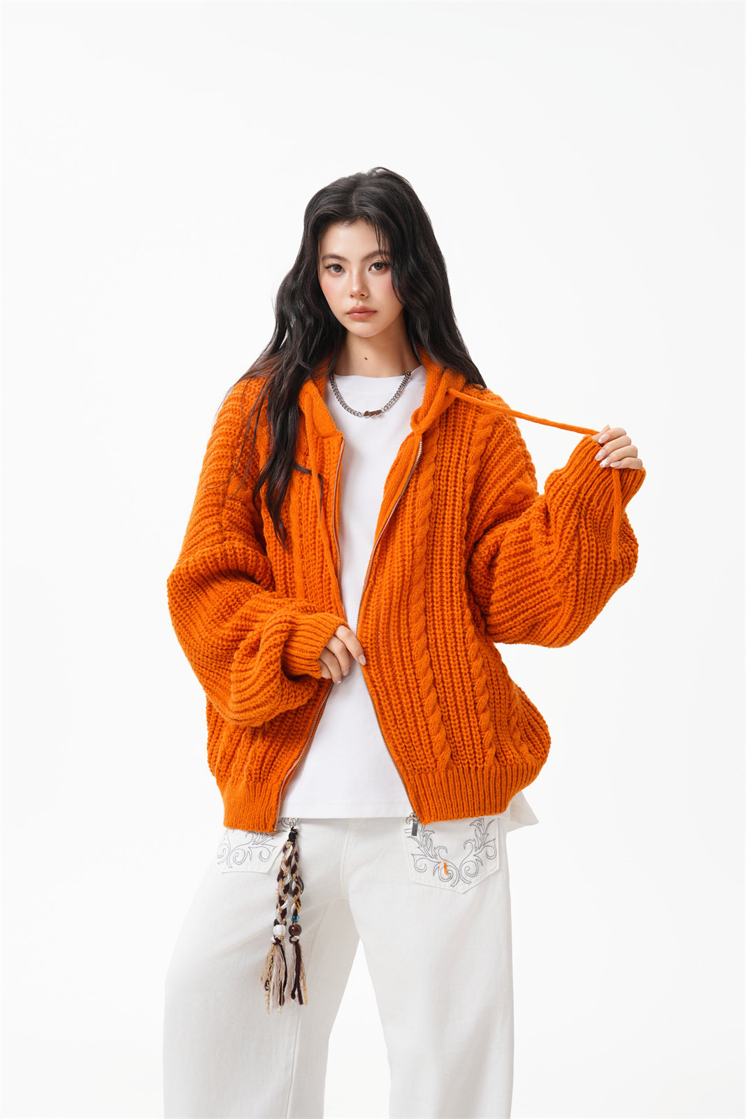 【トップス】韓国風 リラックス感 ニットカーディガン ユニセックス 秋向け フード付き プルオーバー【FCシリーズ】