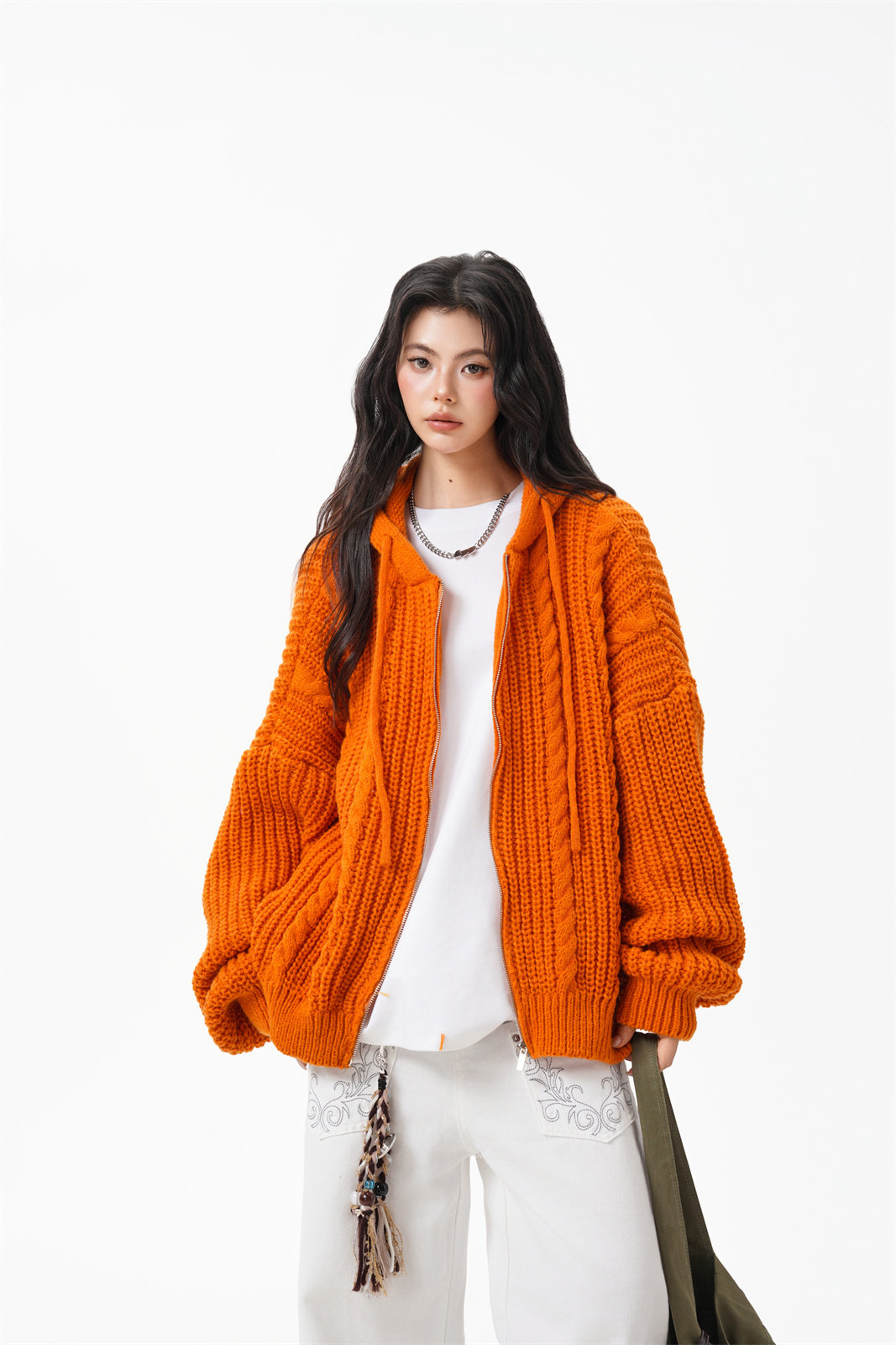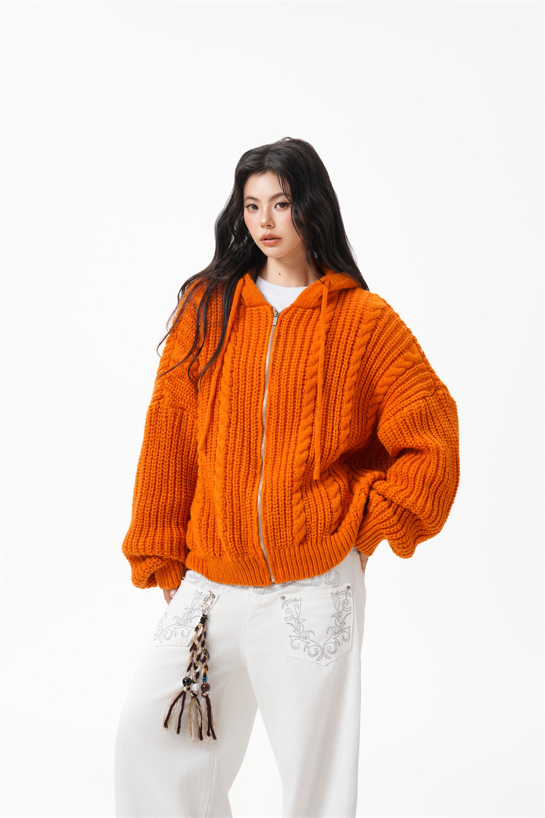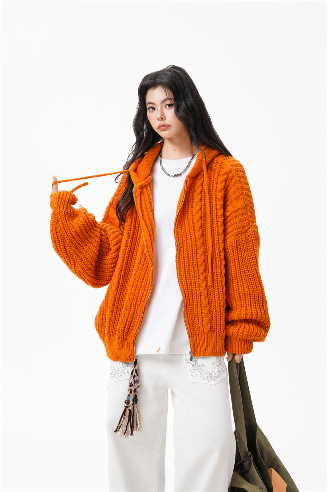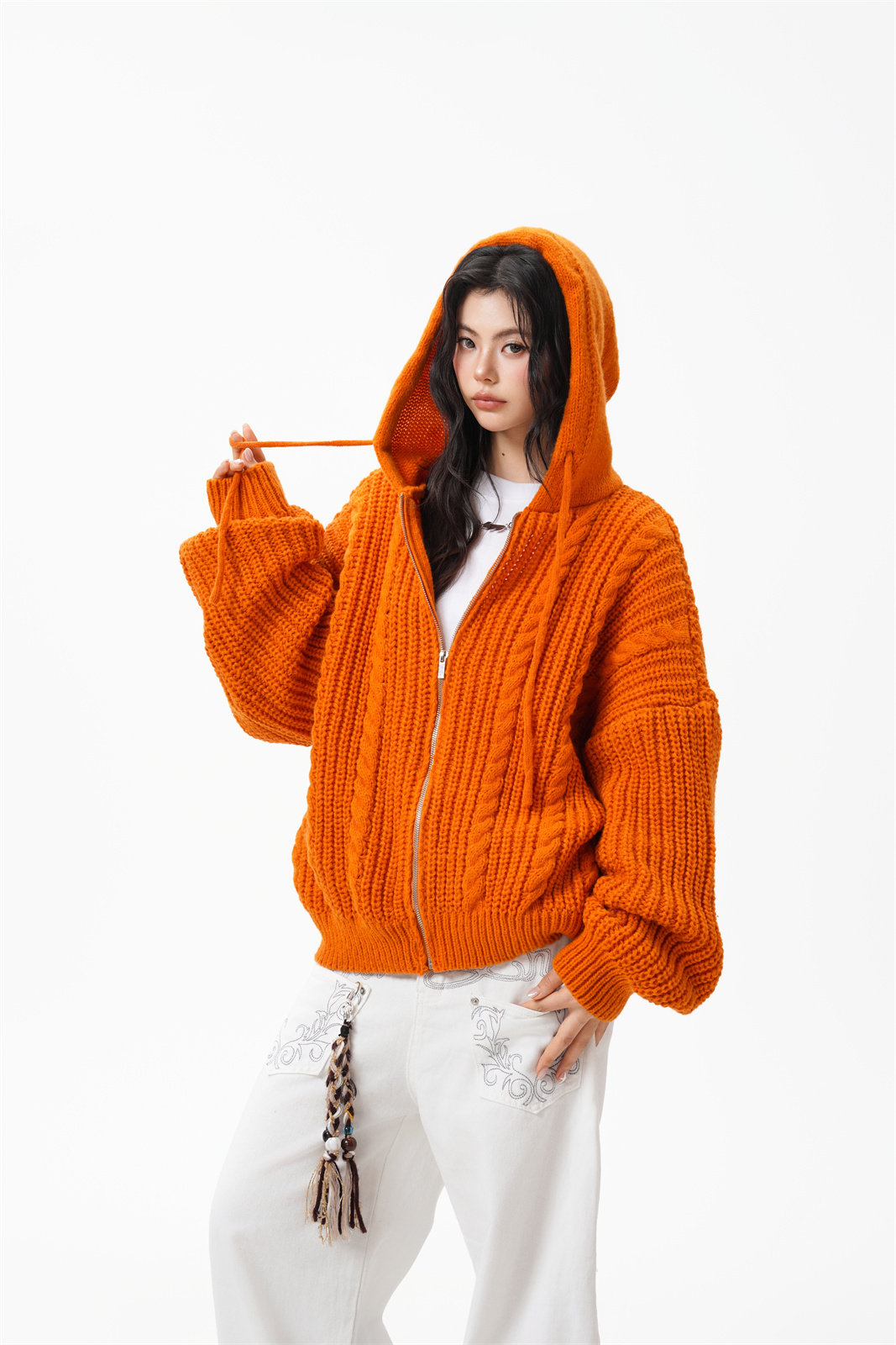 【商品名】【トップス】韓国風 リラックス感 ニットカーディガン ユニセックス 秋向け フード付き プルオーバー【FCシリーズ】