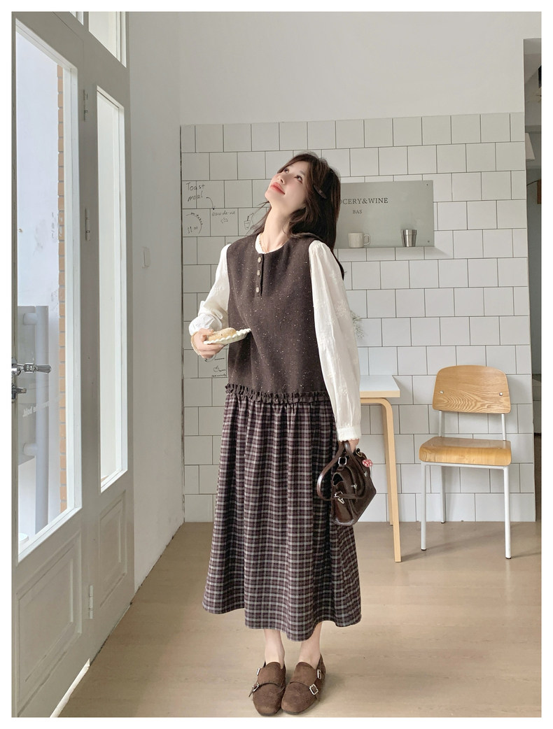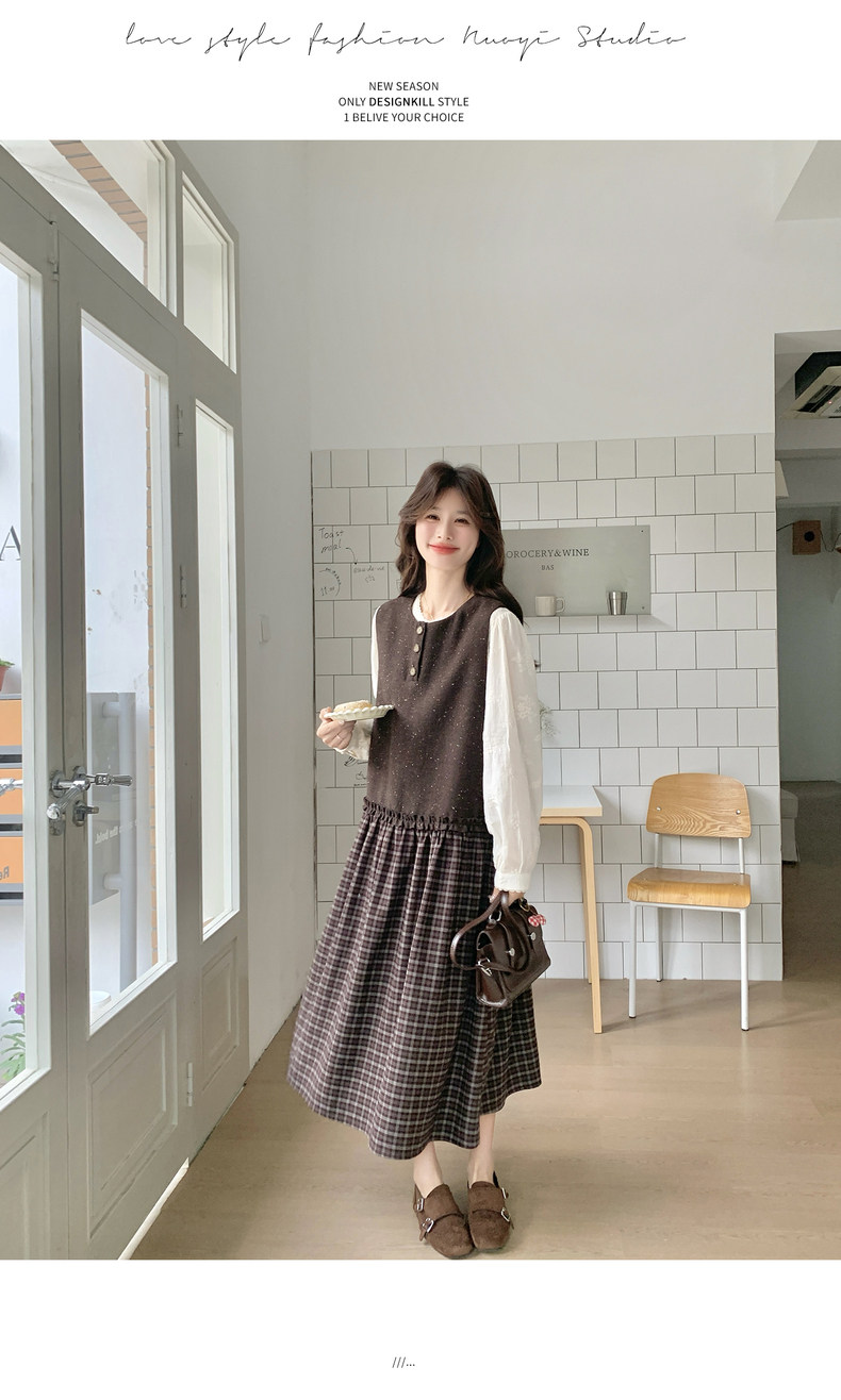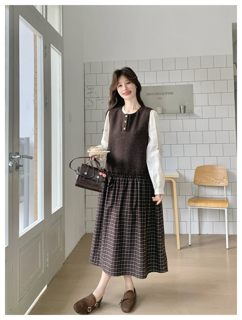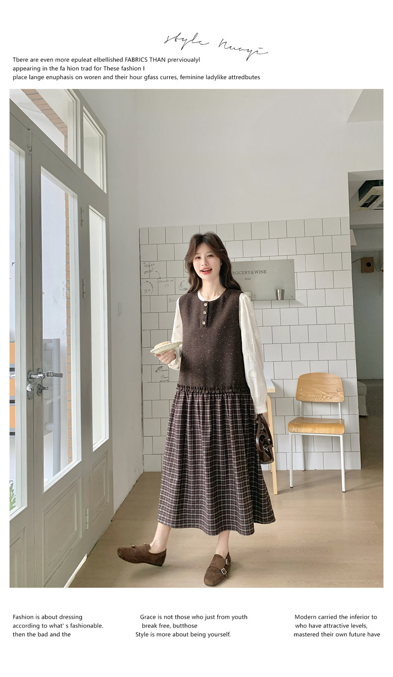 【60%OFF⭐️早い者勝ち】【ワンピース】春秋ラウンドネック 長袖 ニット パッチワーク ロング 長袖ワンピース