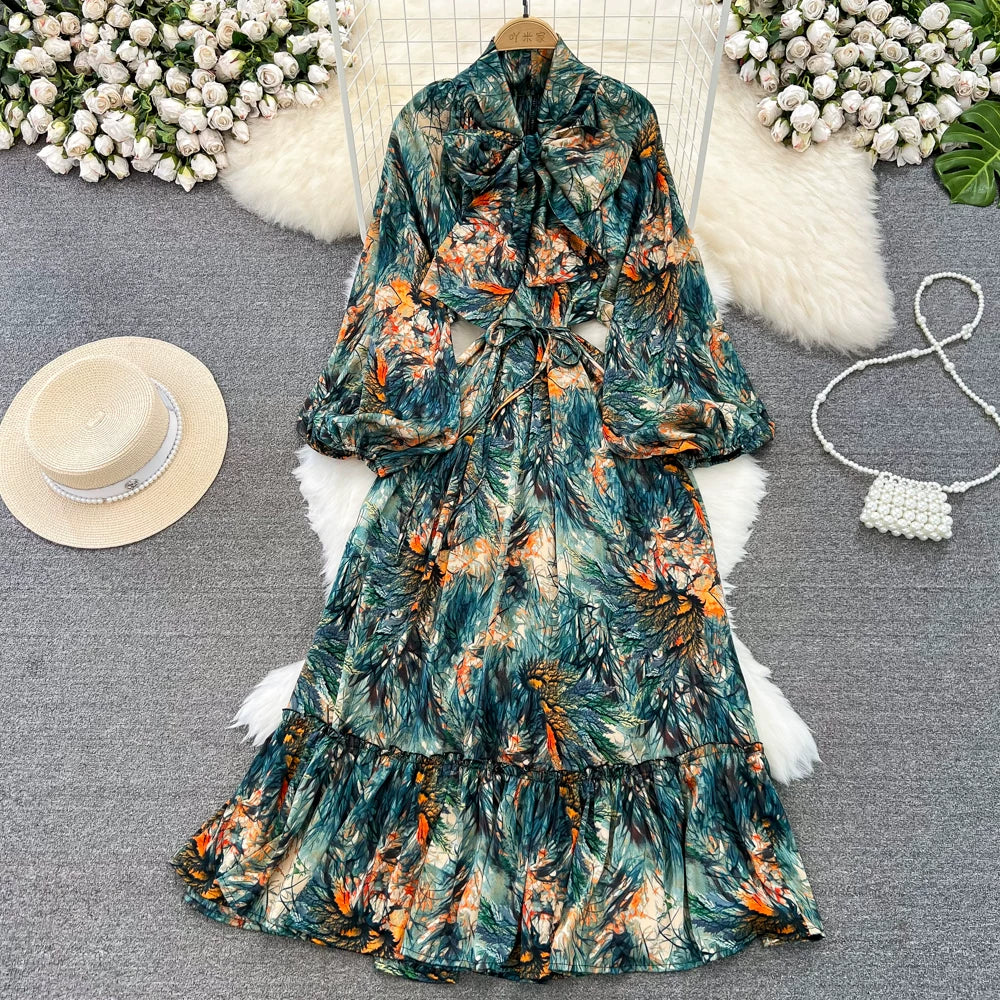 【60%OFF⭐️先行スタート!】💓大好評💓【ワンピース】春秋 韓国風 chic エレガント 花柄 フレア 長袖ワンピース【SHシリーズ】