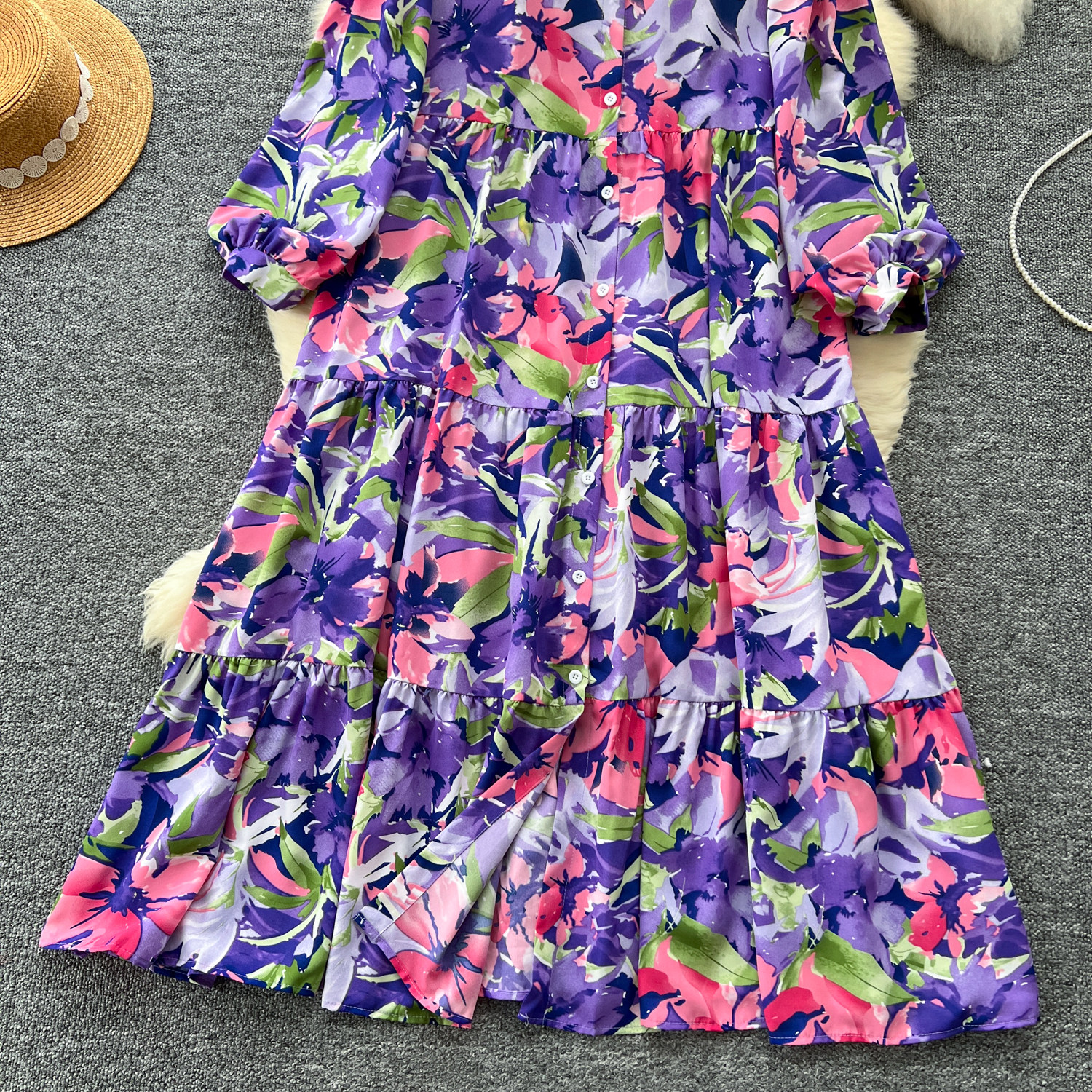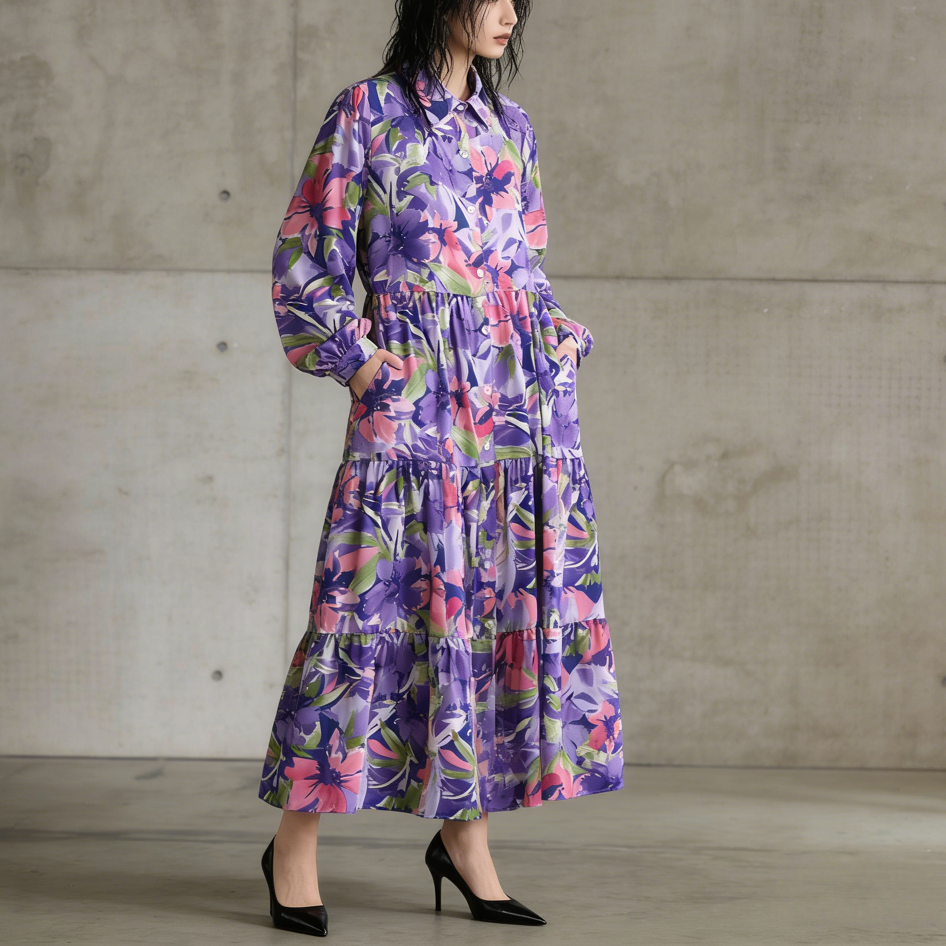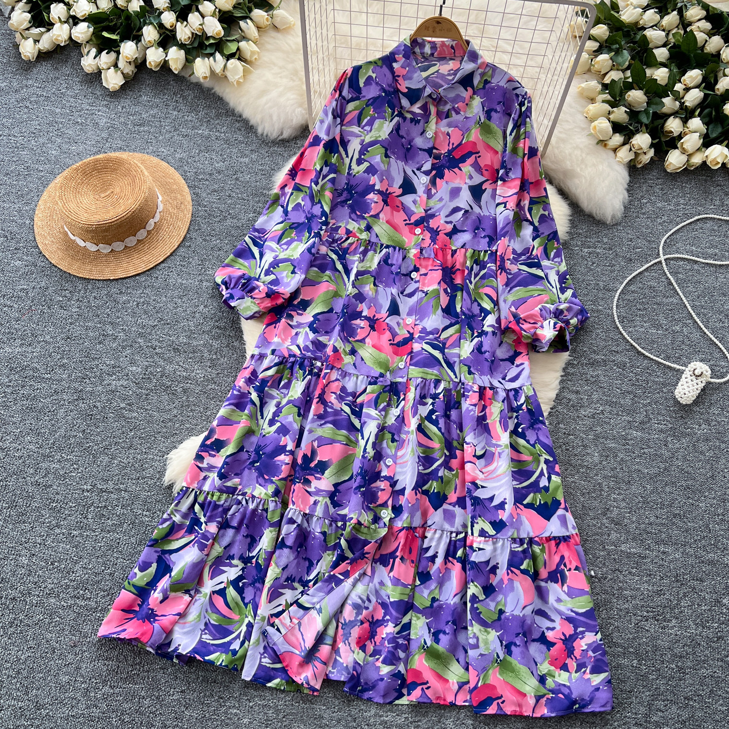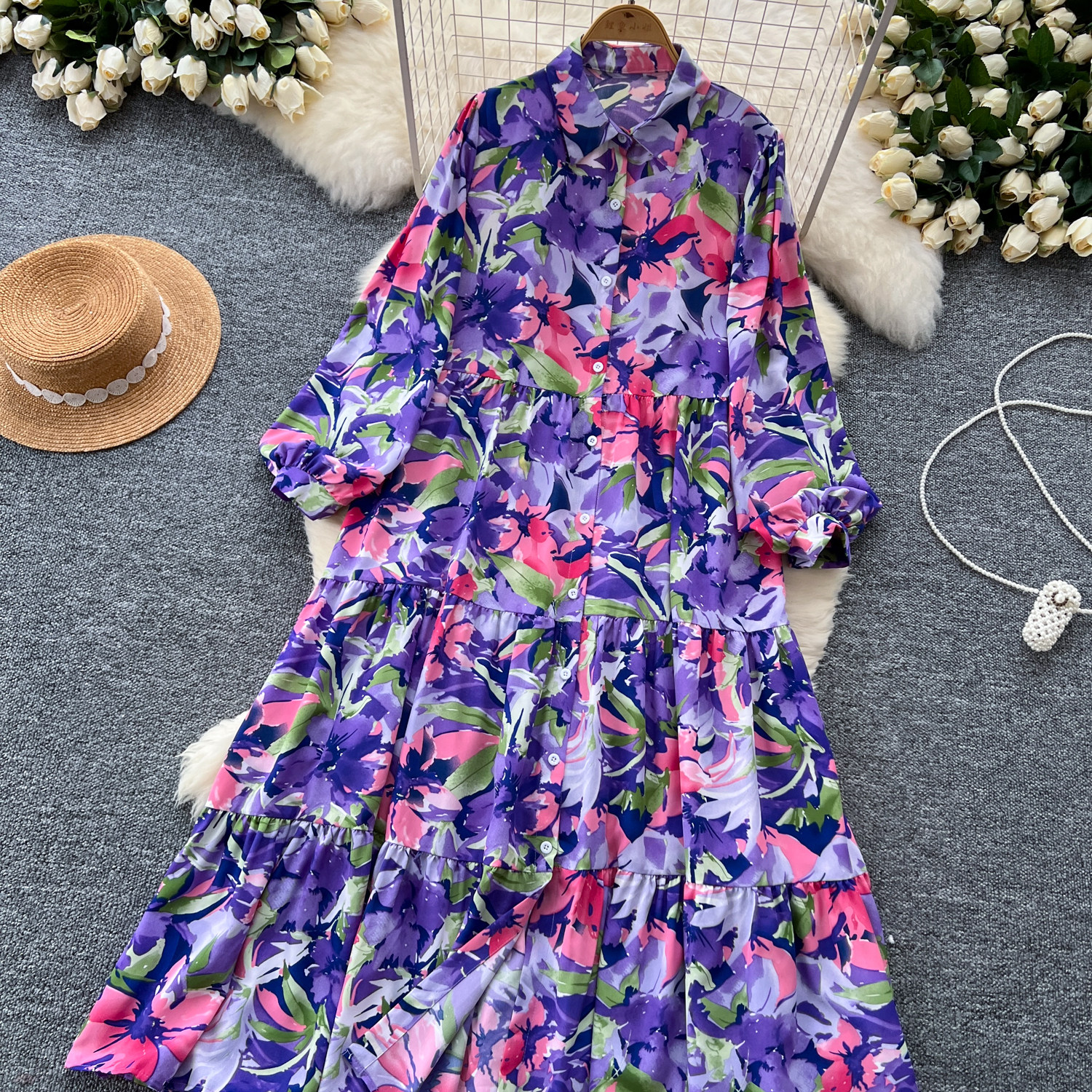 【60%OFF⭐️早い者勝ち】【ワンピース】プリント シングルボタン シャツ ロング丈 長袖 ワンピース 【SHシリーズ】