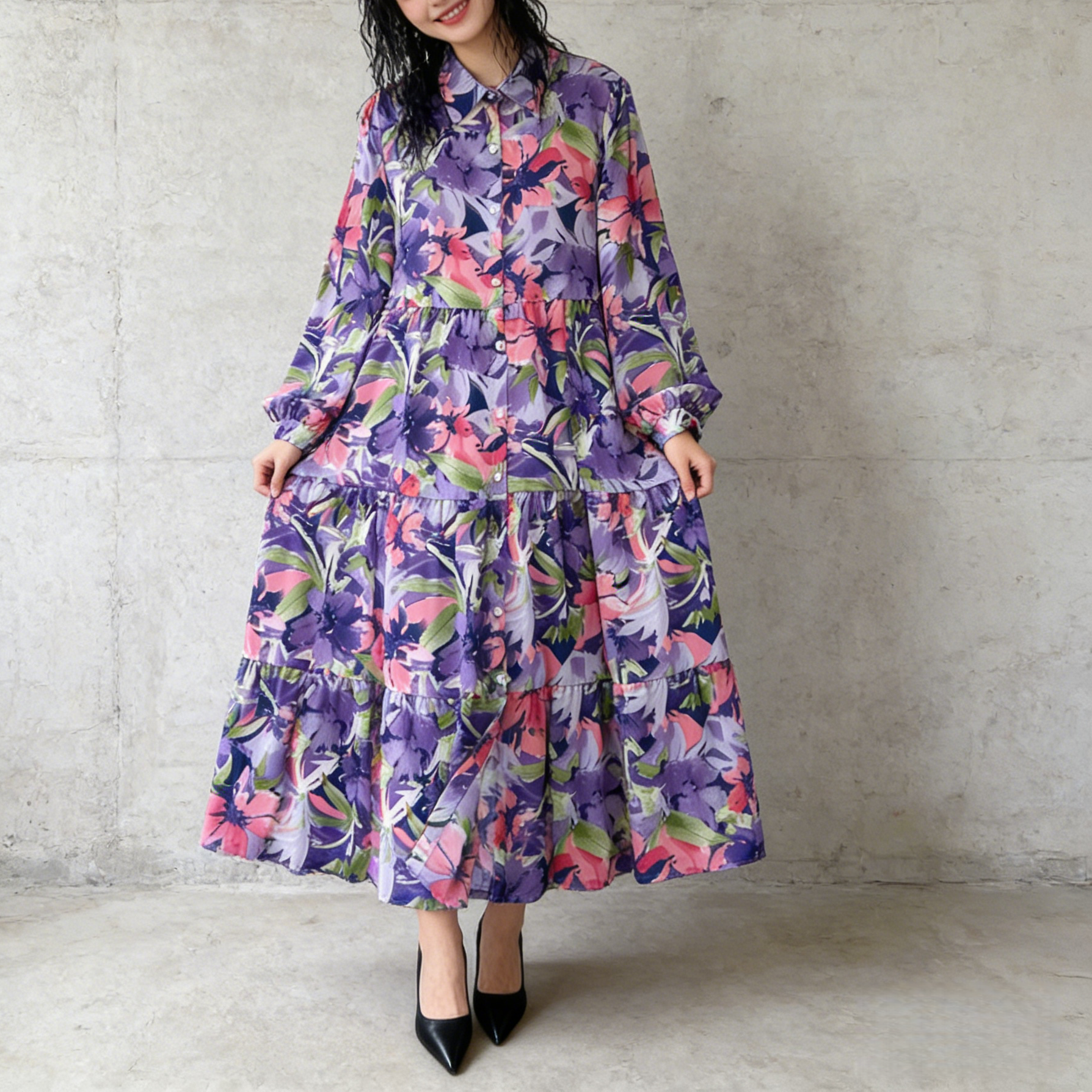 【60%OFF⭐️先行スタート!】🔥大人気商品🔥【ワンピース】春秋冬 花柄 大きいサイズ ゆるリラックス 長袖 ワンピース【SHシリーズ】