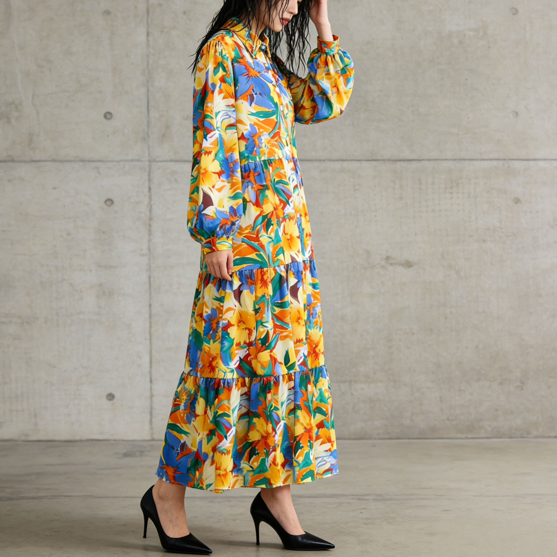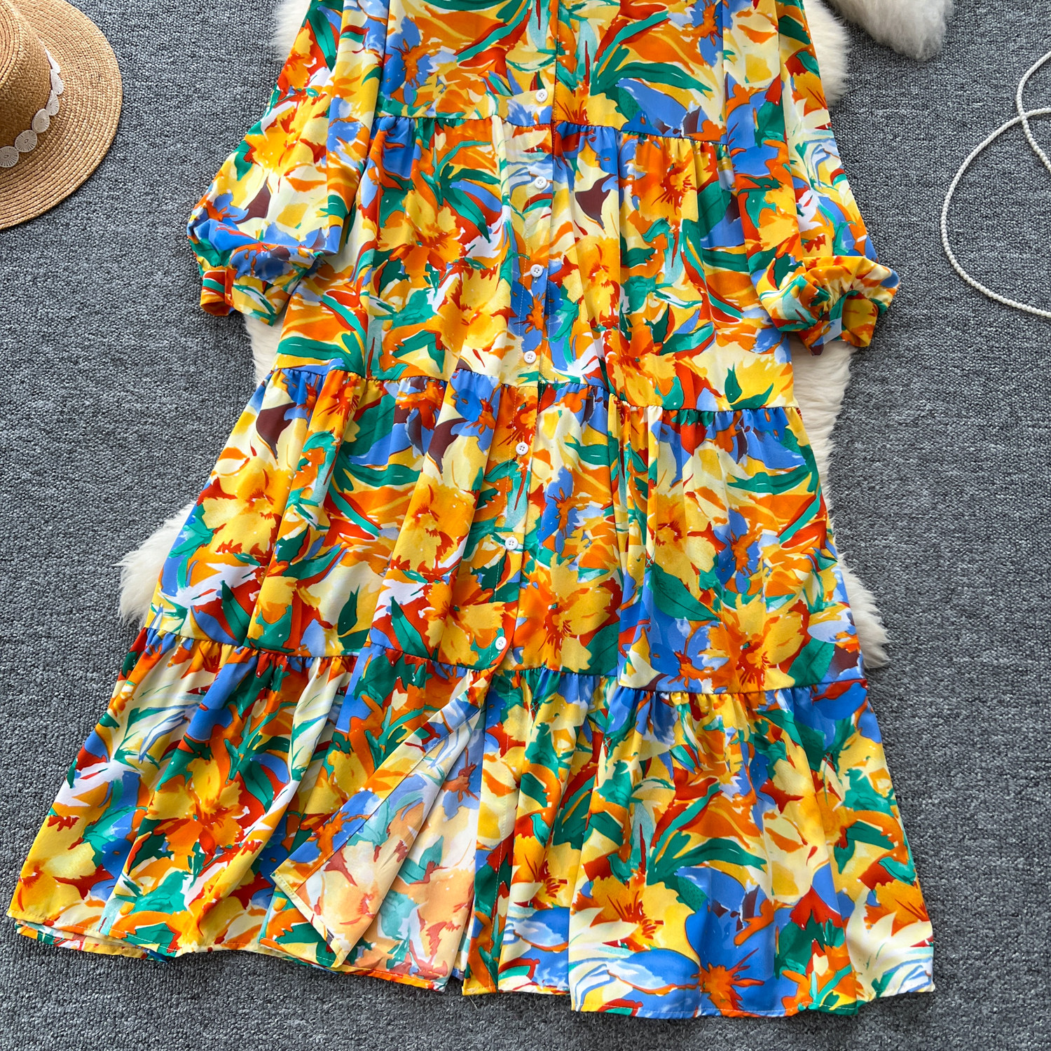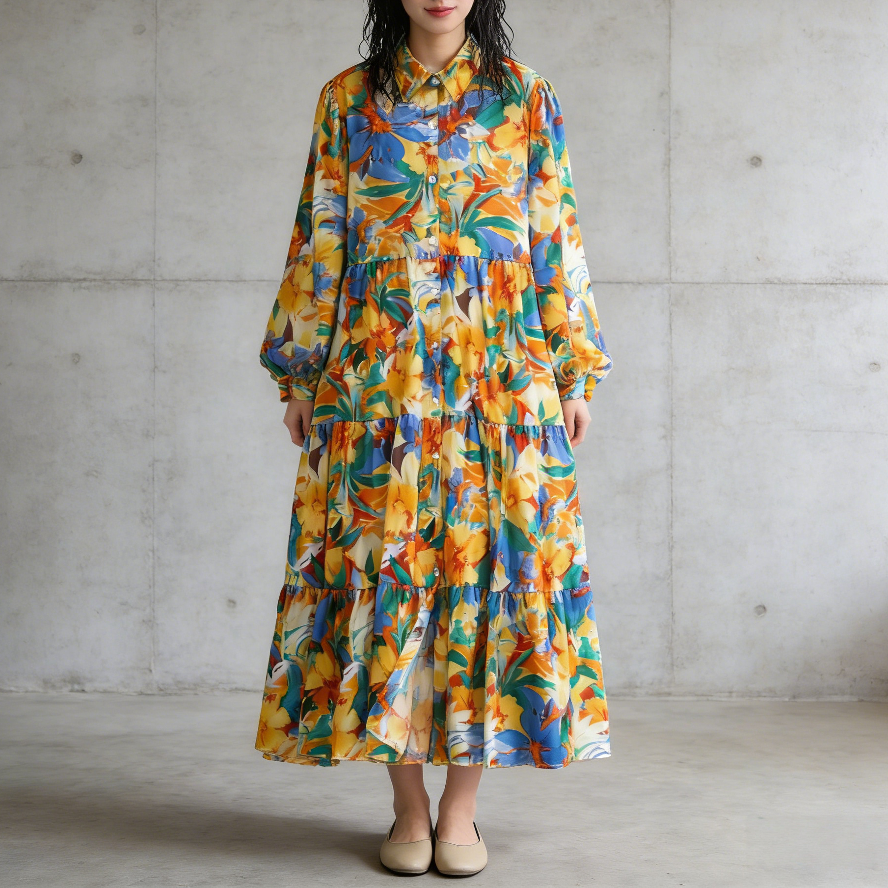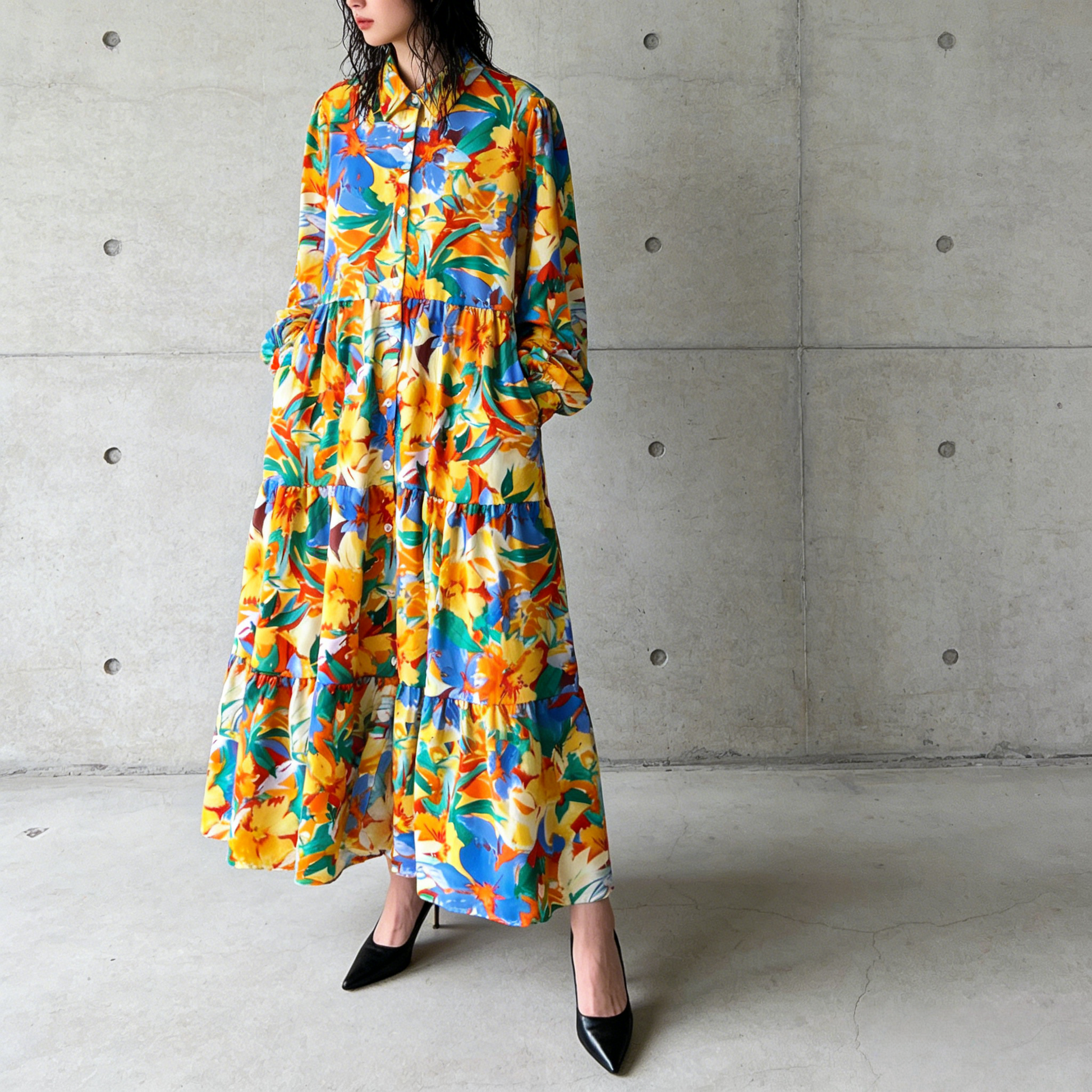 【60%OFF⭐️早い者勝ち】【ワンピース】プリント シングルボタン シャツ ロング丈 長袖 ワンピース 【SHシリーズ】