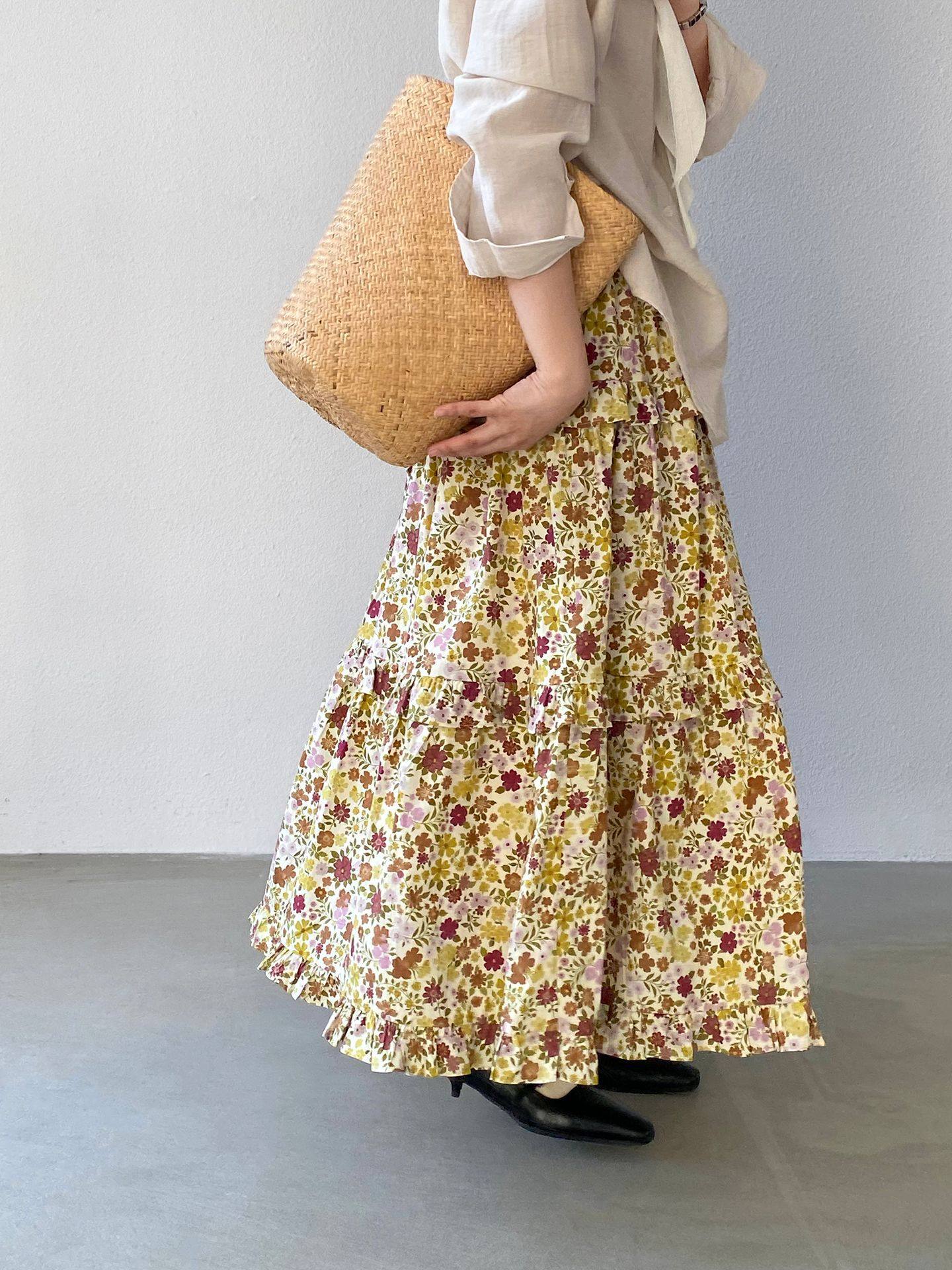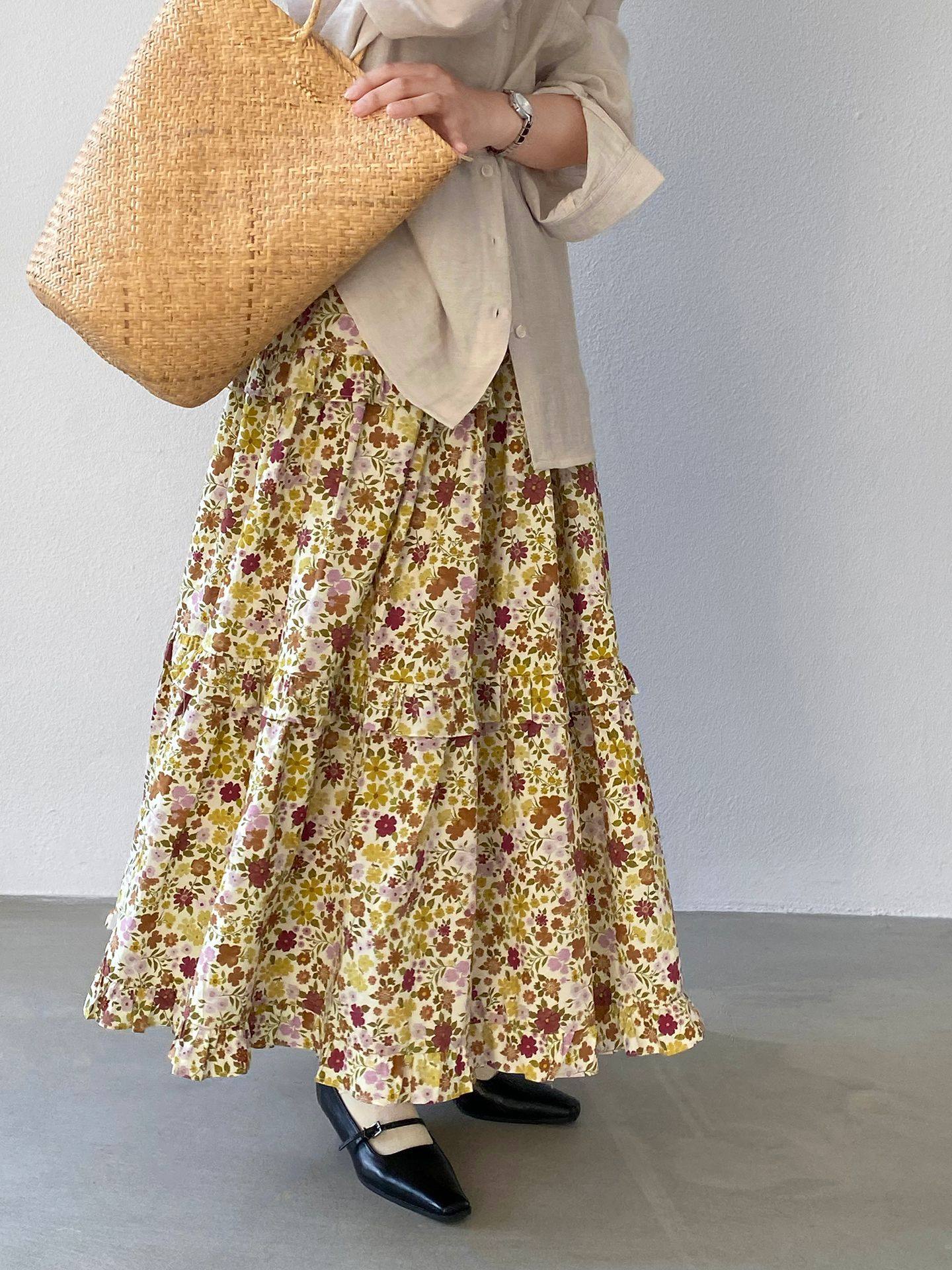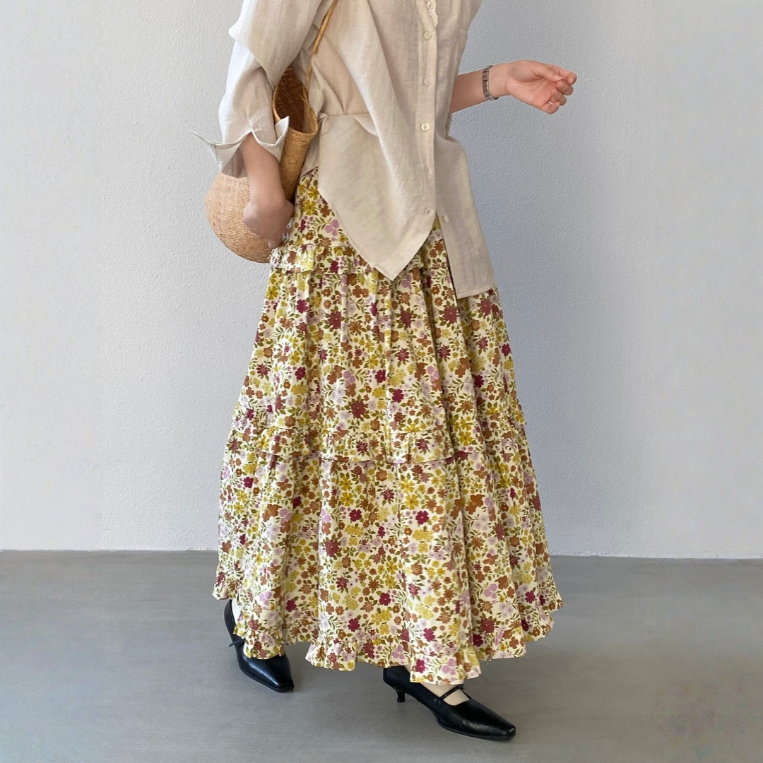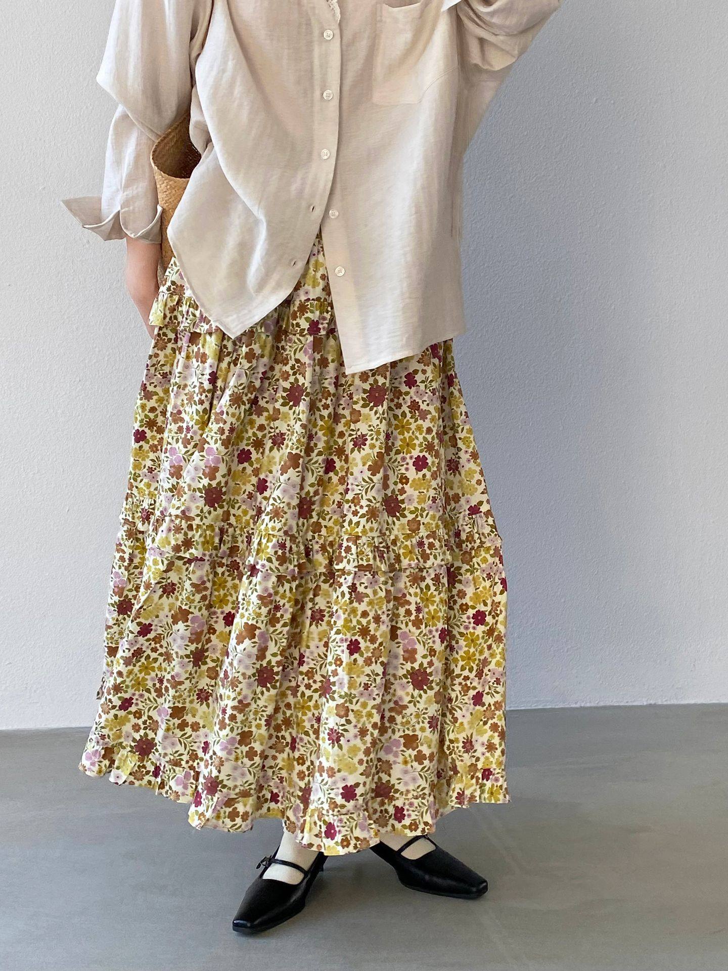 【ボトムス】小花柄 ハイウエスト Aライン スカート 【JZシリーズ】