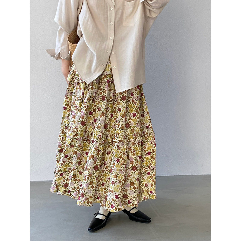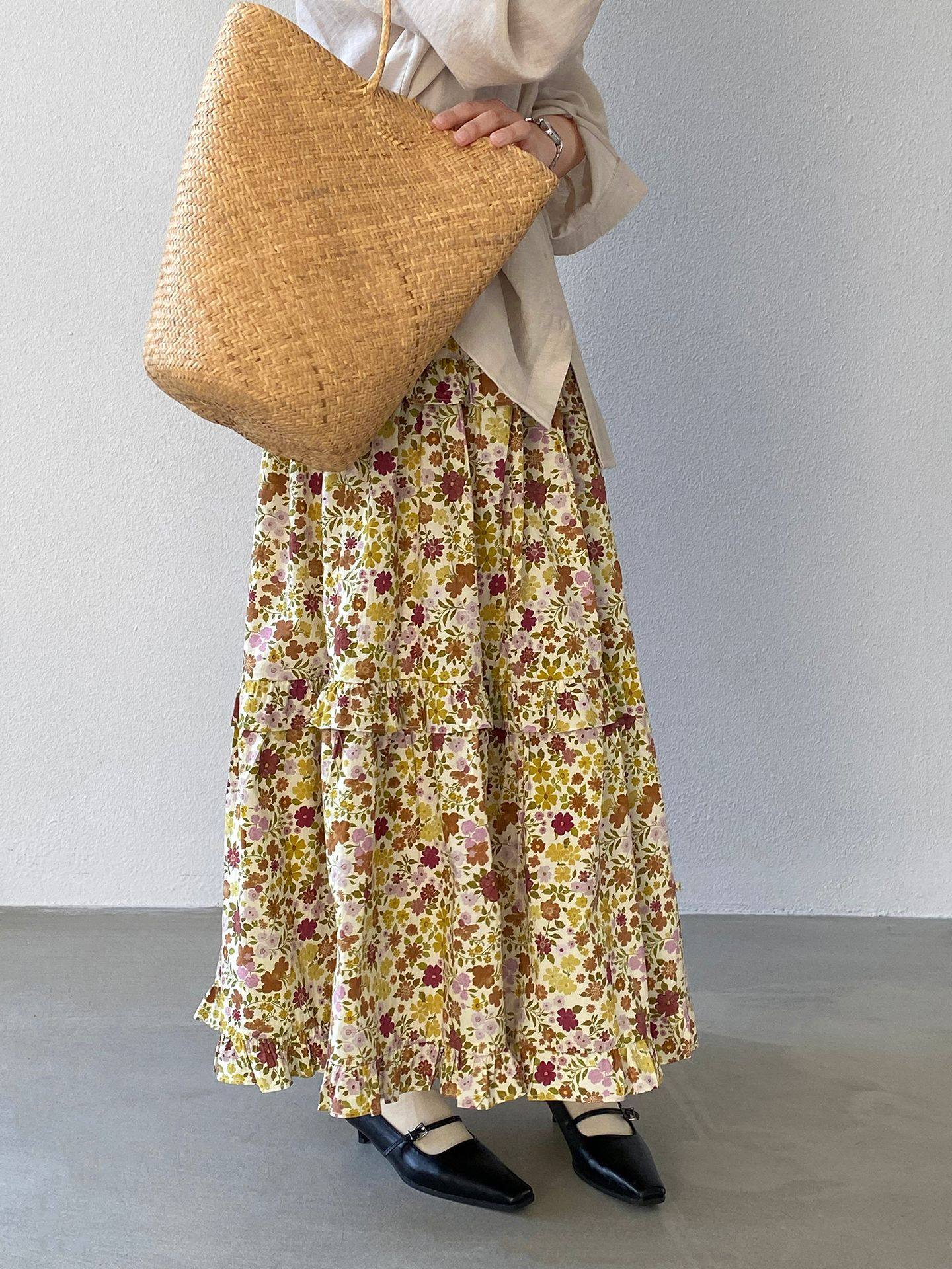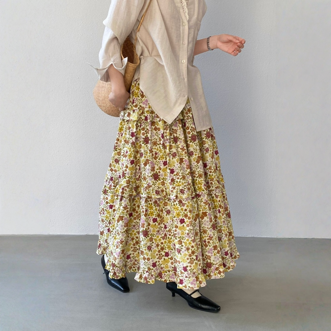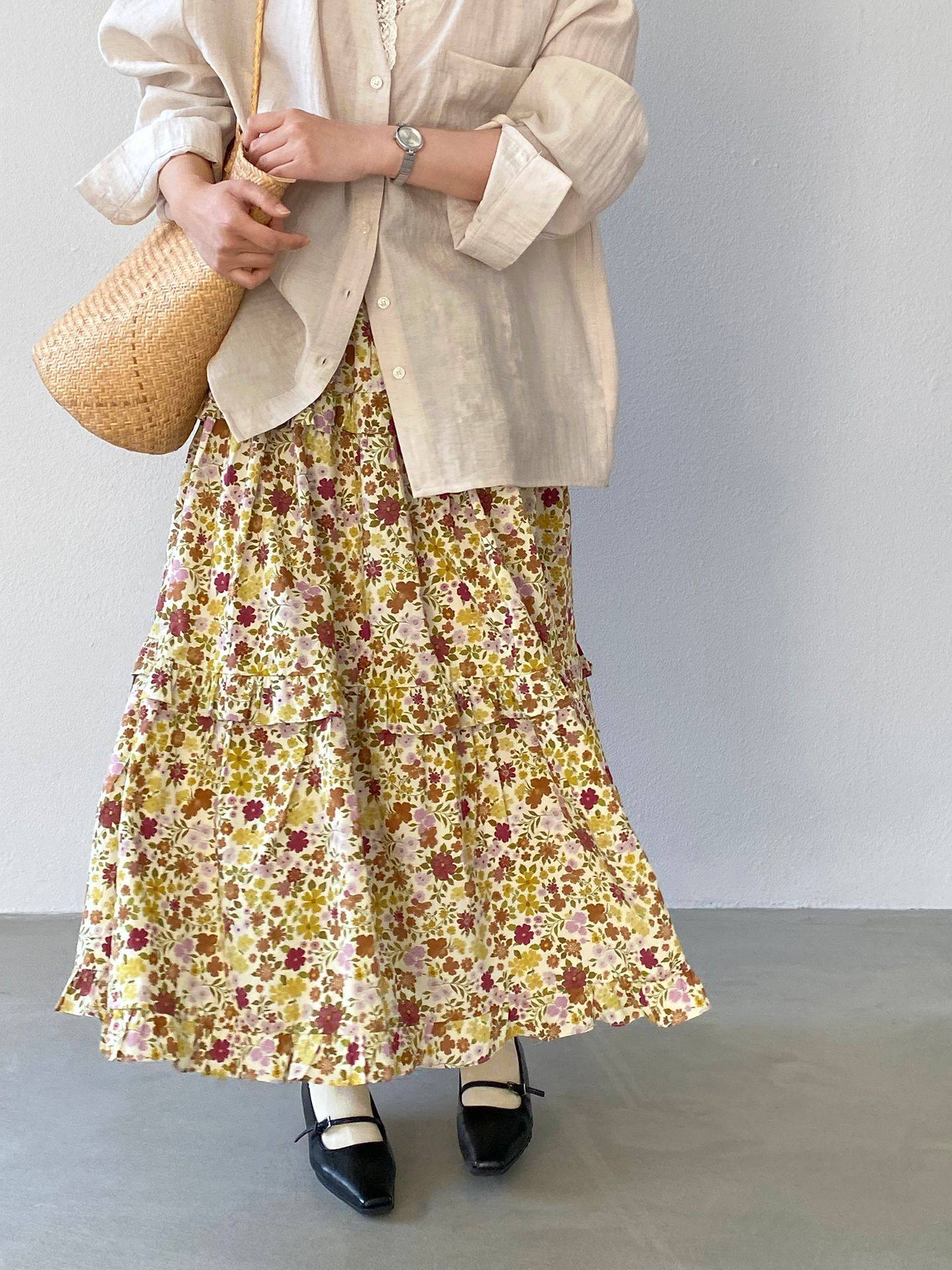 【ボトムス】小花柄 ハイウエスト Aライン スカート 【JZシリーズ】