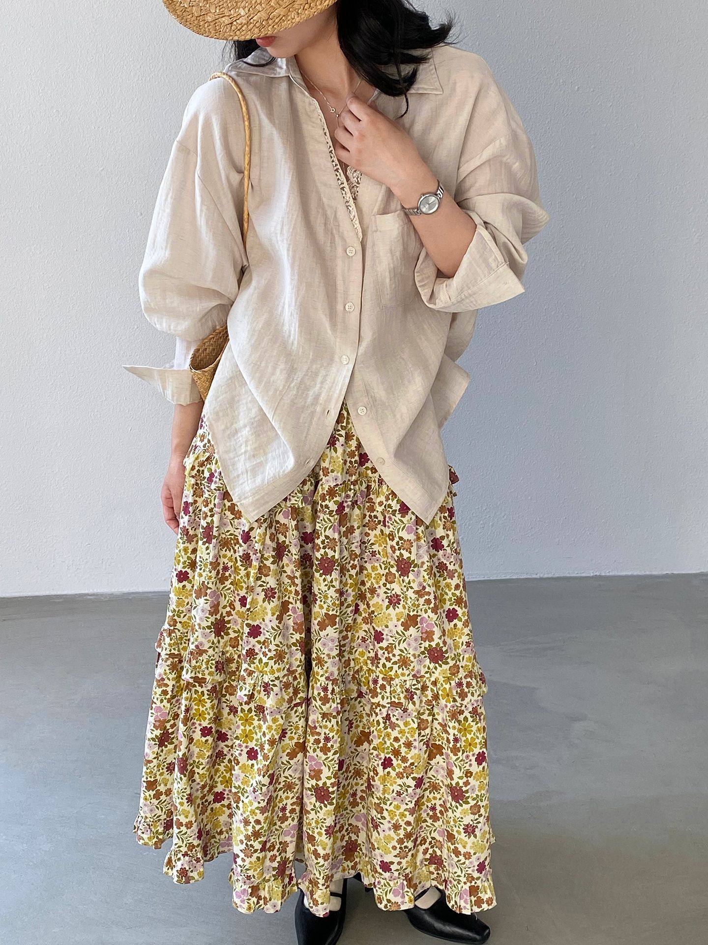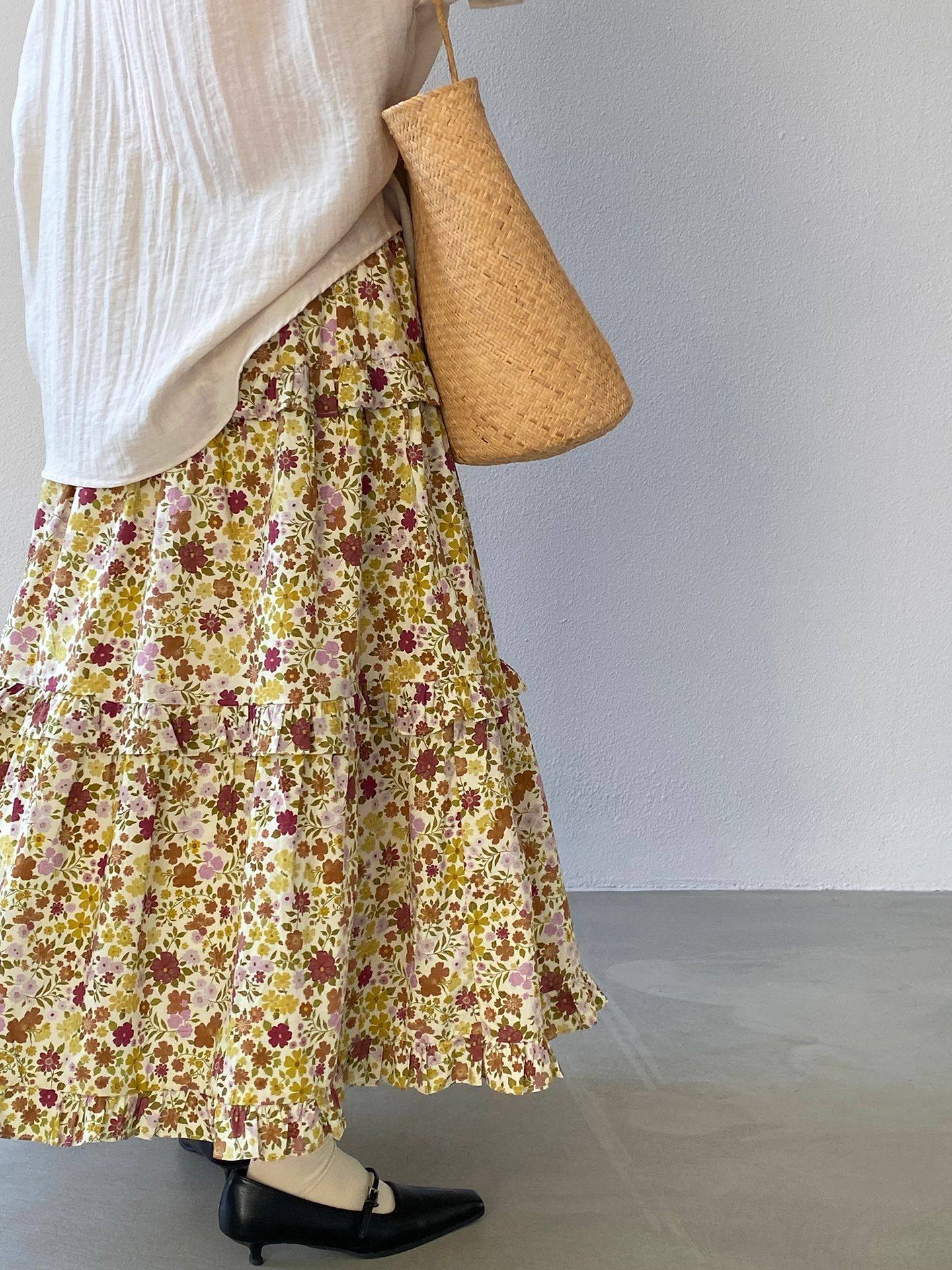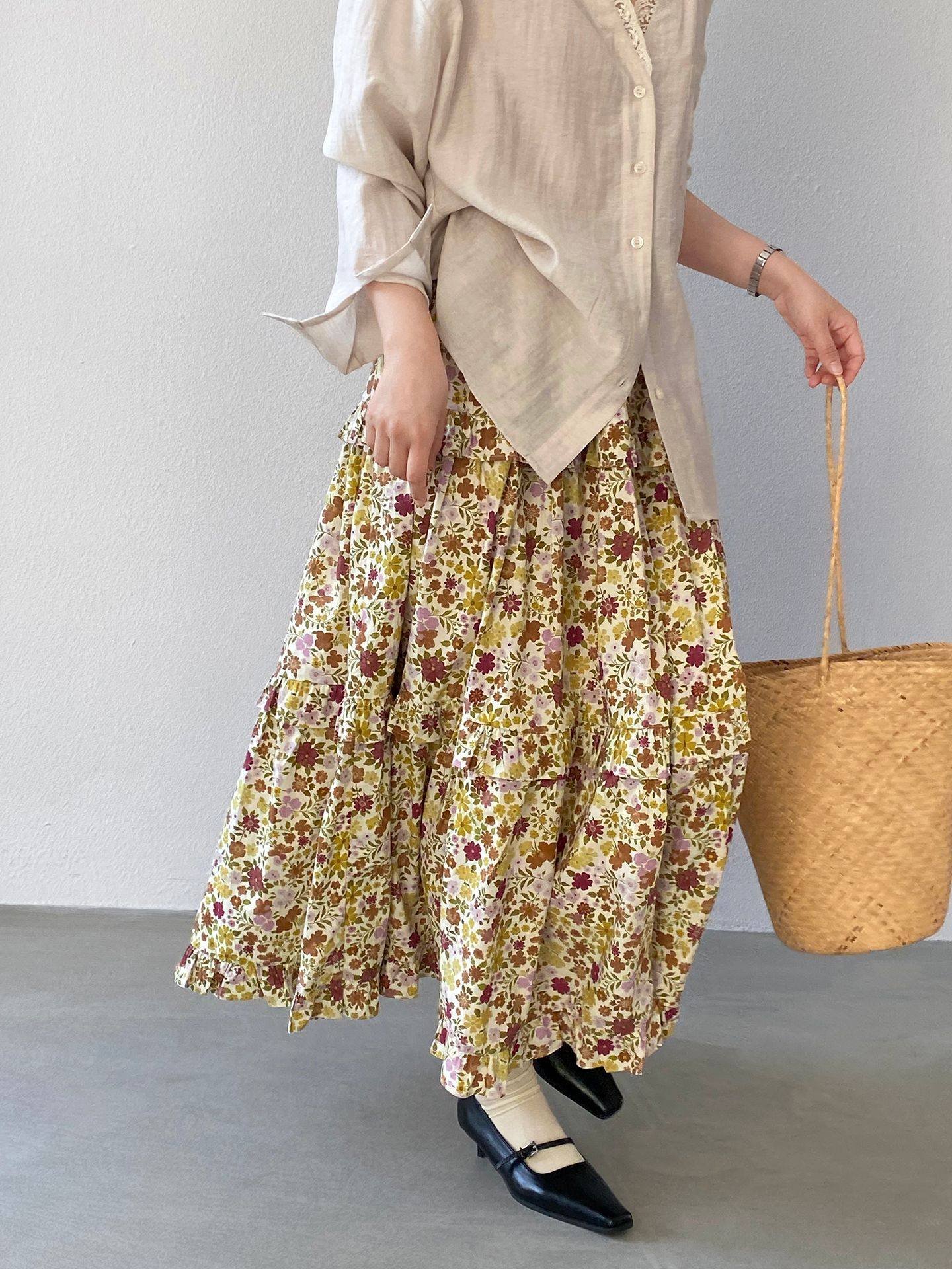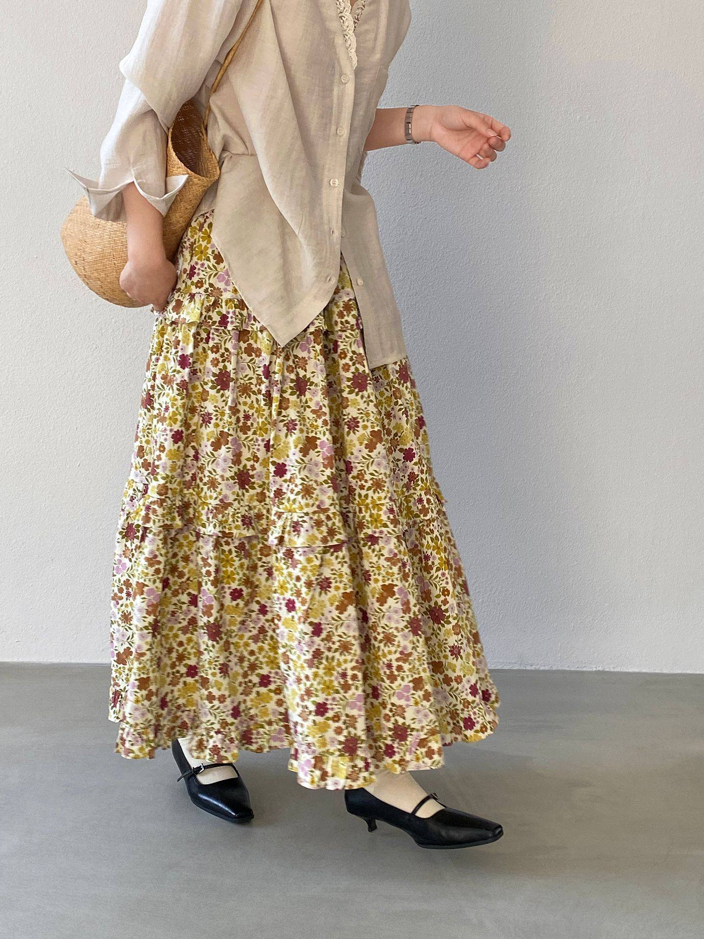 【ボトムス】小花柄 ハイウエスト Aライン スカート 【JZシリーズ】
