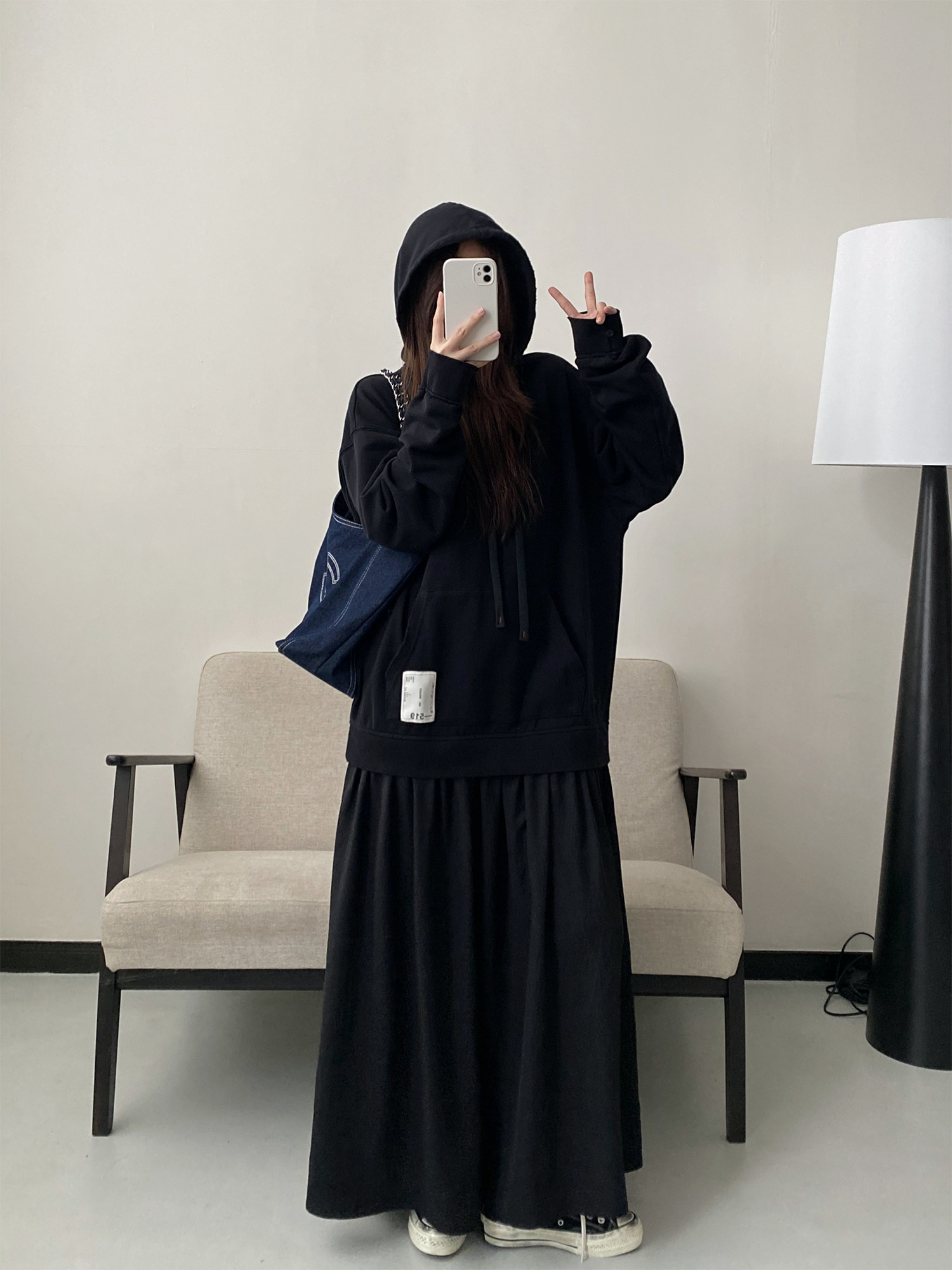 【トップス】春秋冬 Oversize レトロ 刺繍 ゆったり フード付き デニム パーカー【FCシリーズ】【15~20日発送】