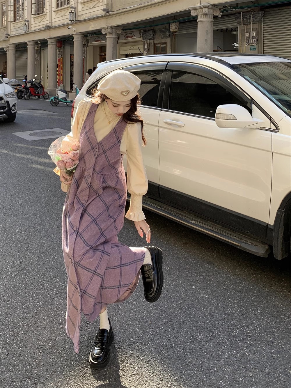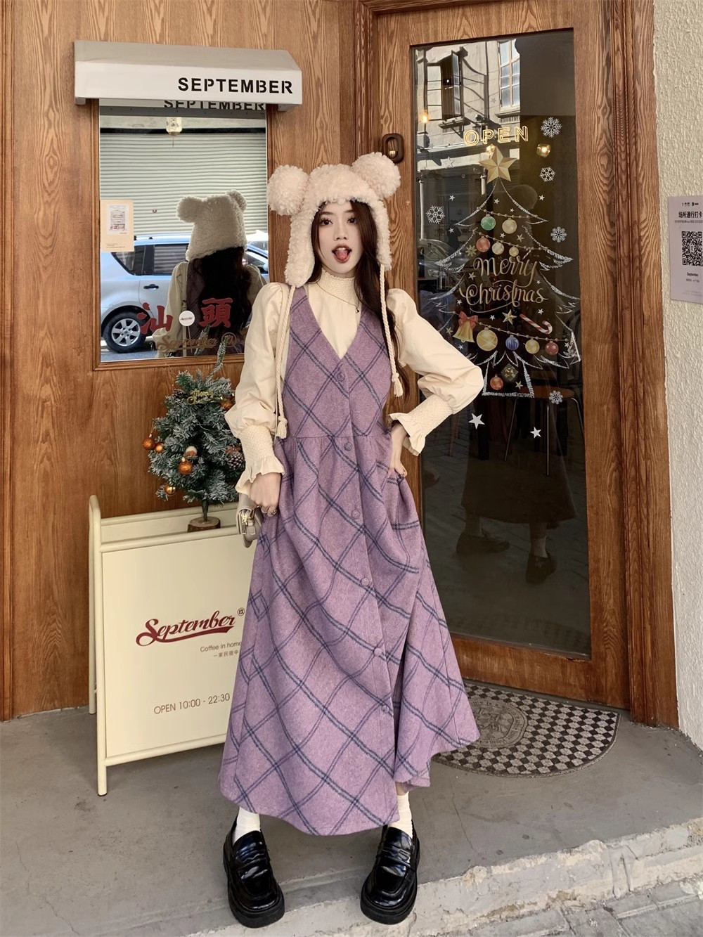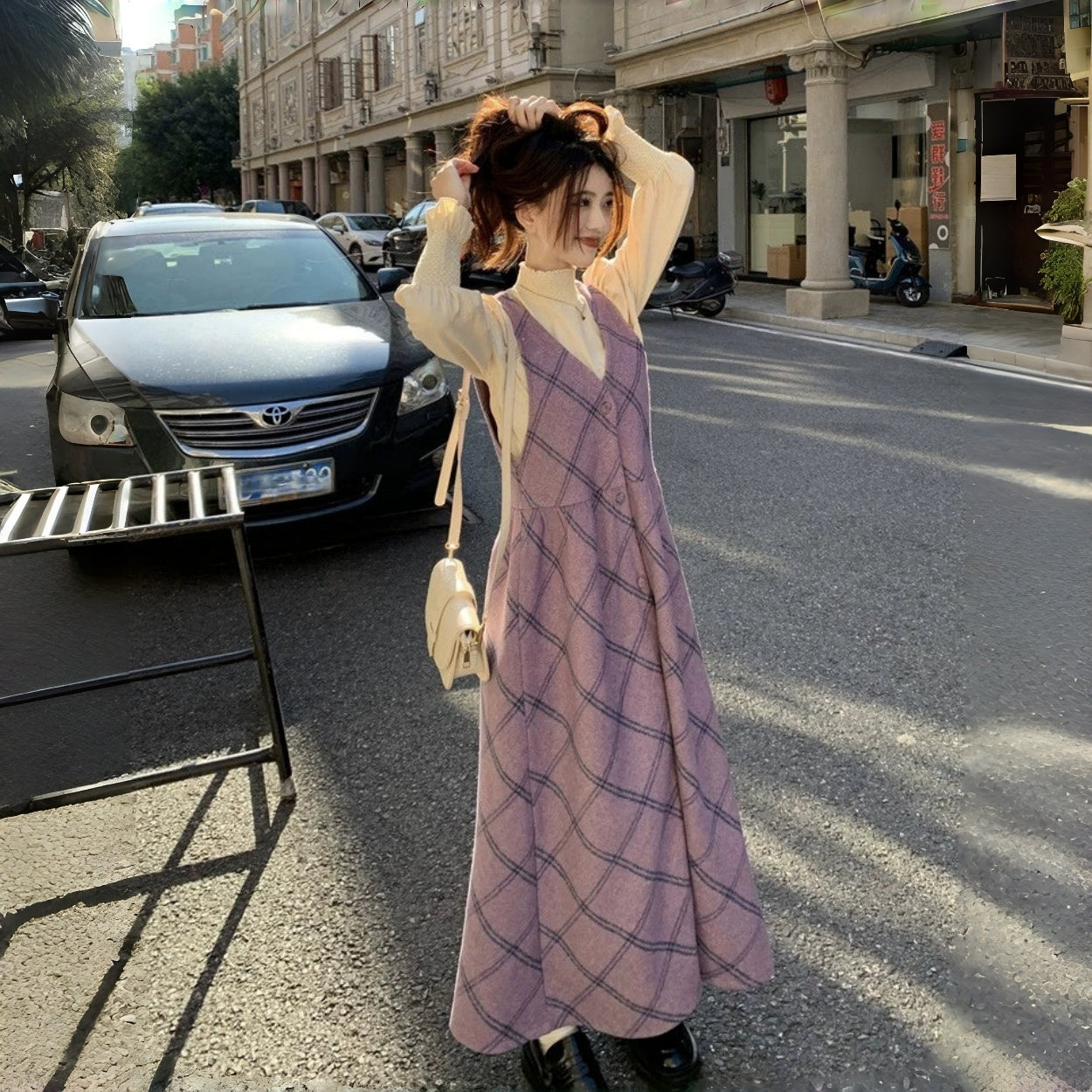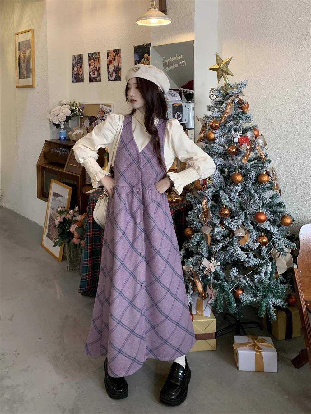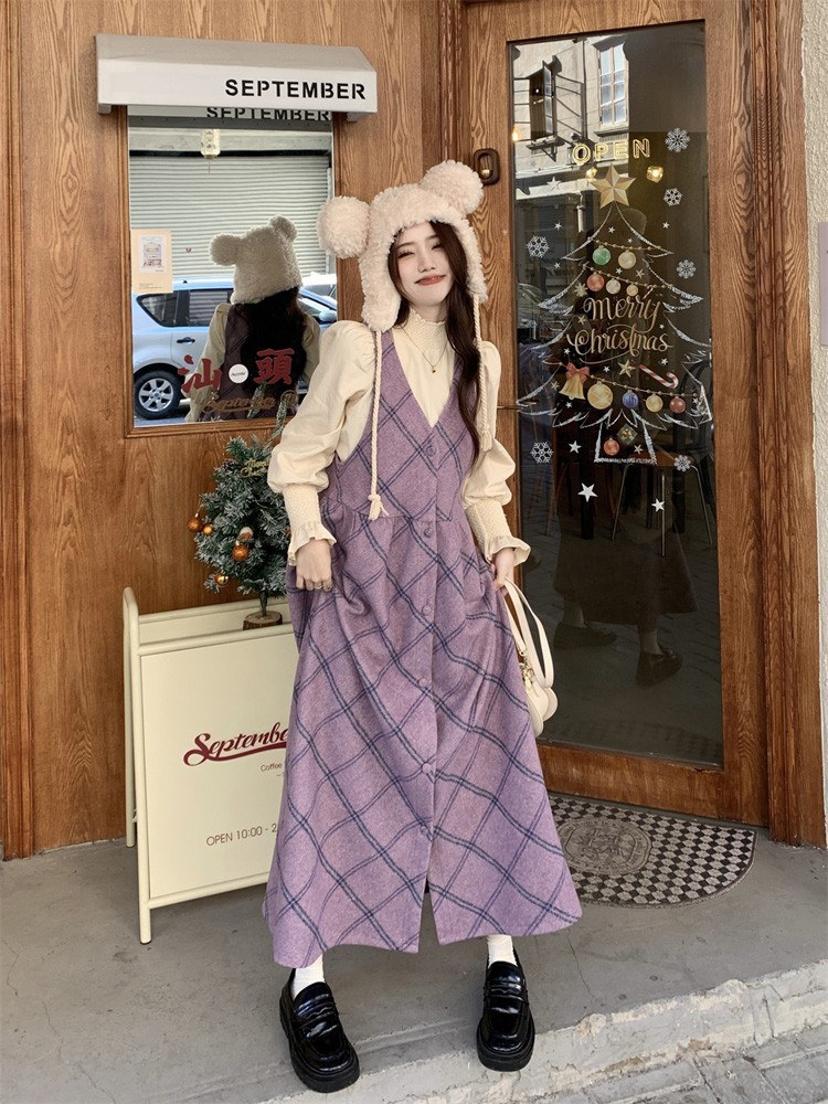 【ワンピース】レトロ スウィート 合わせやすい チェック柄 高級感 ノースリーブワンピース【JZシリーズ】