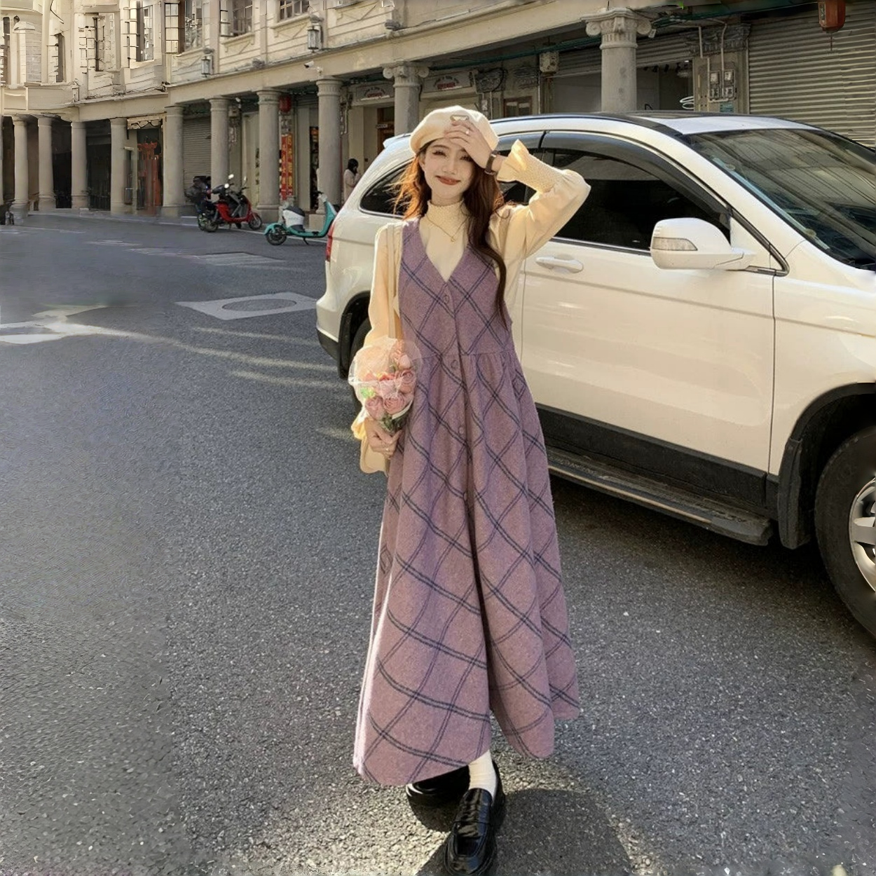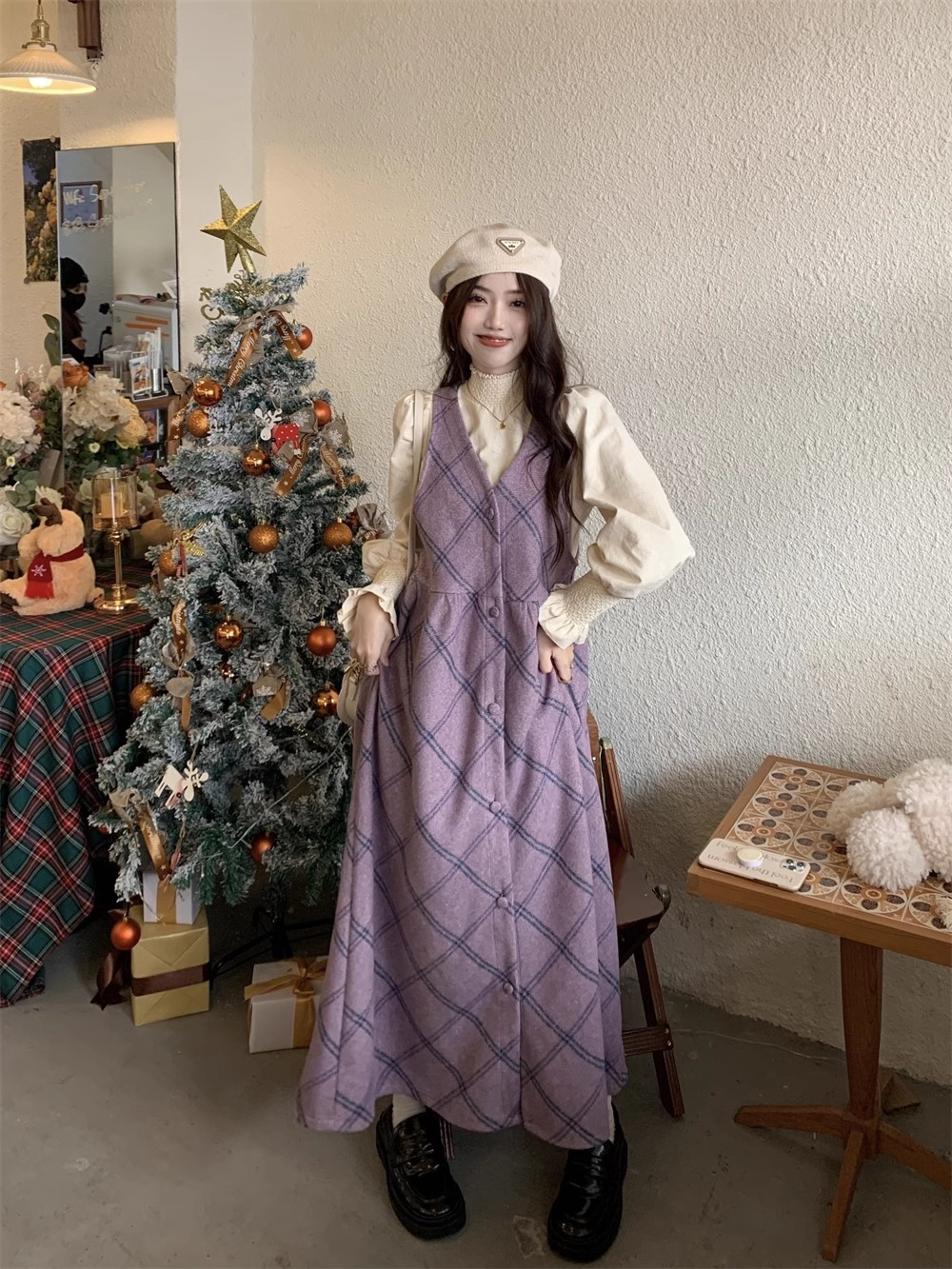 【商品名】【ワンピース】レトロ スウィート 合わせやすい チェック柄 高級感 ノースリーブワンピース【JZシリーズ】