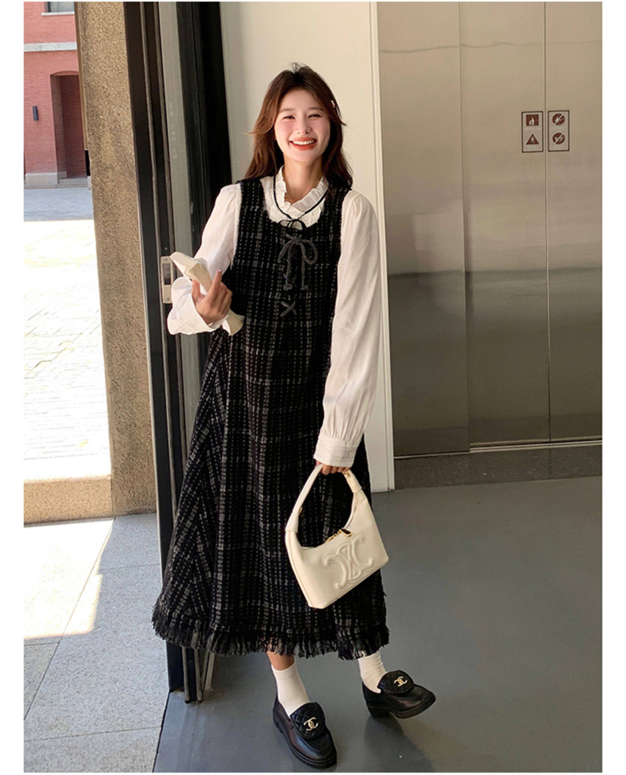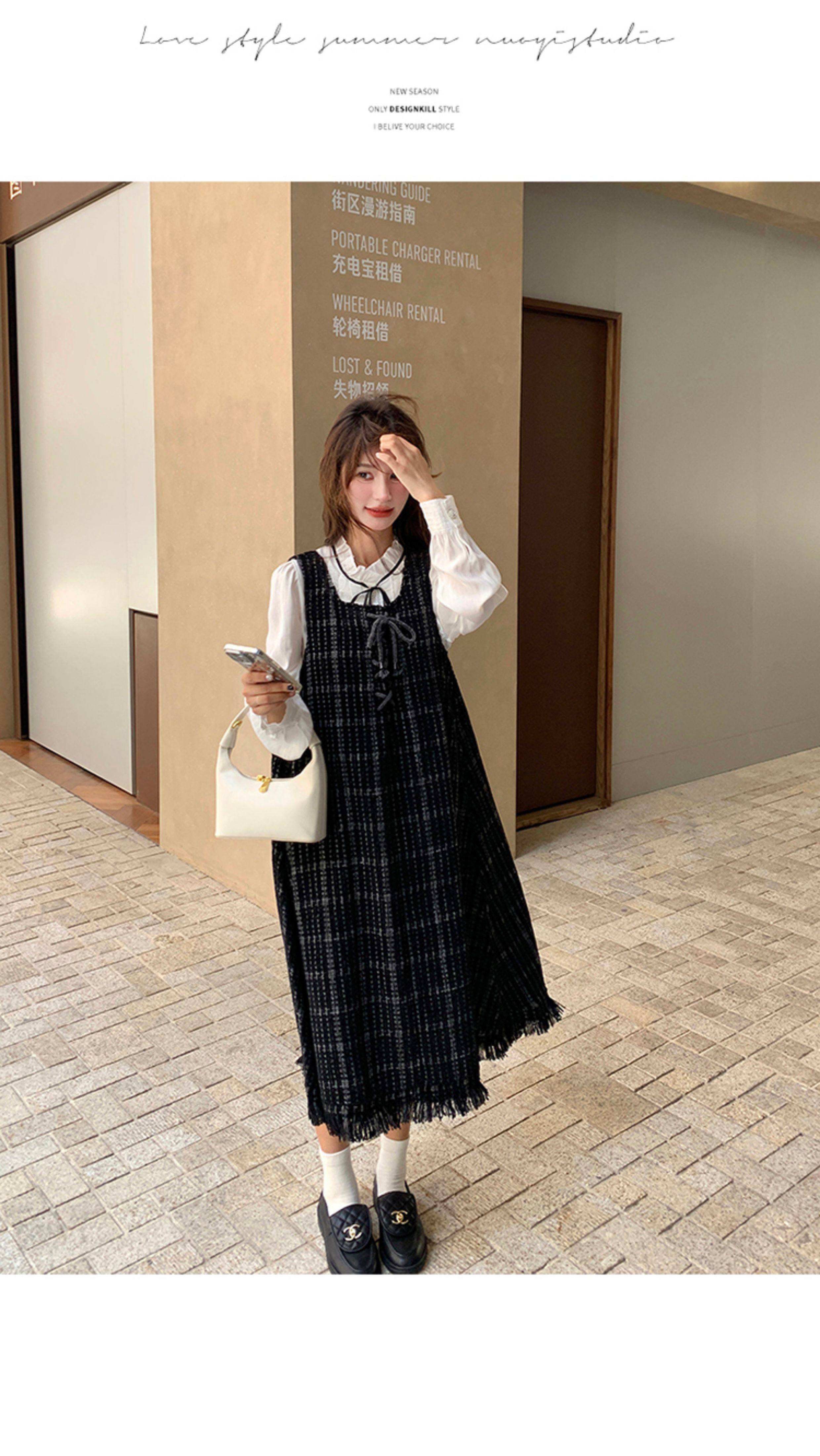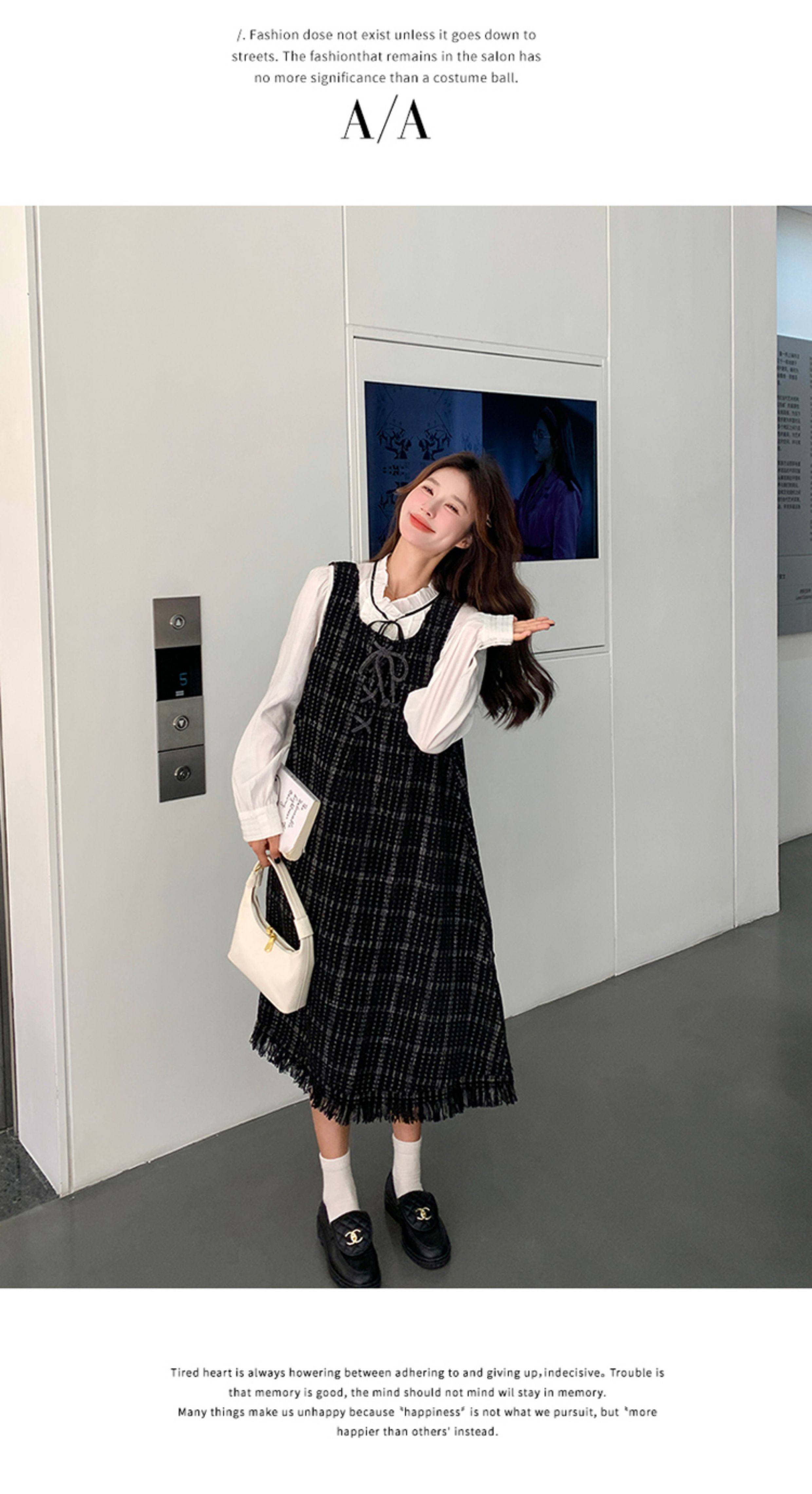 【商品名】【ワンピース】可愛らしい 痩せ見え チェック フリンジ シャネル風 ノースリーブワンピース【JZシリーズ】