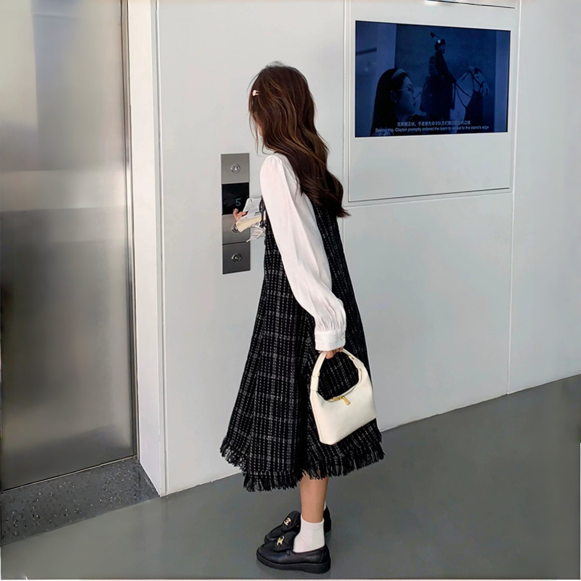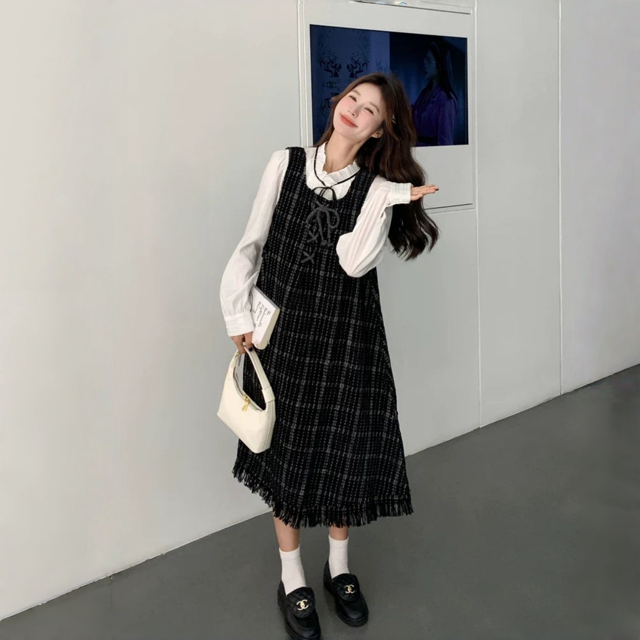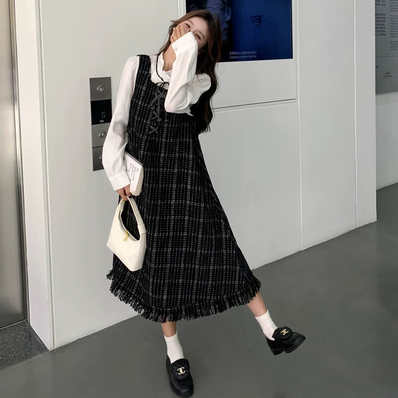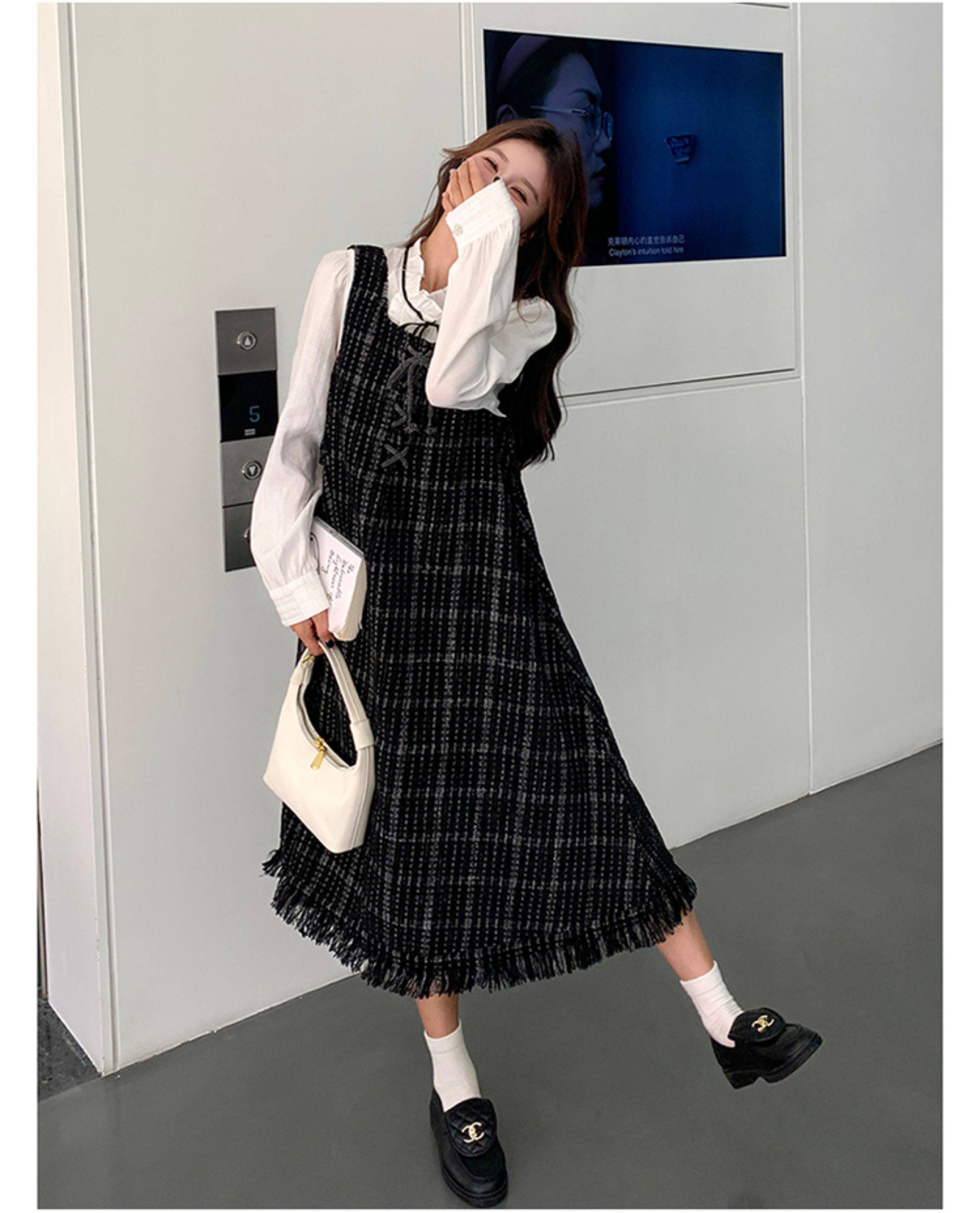 【ワンピース】可愛らしい 痩せ見え チェック フリンジ シャネル風 ノースリーブワンピース【JZシリーズ】