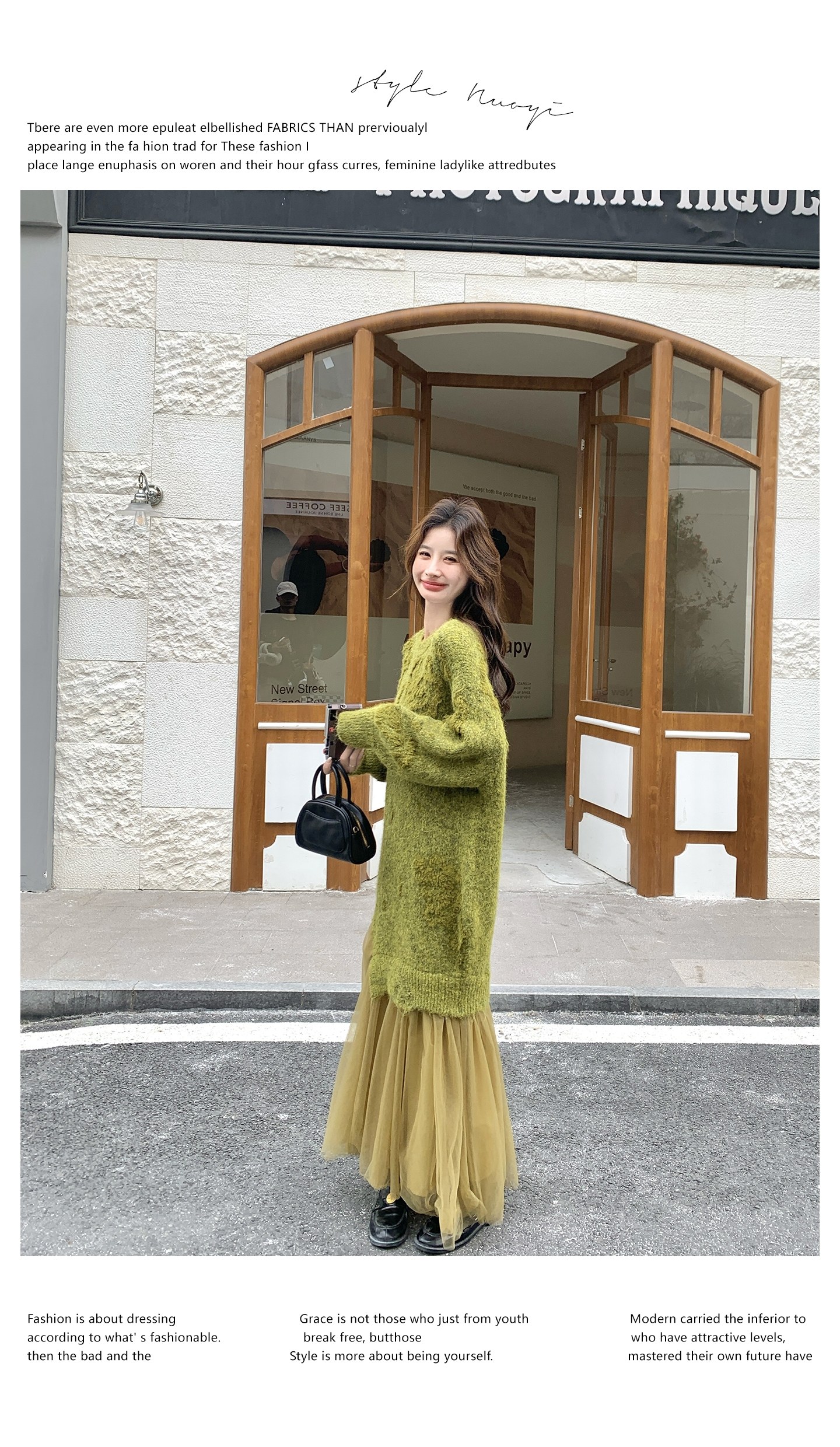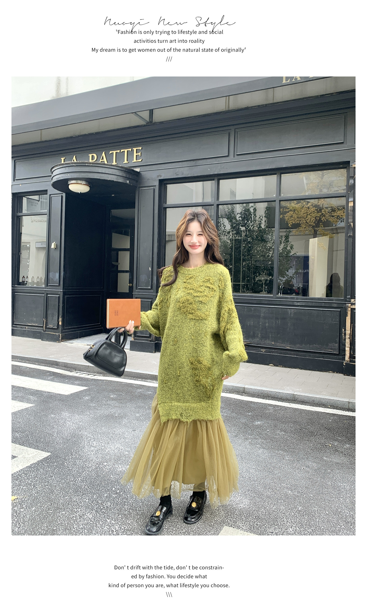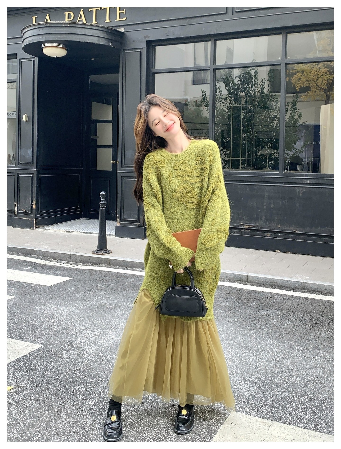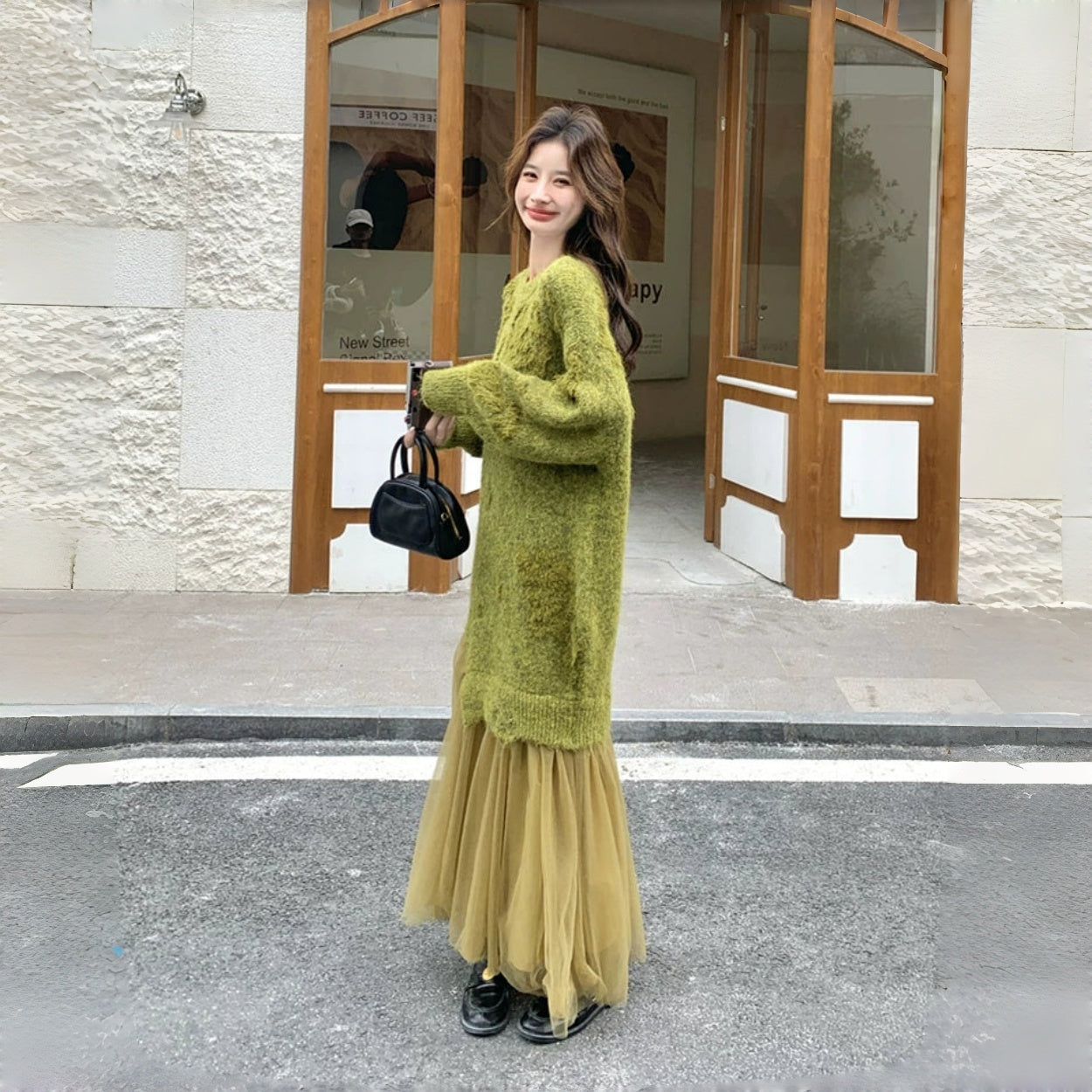 【60%OFF⭐️早い者勝ち】【ワンピース】春秋ラウンドネック 長袖 ニット パッチワーク ロング 長袖ワンピース