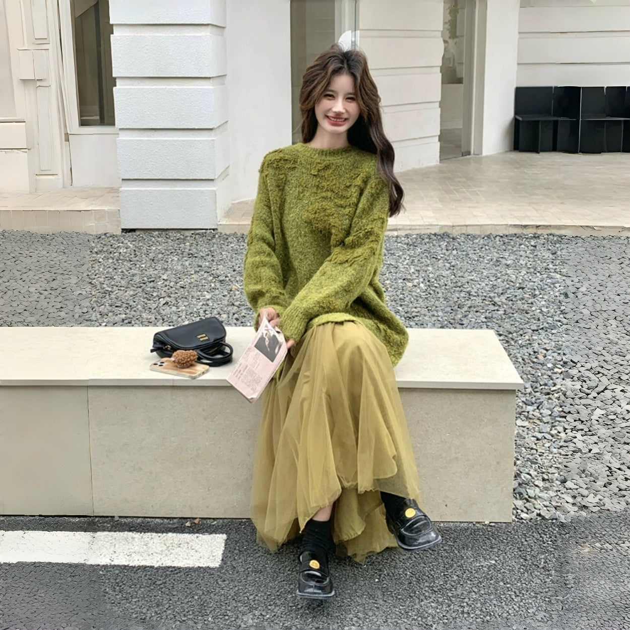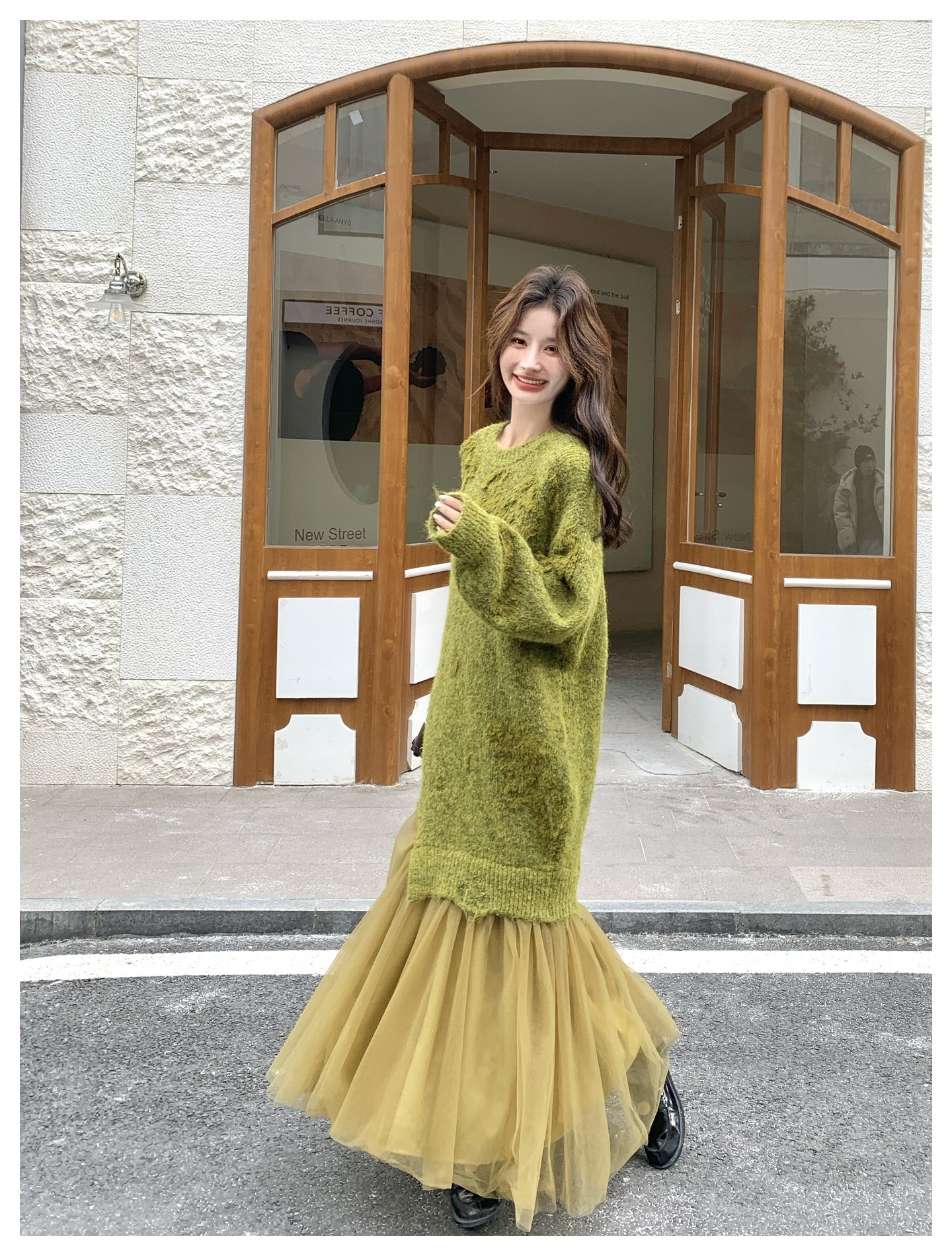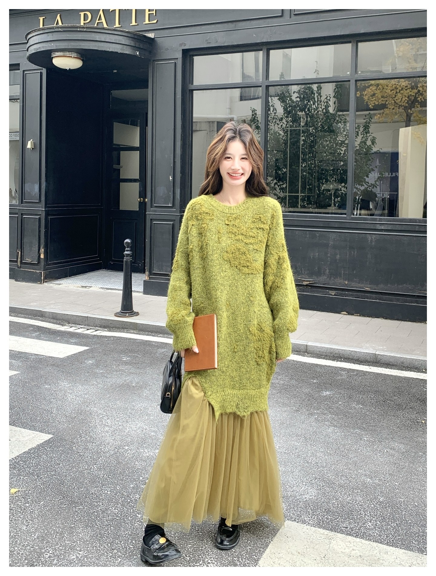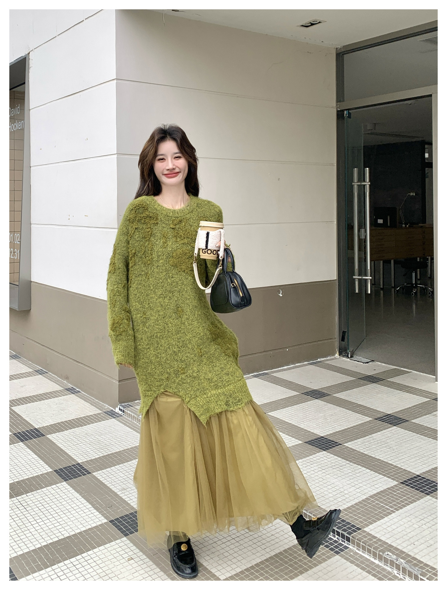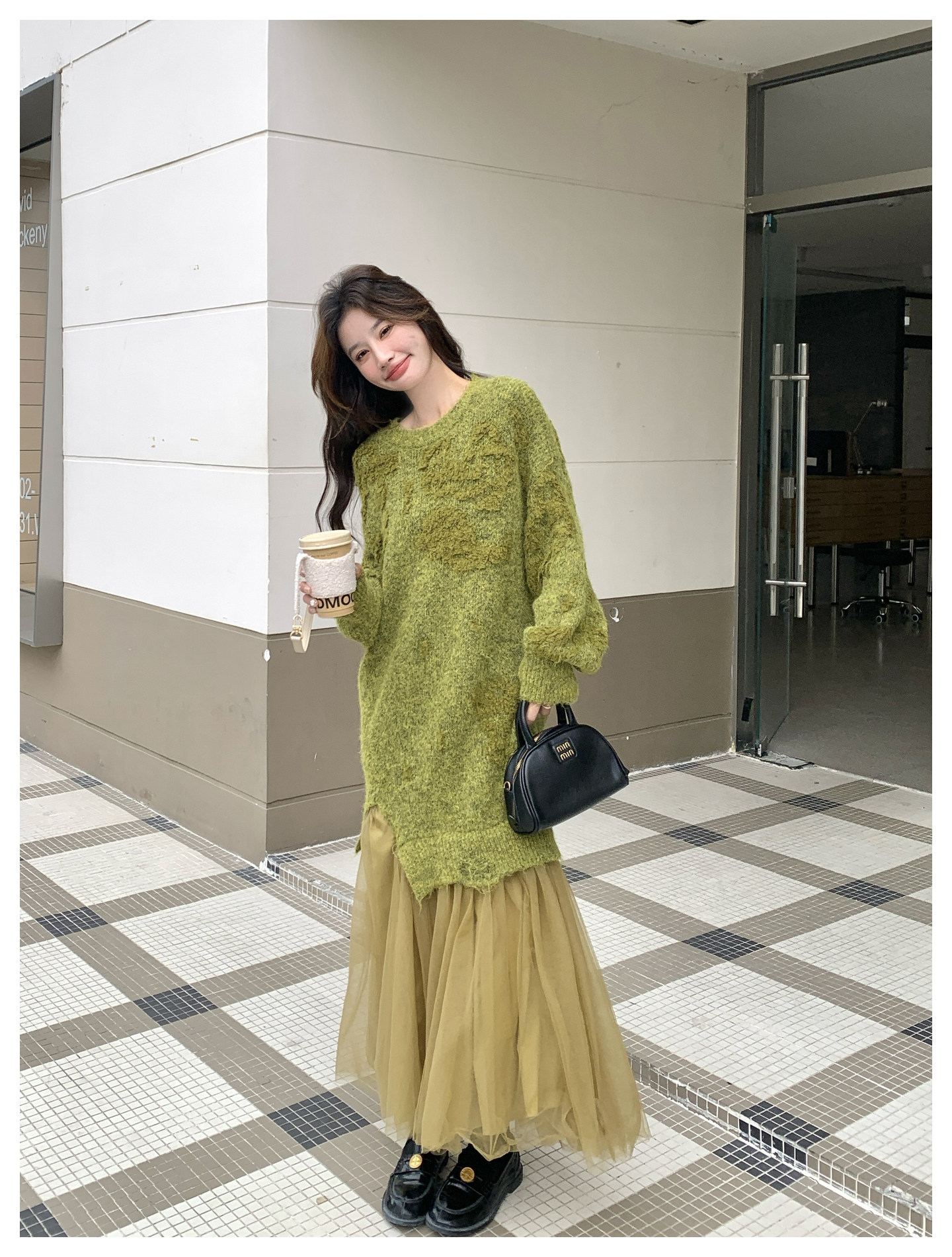 【60%OFF⭐️早い者勝ち】【ワンピース】春秋ラウンドネック 長袖 ニット パッチワーク ロング 長袖ワンピース