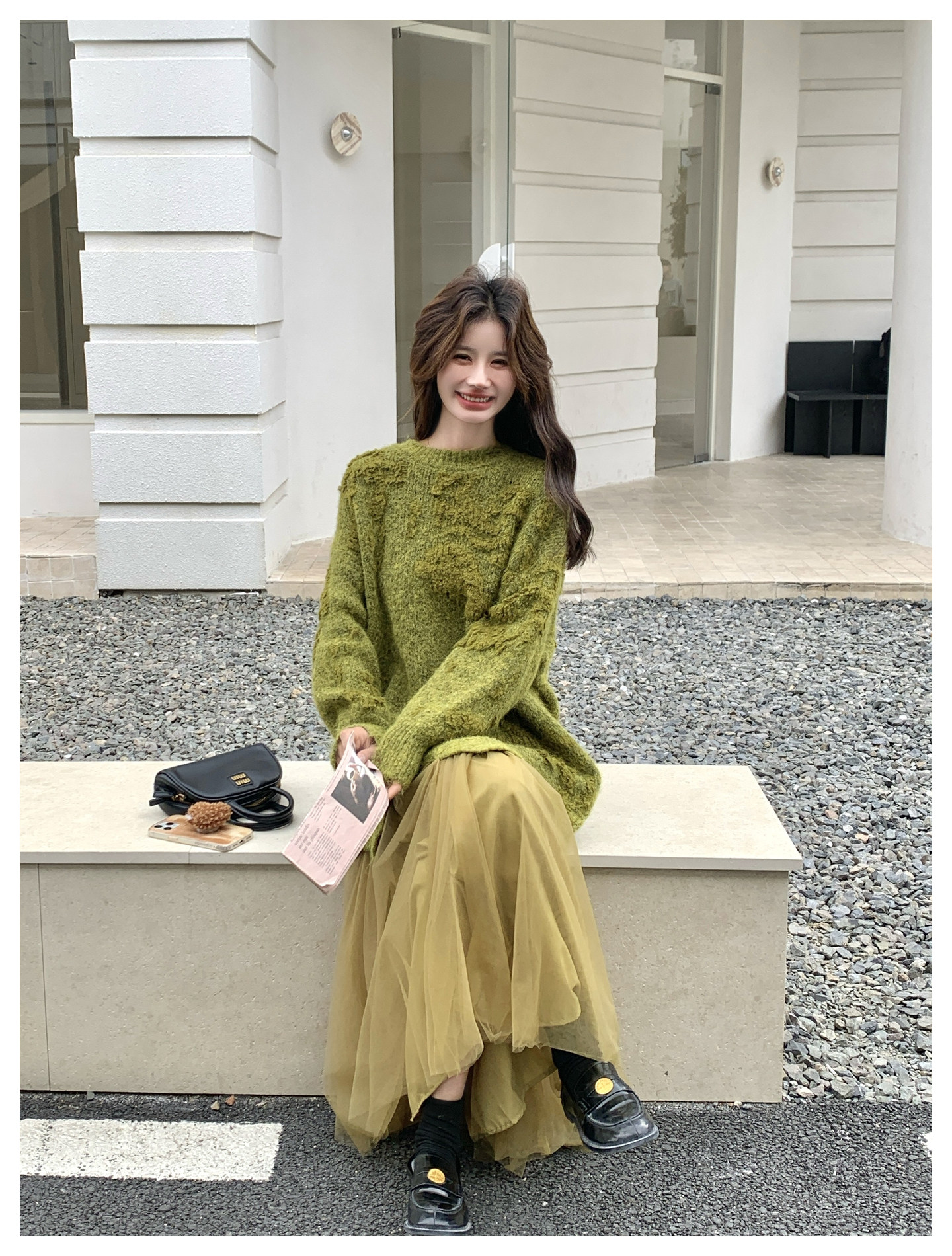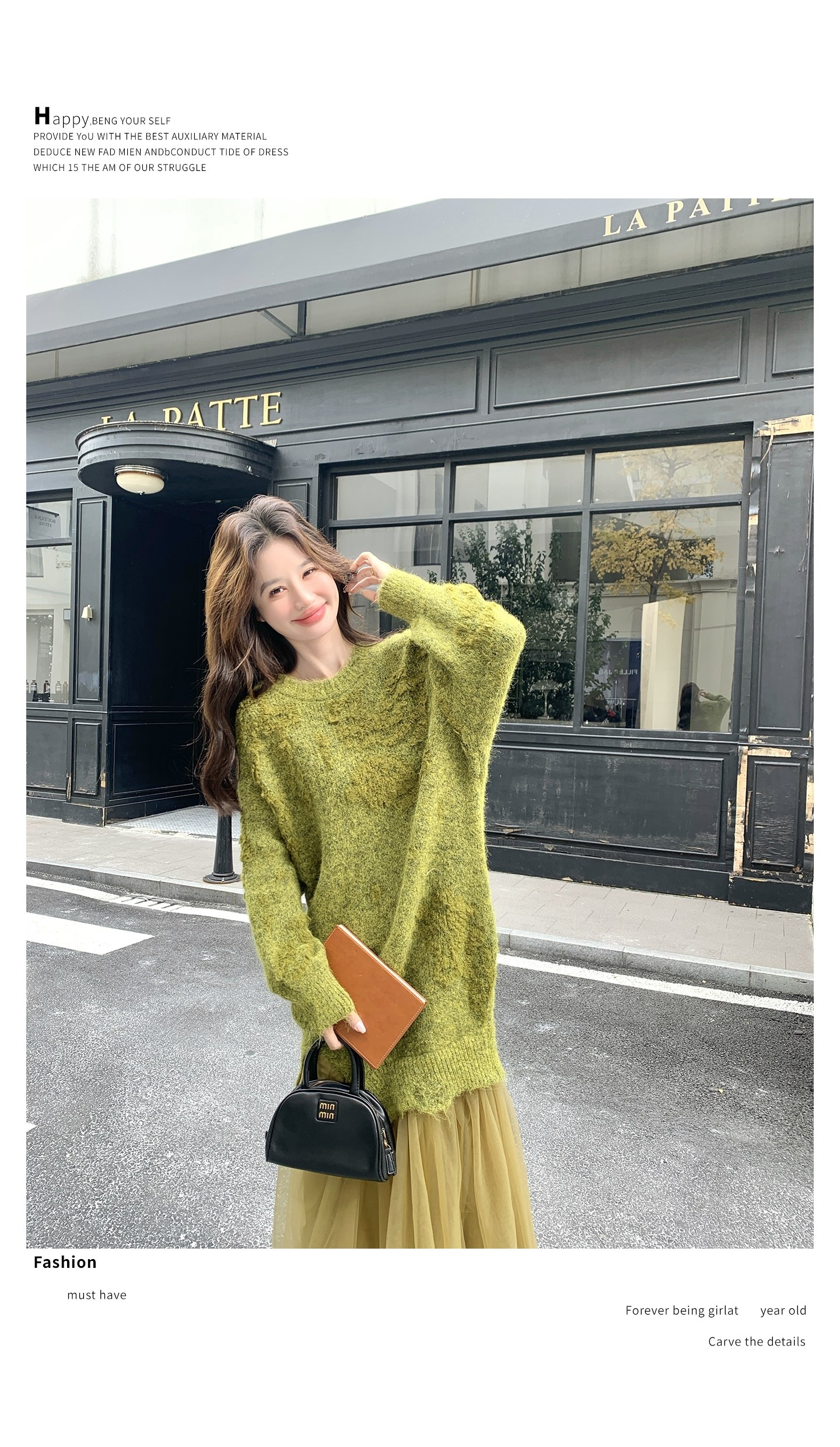 【トップス】ふわふわ カートゥーン柄 フード付きニットセーター レディース 新作 オーバーサイズ BF風 韓国風 ゆるニット【FCシリーズ】