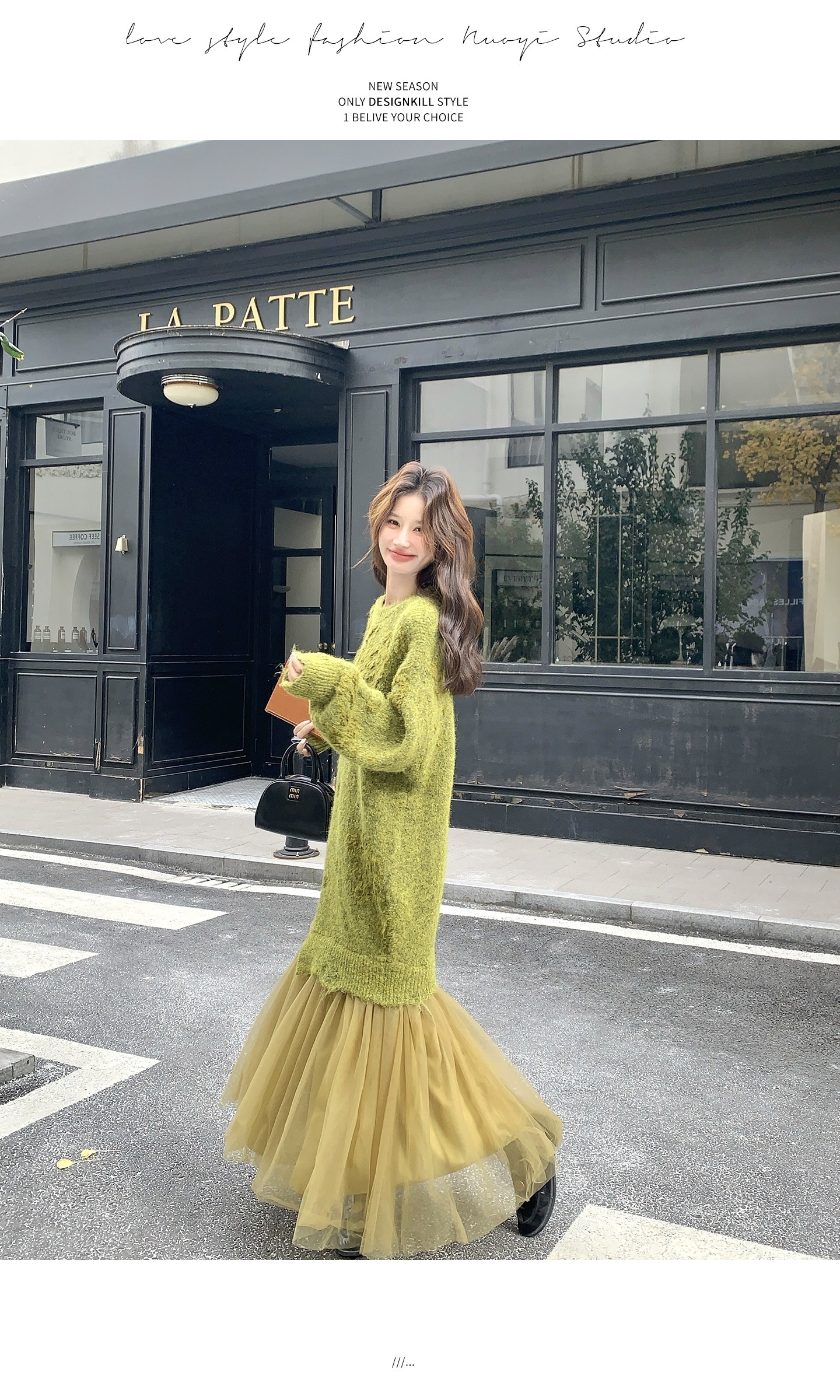 【商品名】【ワンピース】気質よい レース 切り替えし フェイクレイヤード ニットワンピース【JZシリーズ】