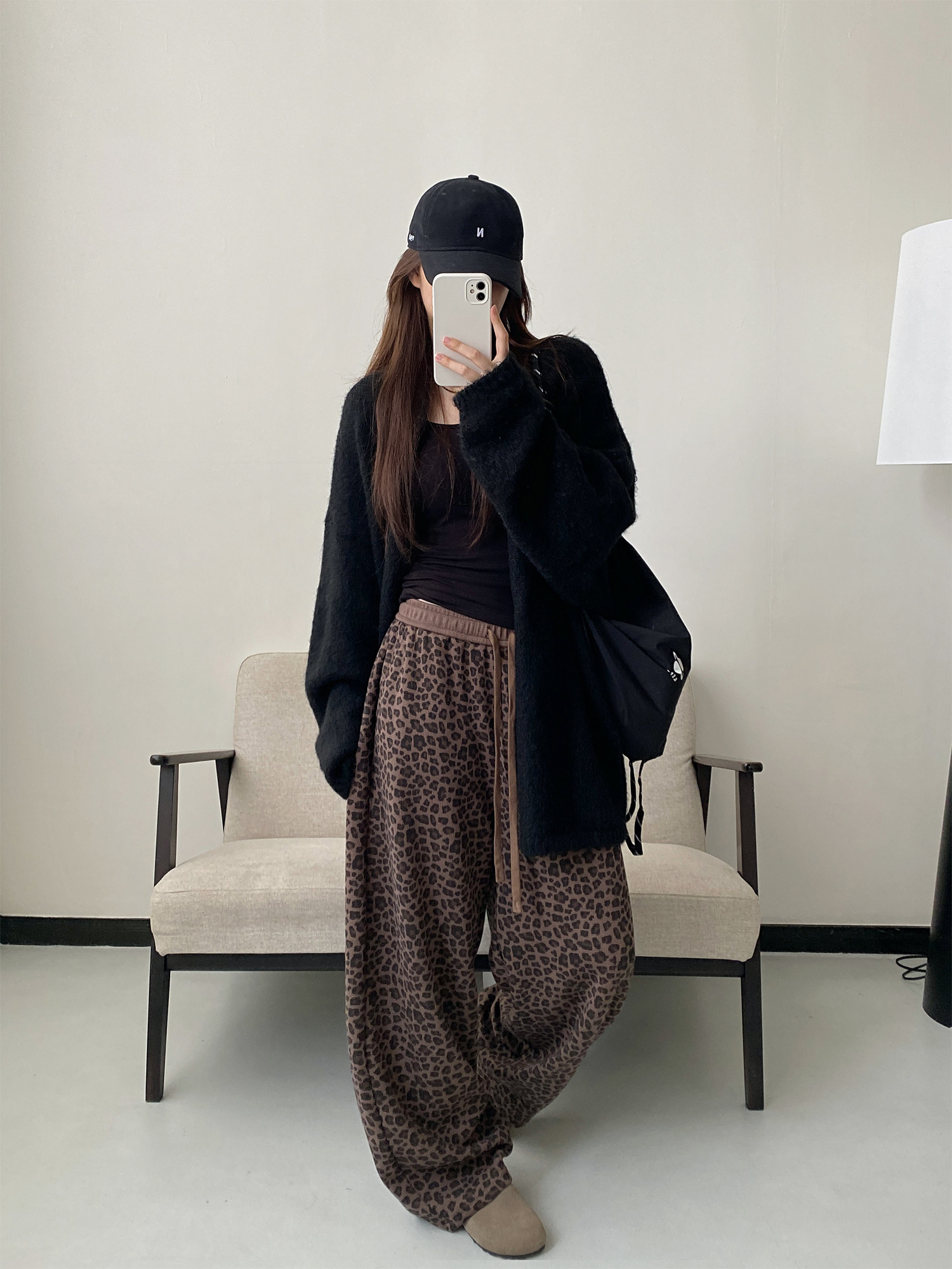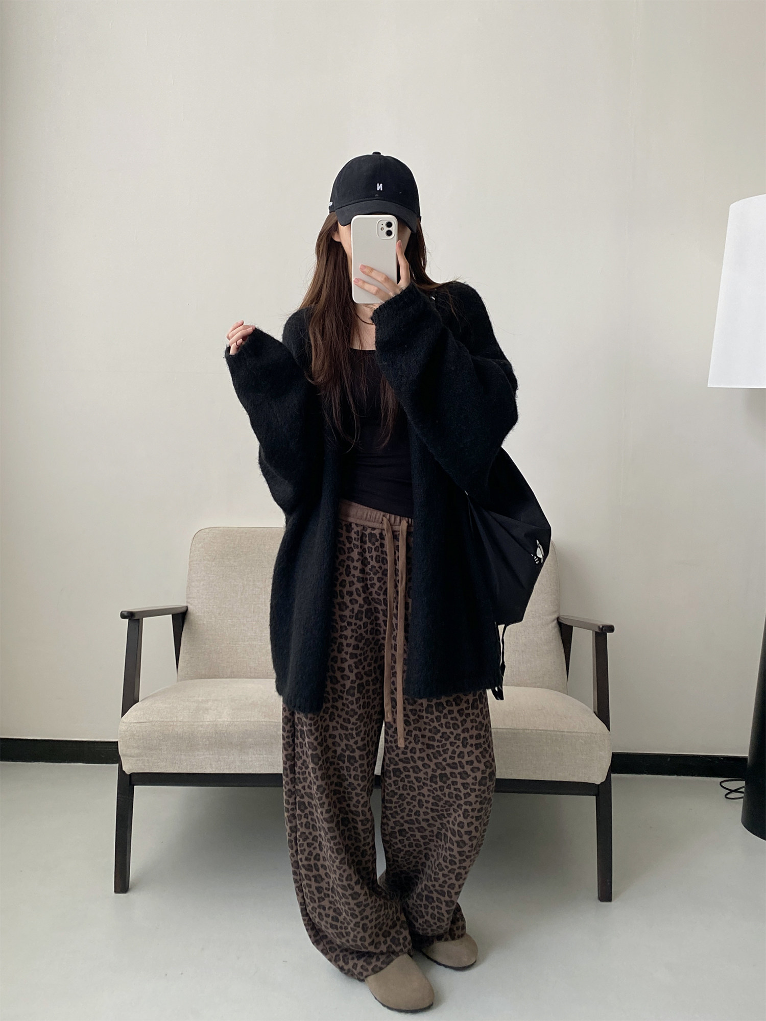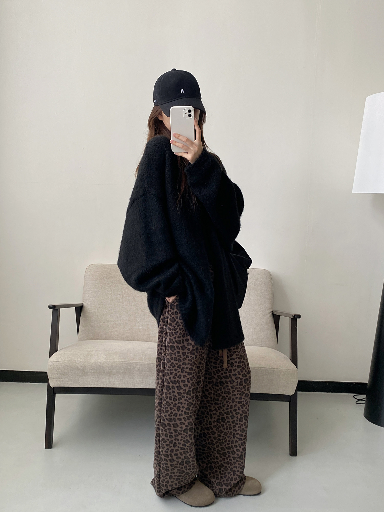 1/26~1/29⭐️期間限定 60%OFF !🏆 売れ筋No.1【トップス】ユニセックス対応 レトロ 豹柄 猫 ゆったり ラウンドネック ネコ柄 ニットセーター【FCシリーズ】
