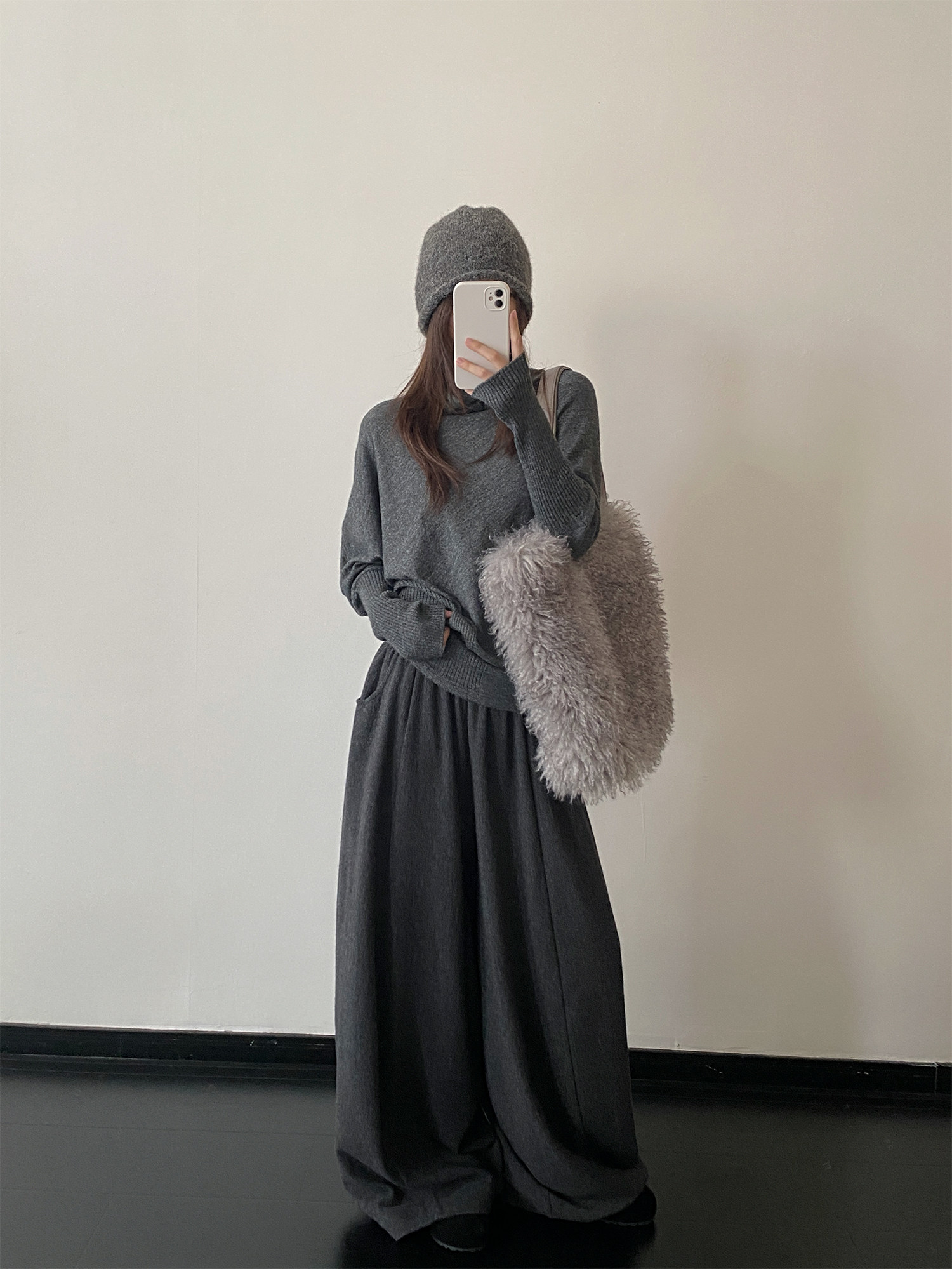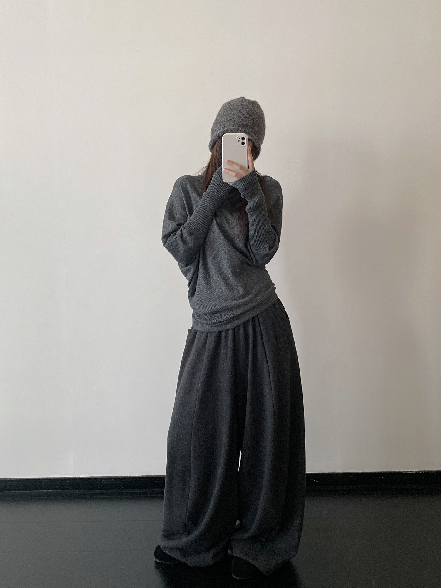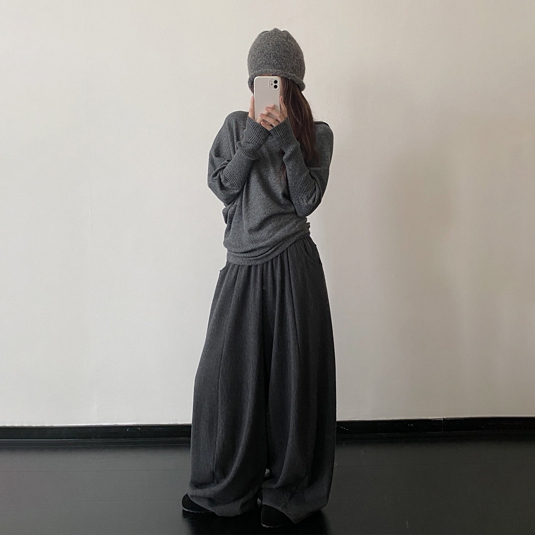 【ボトムス】50%ウール たっぷりワイド ロングパンツ こなれ感リラクシー【FCシリーズ】