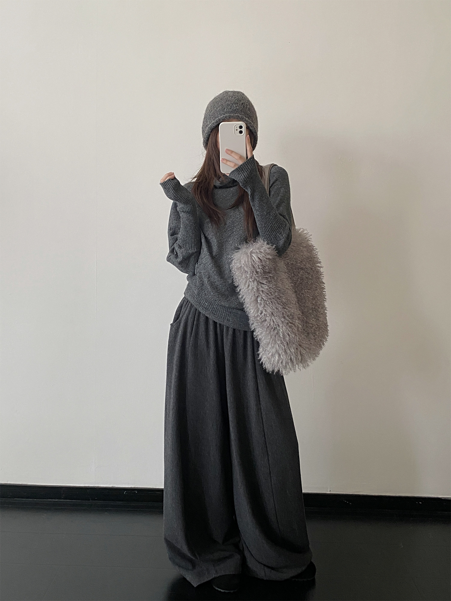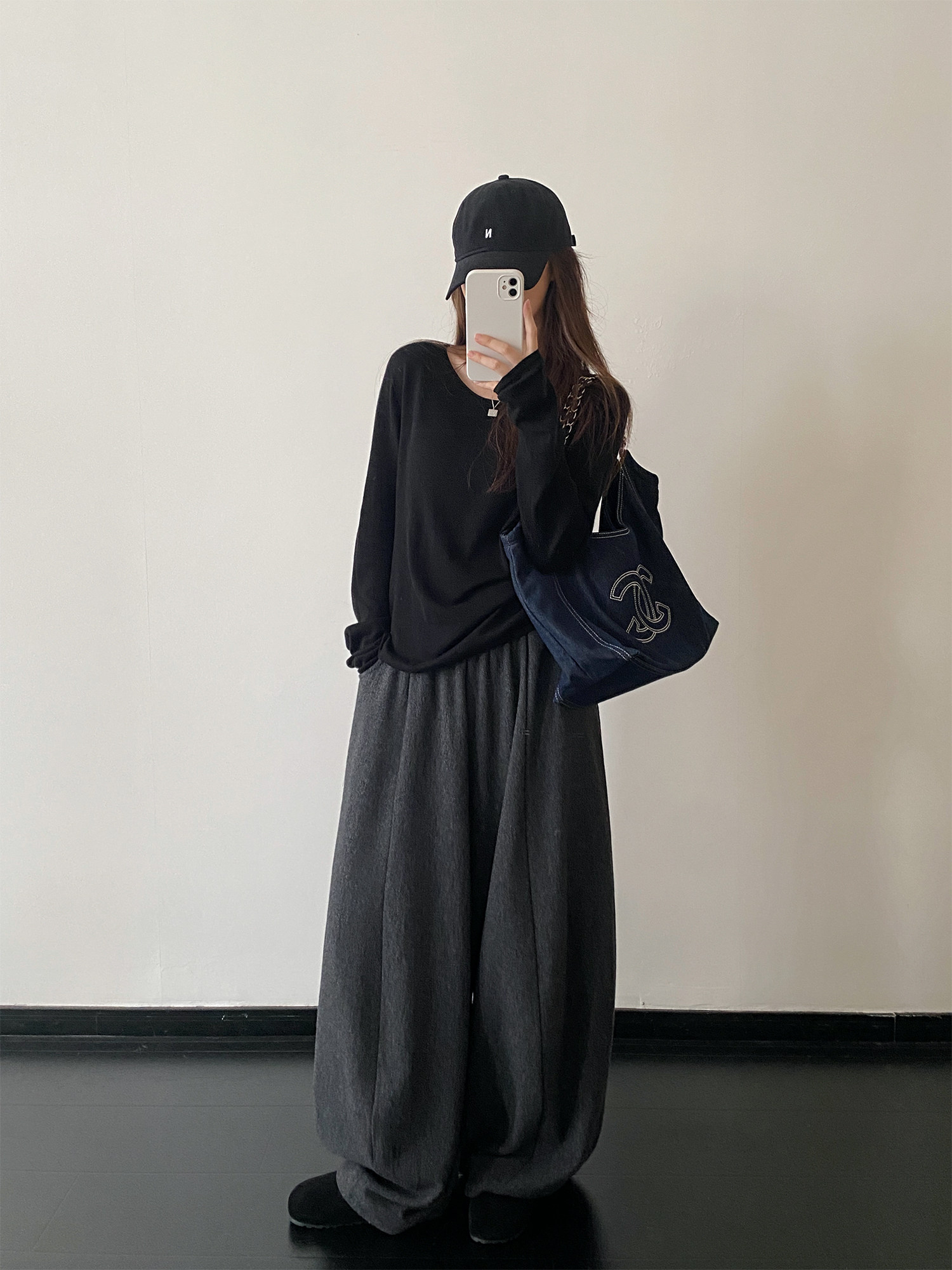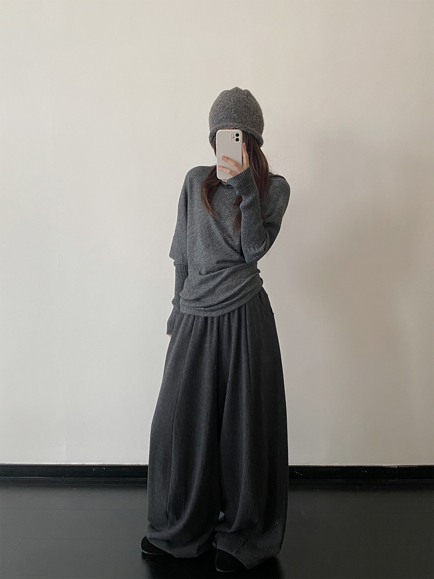 【ボトムス】50%ウール たっぷりワイド ロングパンツ こなれ感リラクシー【FCシリーズ】